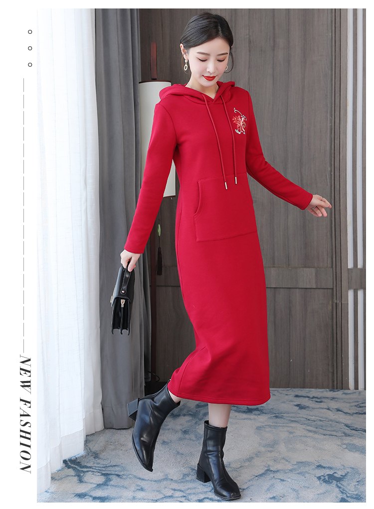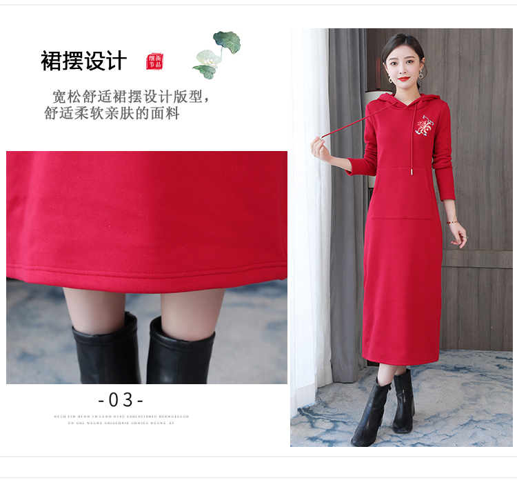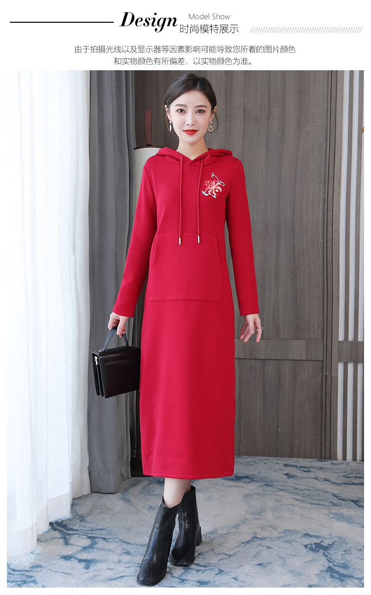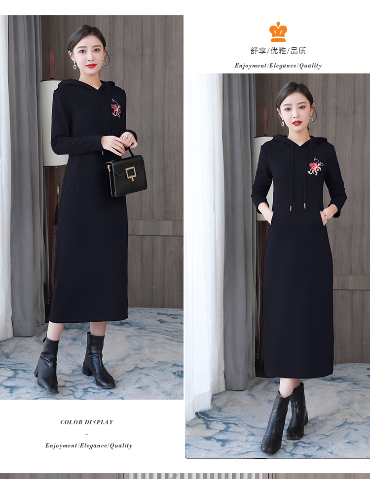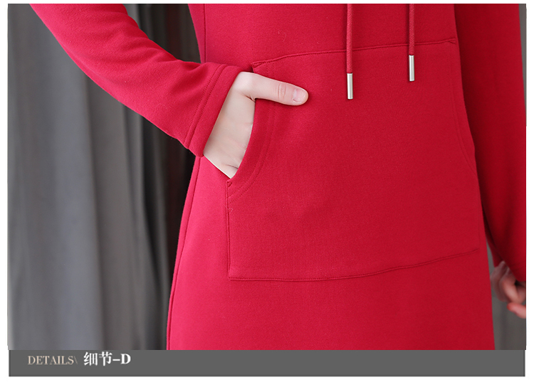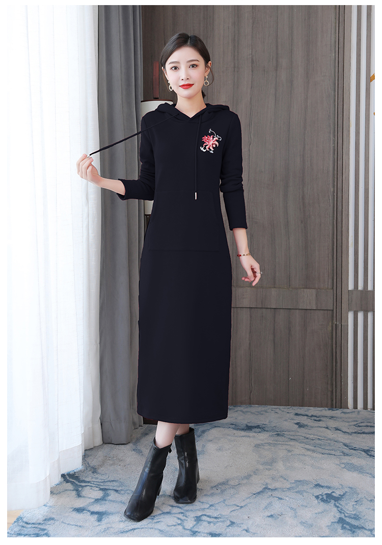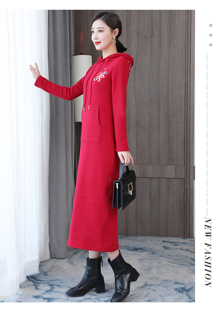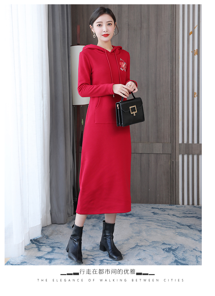 加绒保暖连帽卫衣连衣裙2022春新款修身显瘦长袖淑女气质减龄长裙 AHM-atfs8032