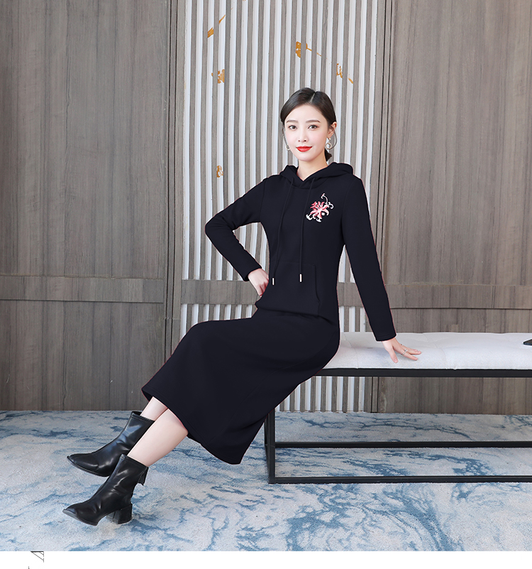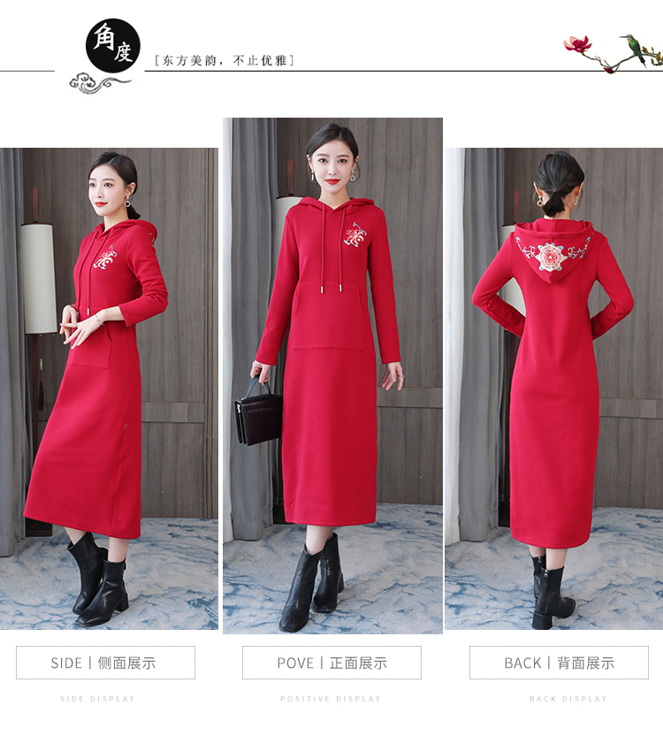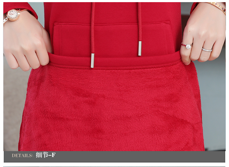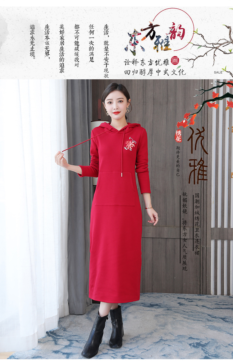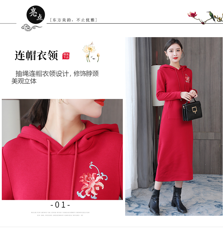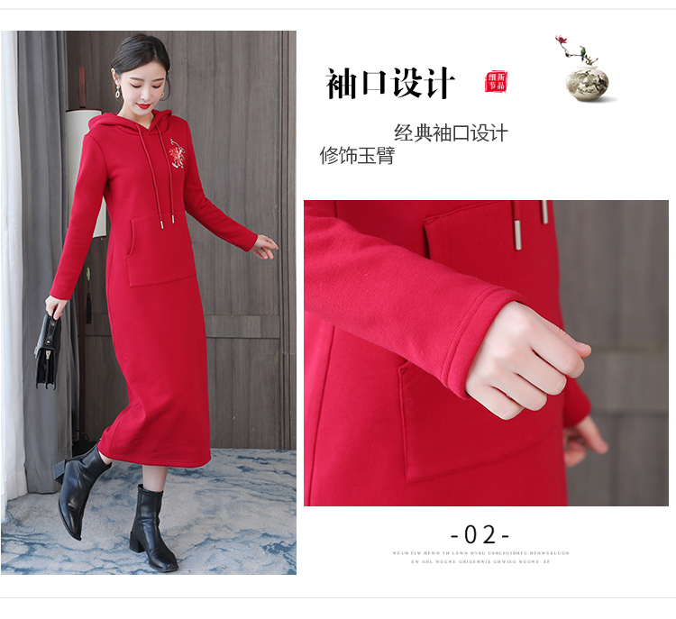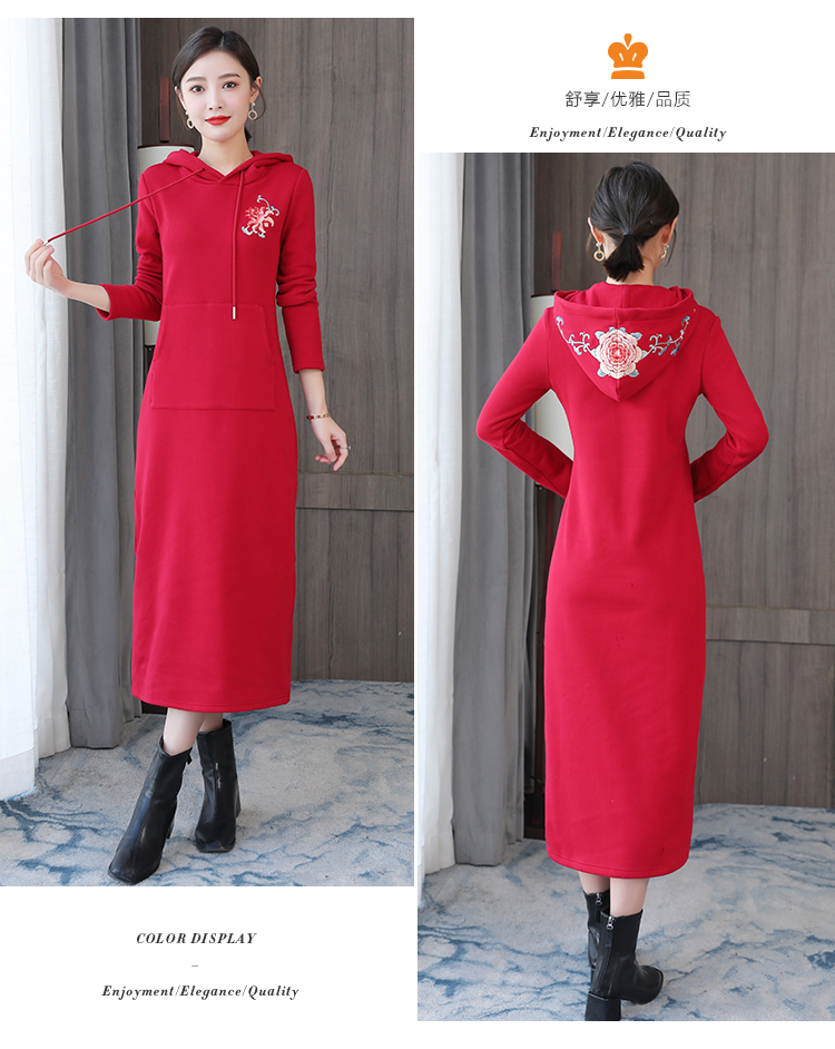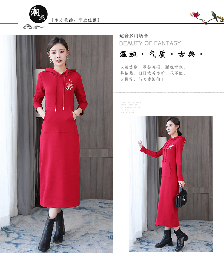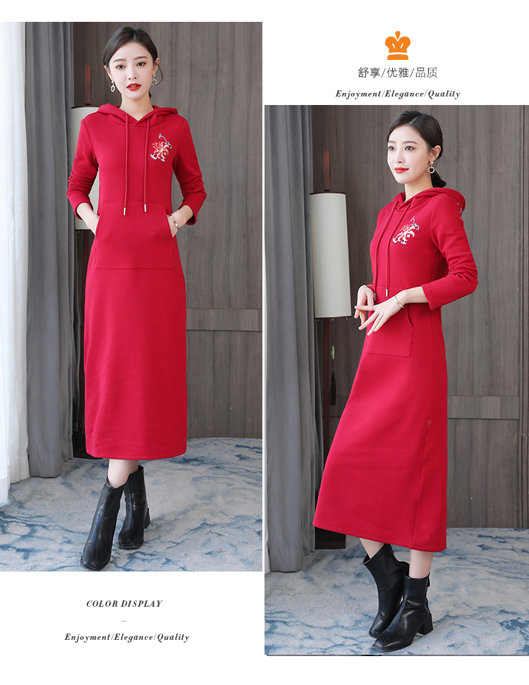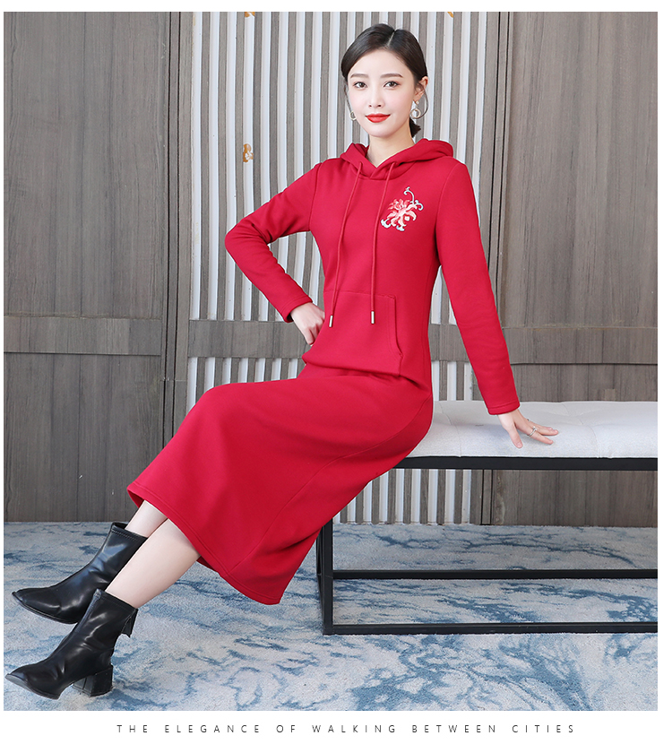 加绒保暖连帽卫衣连衣裙2022春新款修身显瘦长袖淑女气质减龄长裙 AHM-atfs8032