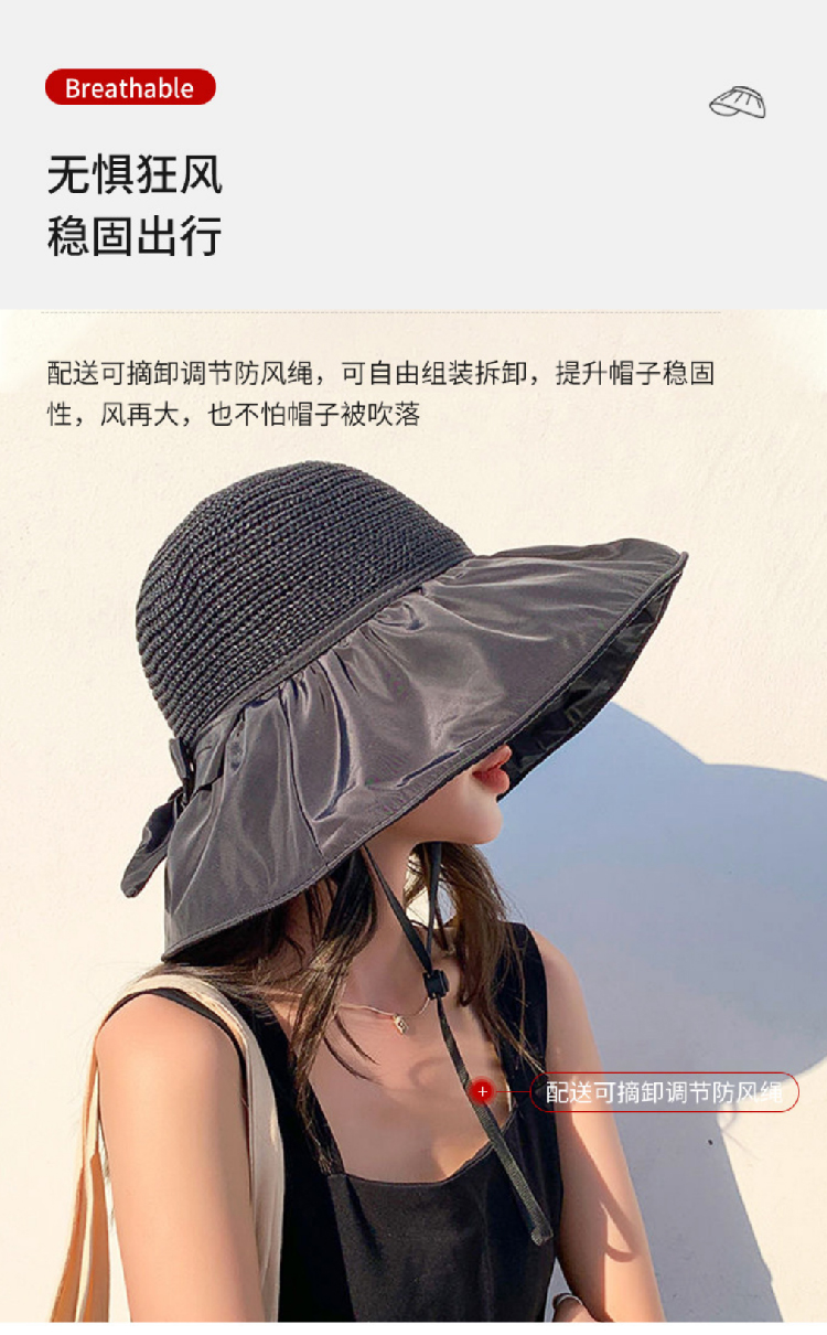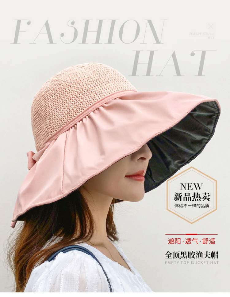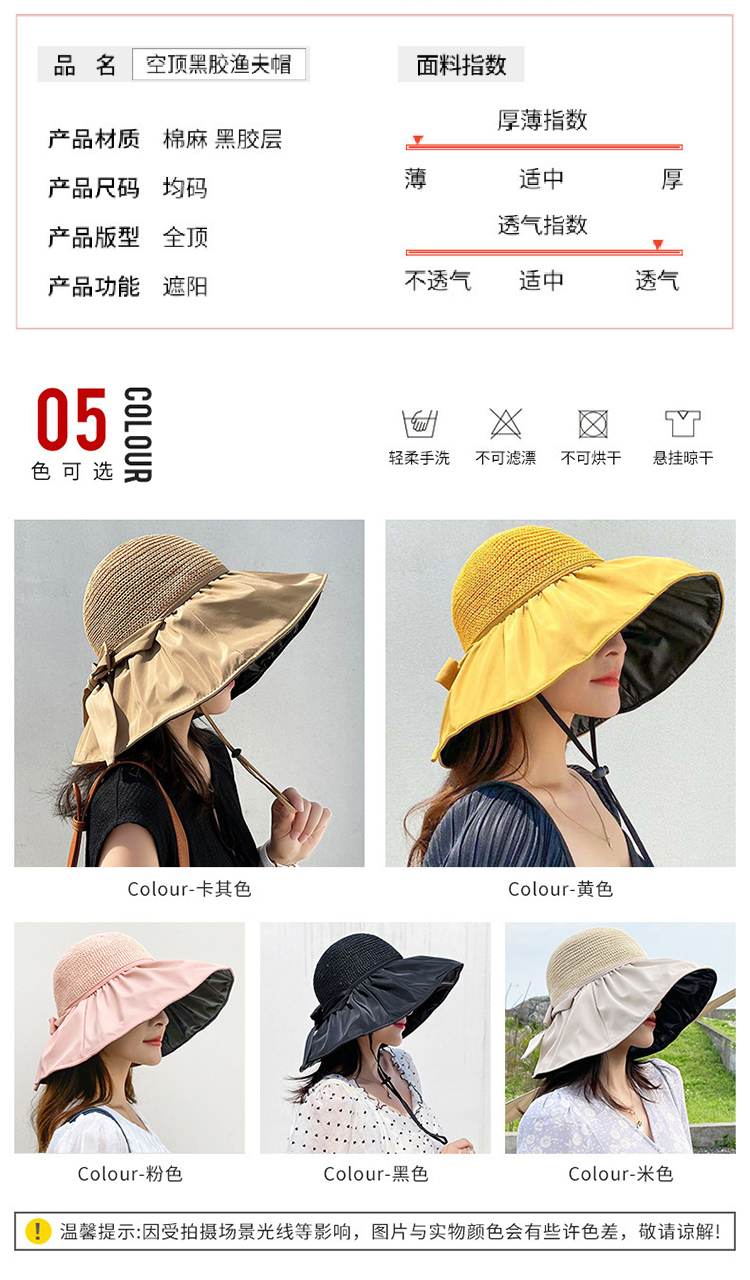 【户外黑胶防晒帽】新款夏季渔夫帽可折叠遮阳帽 黑胶大帽檐沙滩草帽