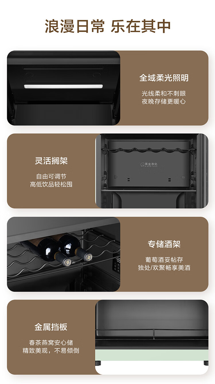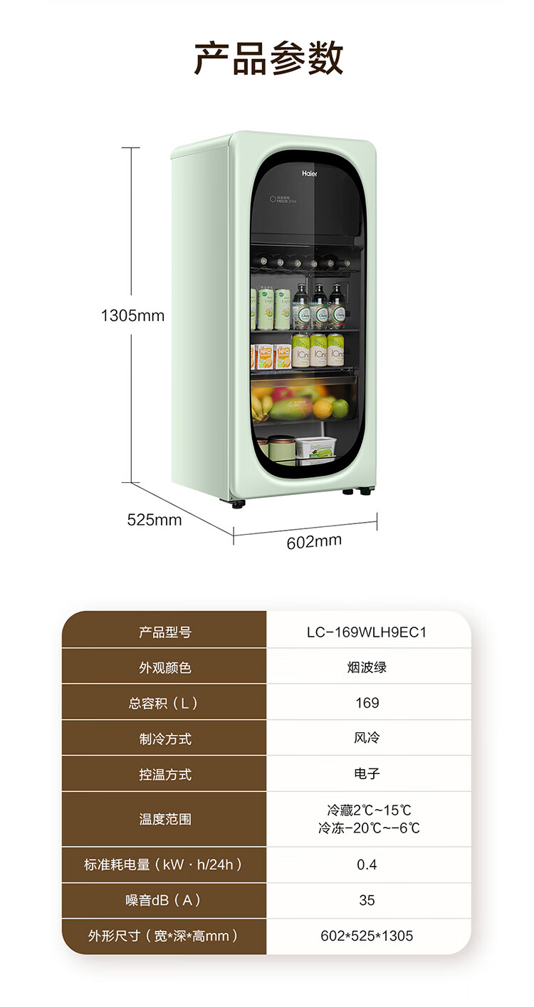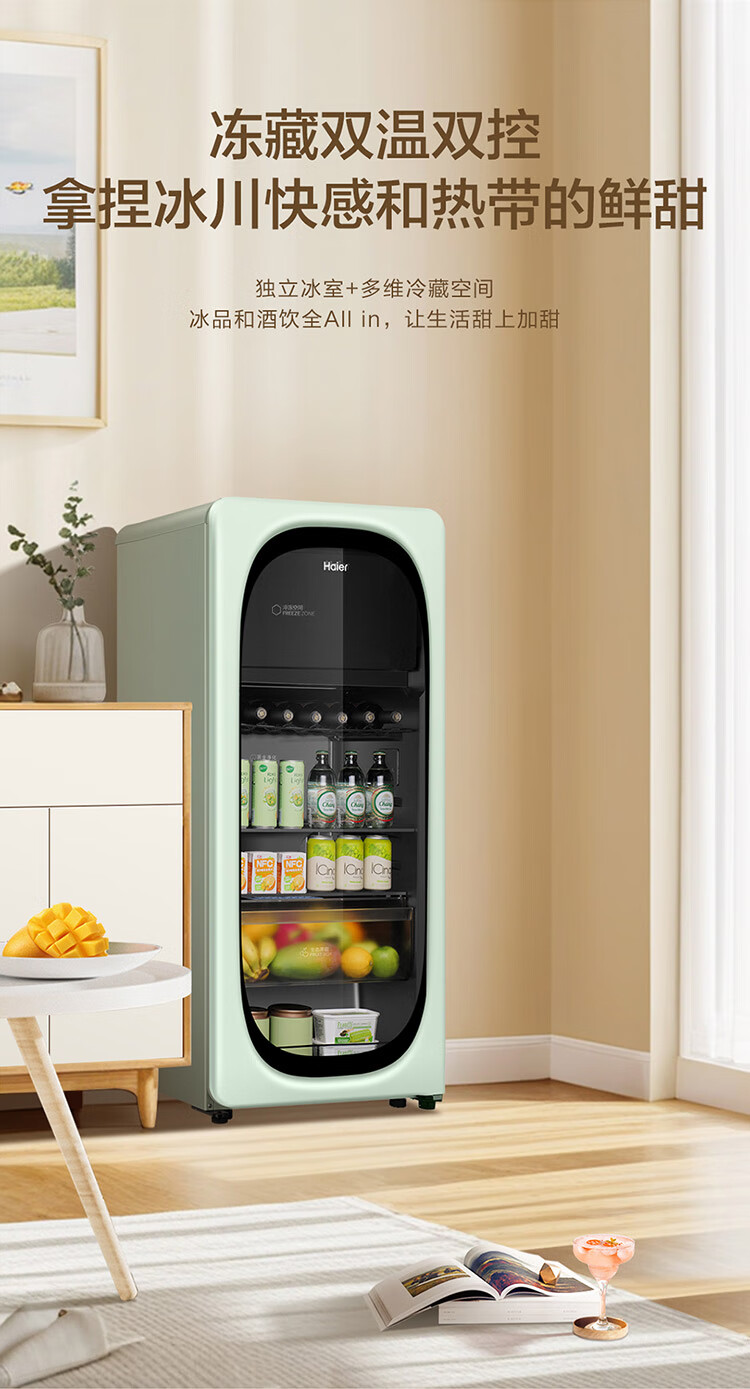 海尔(Haier)【新品】169升风冷无霜冰吧冻藏双温分区存储茶叶饮料水果保湿保鲜柜家用客厅办公室冷藏冷冻酒柜 【新品】烟波绿169L冻藏双温双控