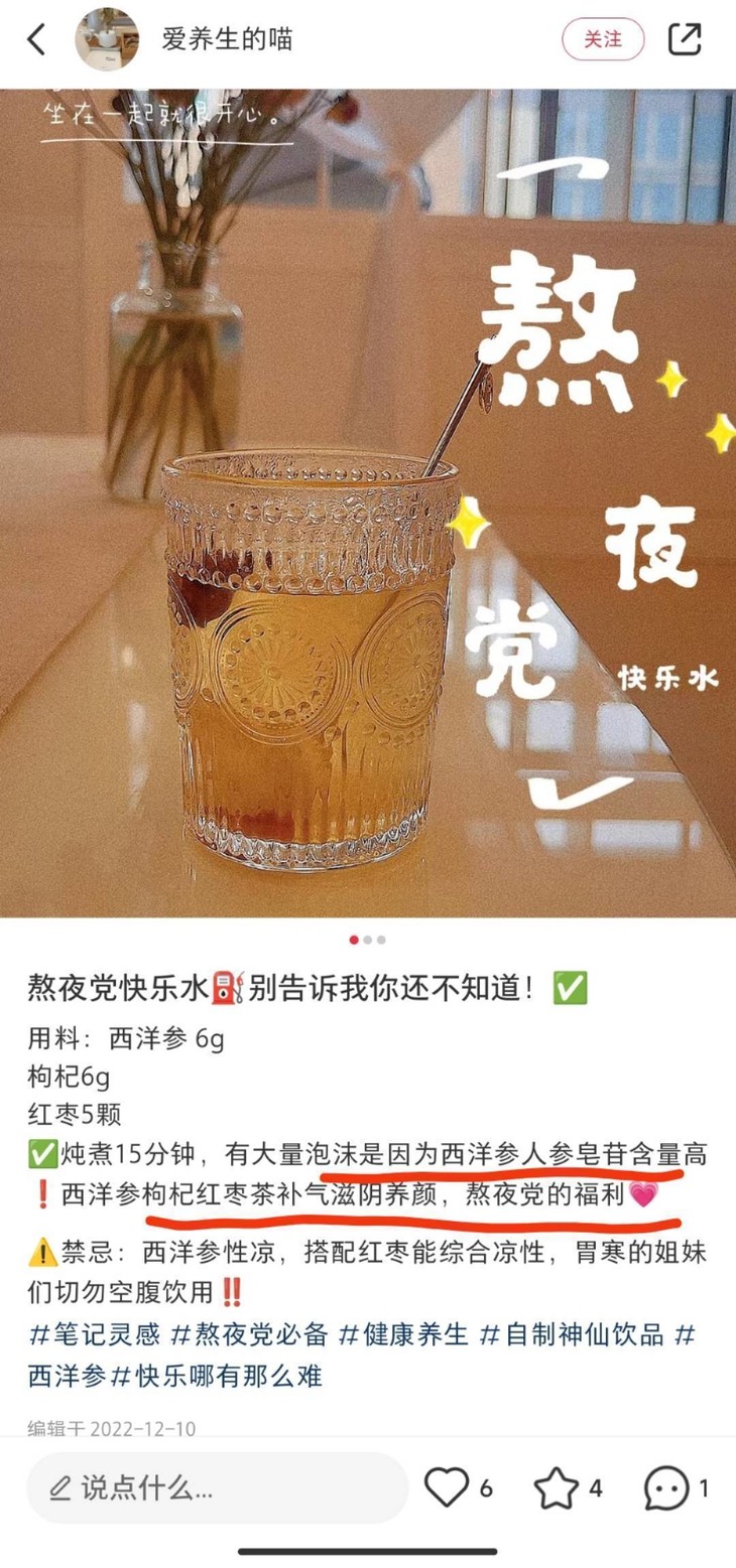她认为:“世上没有长生不老的xian丹 不过,养生是一门学问。” 朱教授虽不推崇yao补养生 但却一直保持着每天喝一碗补气汤 ——西洋参汤 西洋参富含人参皂苷、蛋白质、氨基酸、维生素、 多糖、核酸、肽类和微量元素等多种物质
