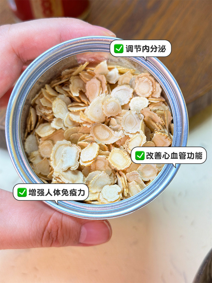 ♦️抗疲劳,抗衰老,增强抵抗力 大补元气的作用,养肾健脾,补气养颜 日常泡水喝,可以肉眼可见皮肤透亮有气色🥰 参片可以说是我家常备的食材 喝水,煮汤,随手放两片,满满的幸福感~
