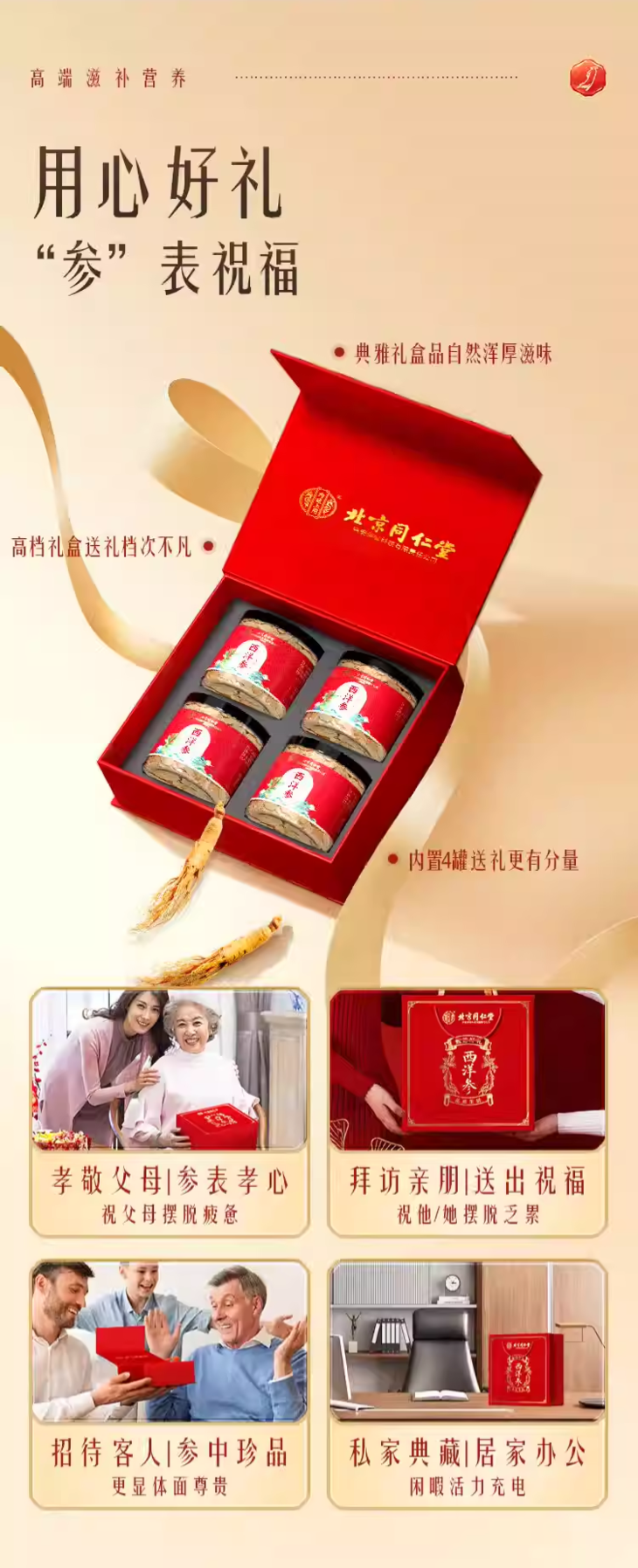 🎁少有尖端品质,送礼首选“参礼”!✨ 🔥【北京同仁堂西洋参礼盒】开团1盒4罐装只需💰159💥 👍百年国宝品牌!🔸精致大气礼盒,赠礼袋🎁