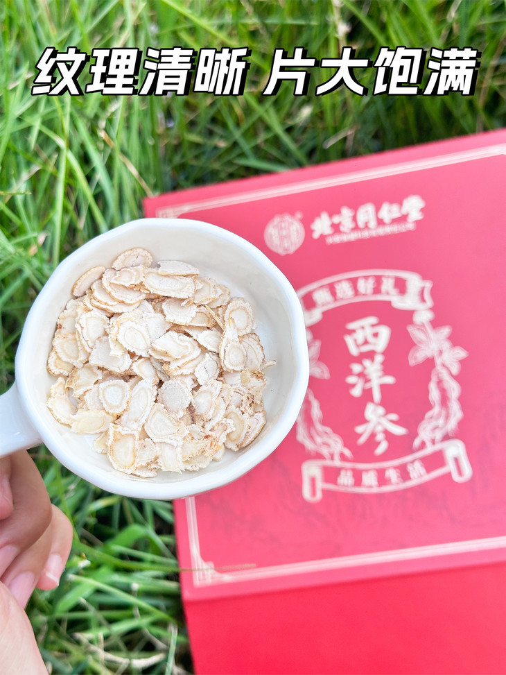 ✅地道药材,参气十足 ✅5年足龄参,核心产区最珍贵参龄 ♦️西洋参的营养波峰指数在5年最高 ✅经过33道原料质检,确保无残留 ✅每项质检都也有【质检报告】 ✅所有原材料单单农残质检就要15天 北京同仁堂产品,安全永远是排在第一位 ✅无添加,不漂白,原生态健康参