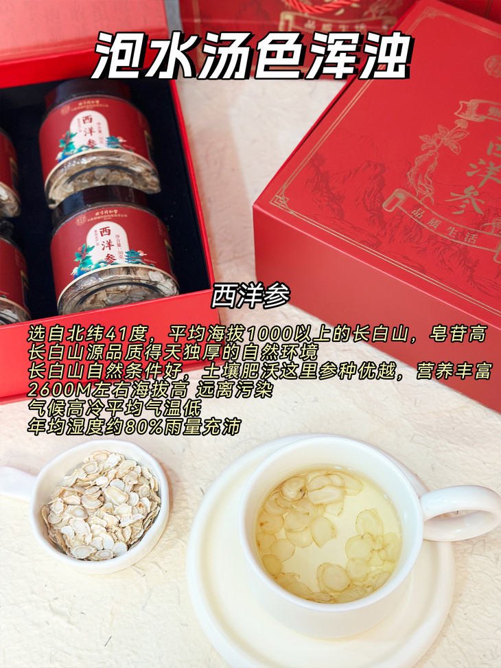 好品质西洋参三要素: 知名老字号出品、原产地、足年西洋参等 经常食用西洋参的人大都知道 吉林拥有西洋参最好的生长环境和最好的西洋参! 这款西洋参片精选长白山好参 切片烘干 不硫熏不染色 只做大自然的搬运工 ✅百年老字号,不掺假参,不掺水货! ✅切面平滑细腻,内圈放射菊花纹清晰