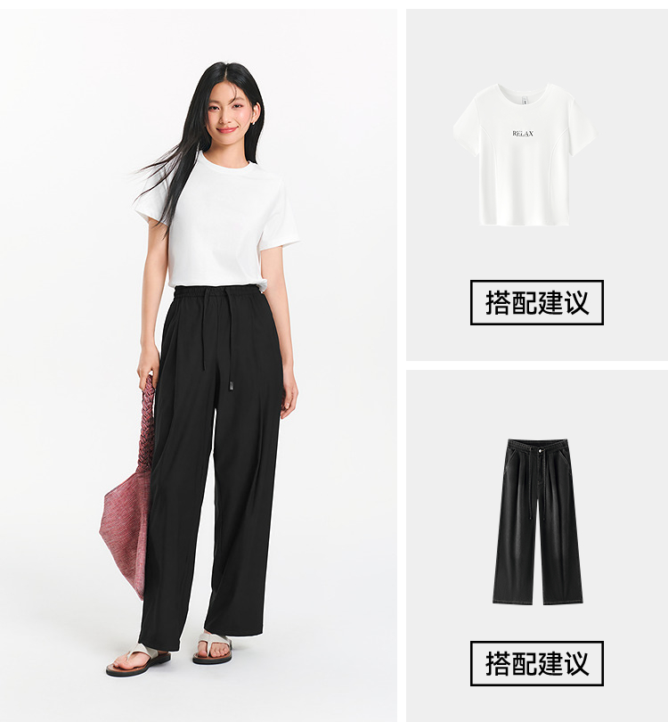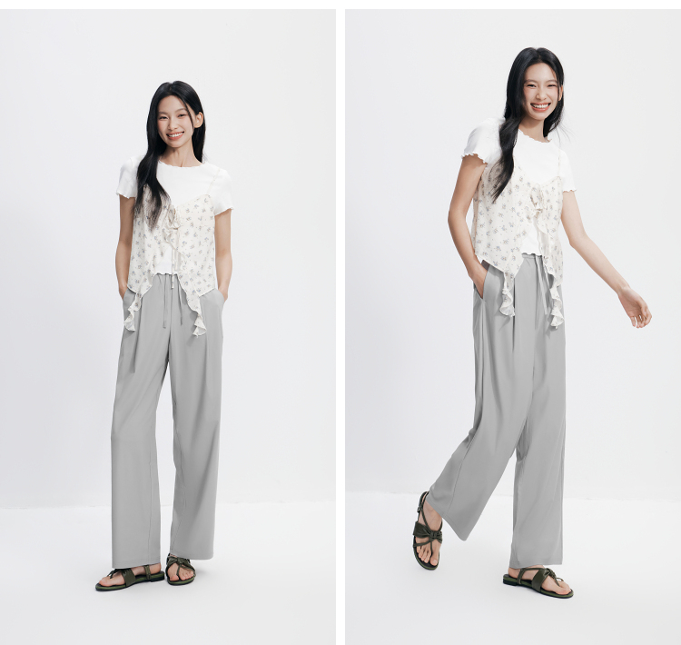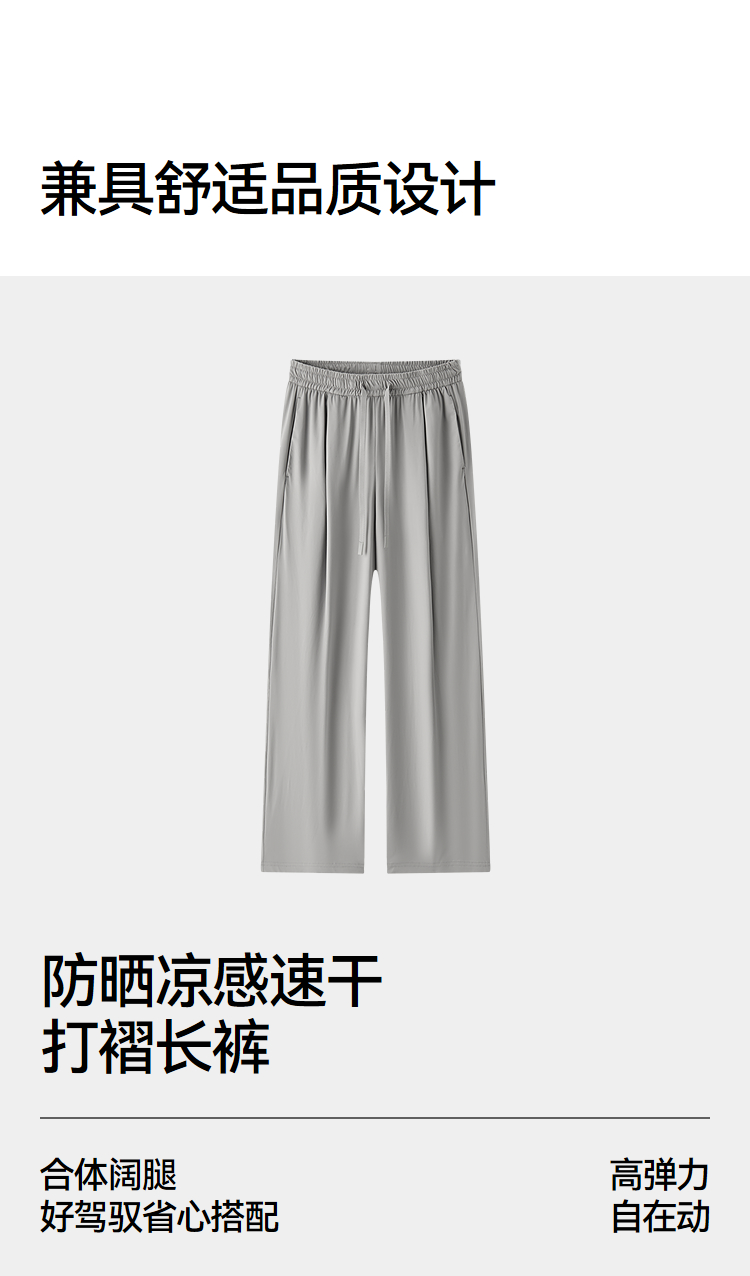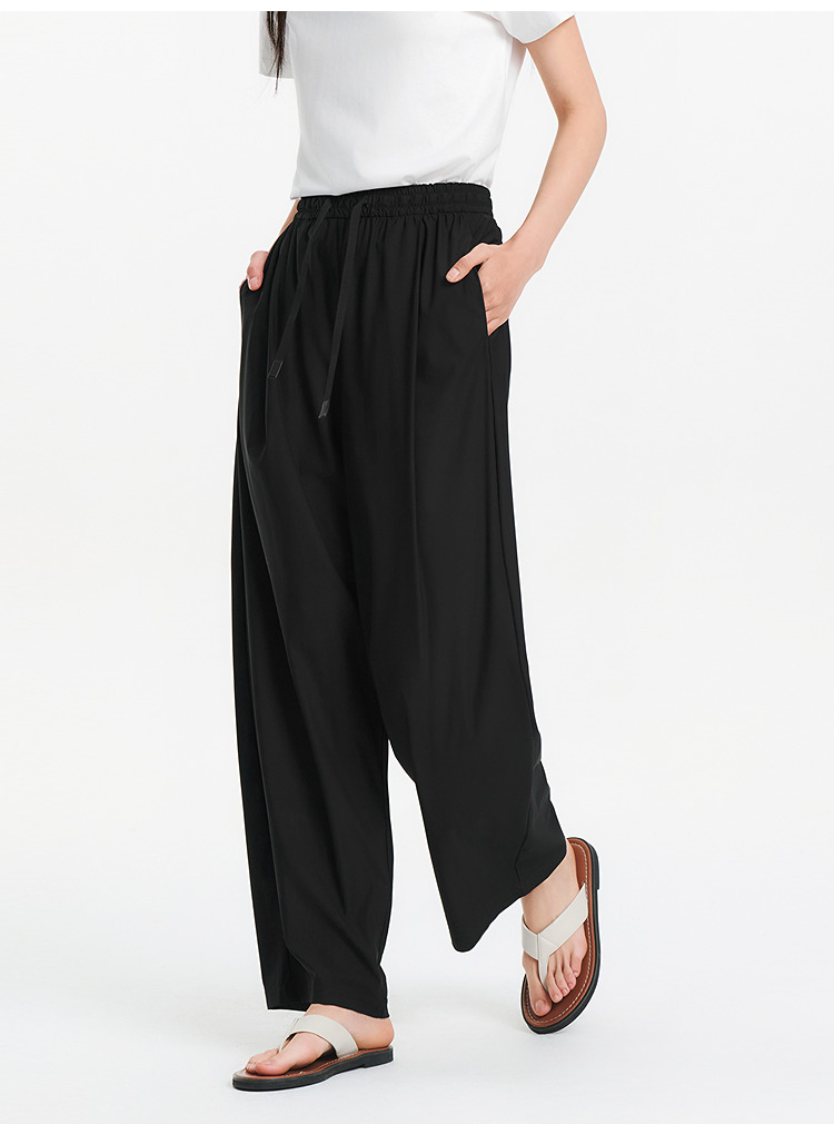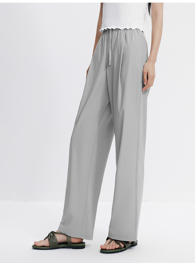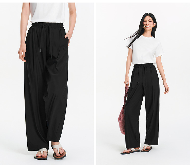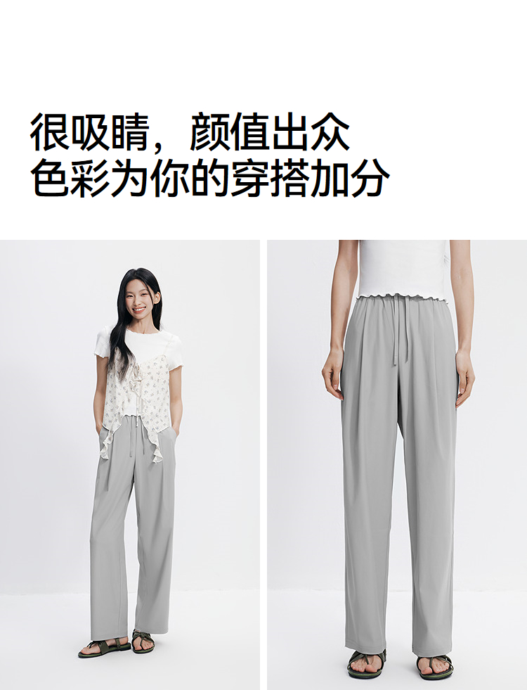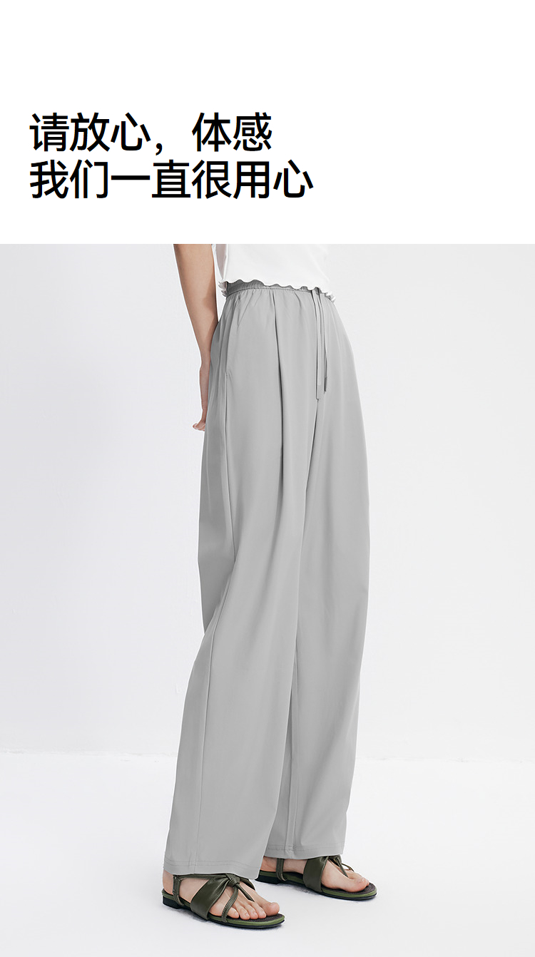 森马休闲裤女夏防晒凉感吸湿速干打褶长裤纯色慵懒登山徒步阔腿裤