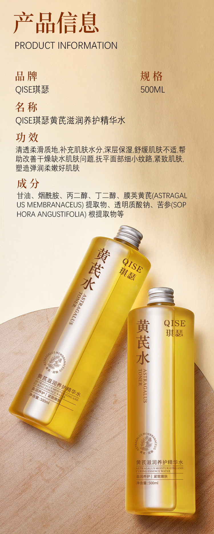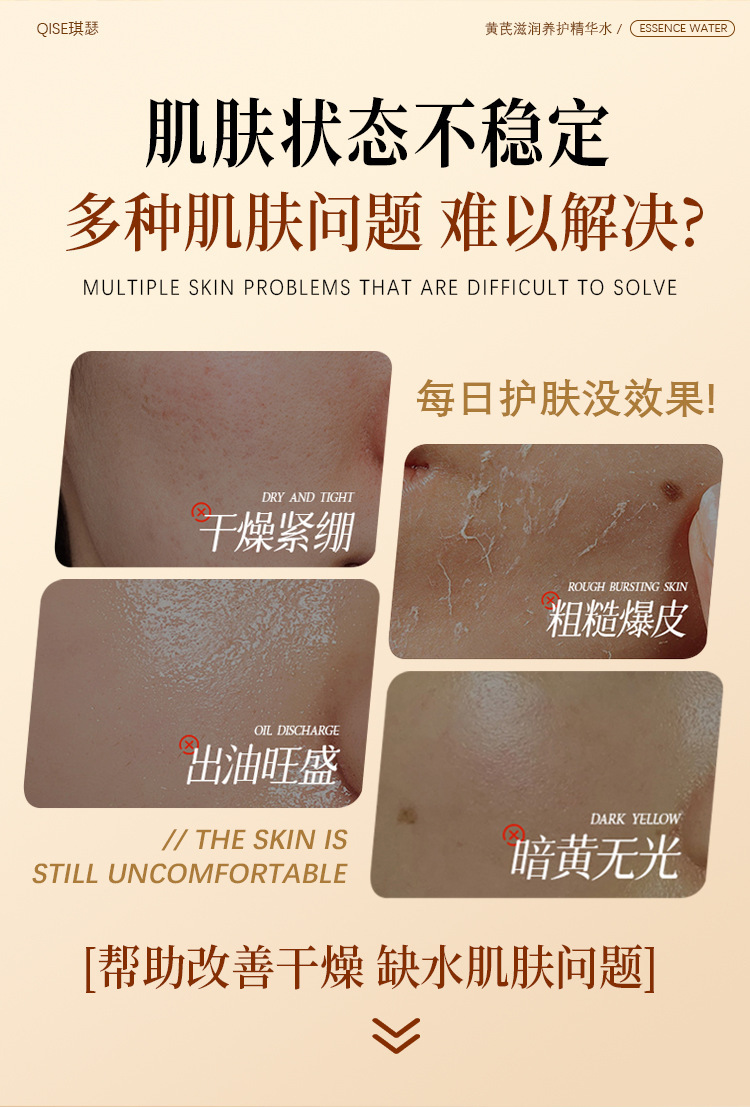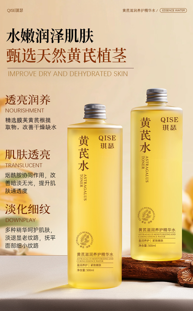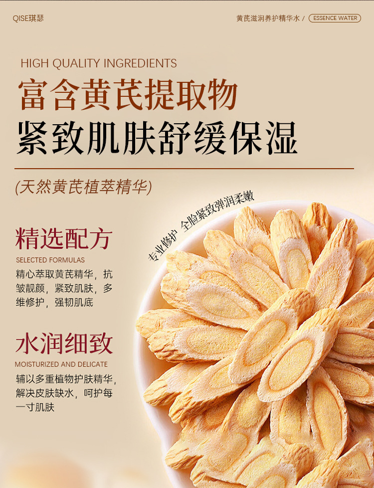 【温和亲肤!清爽好吸收】QISE琪瑟黄芪滋润养护精华水改善肌肤干燥补水淡化细纹紧致嫩肤。xb