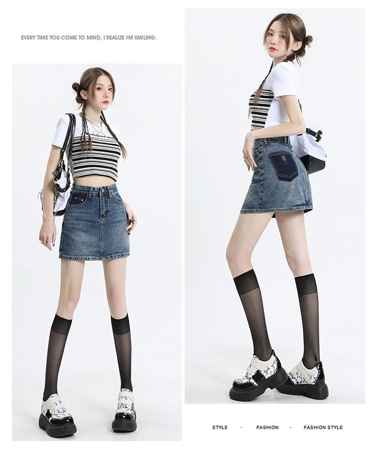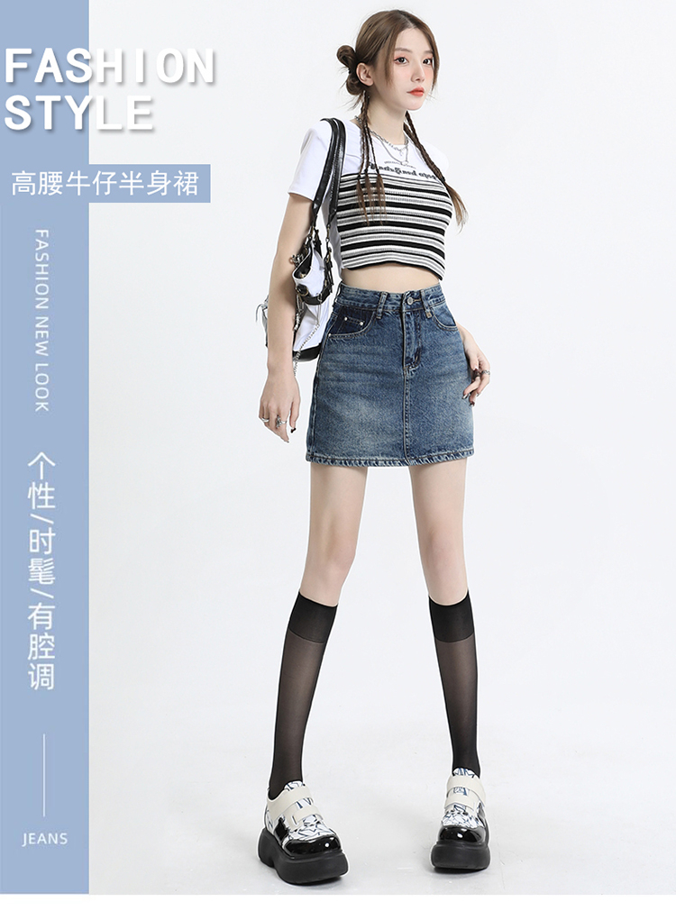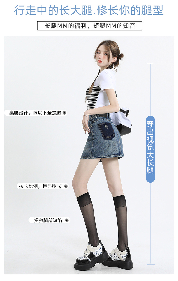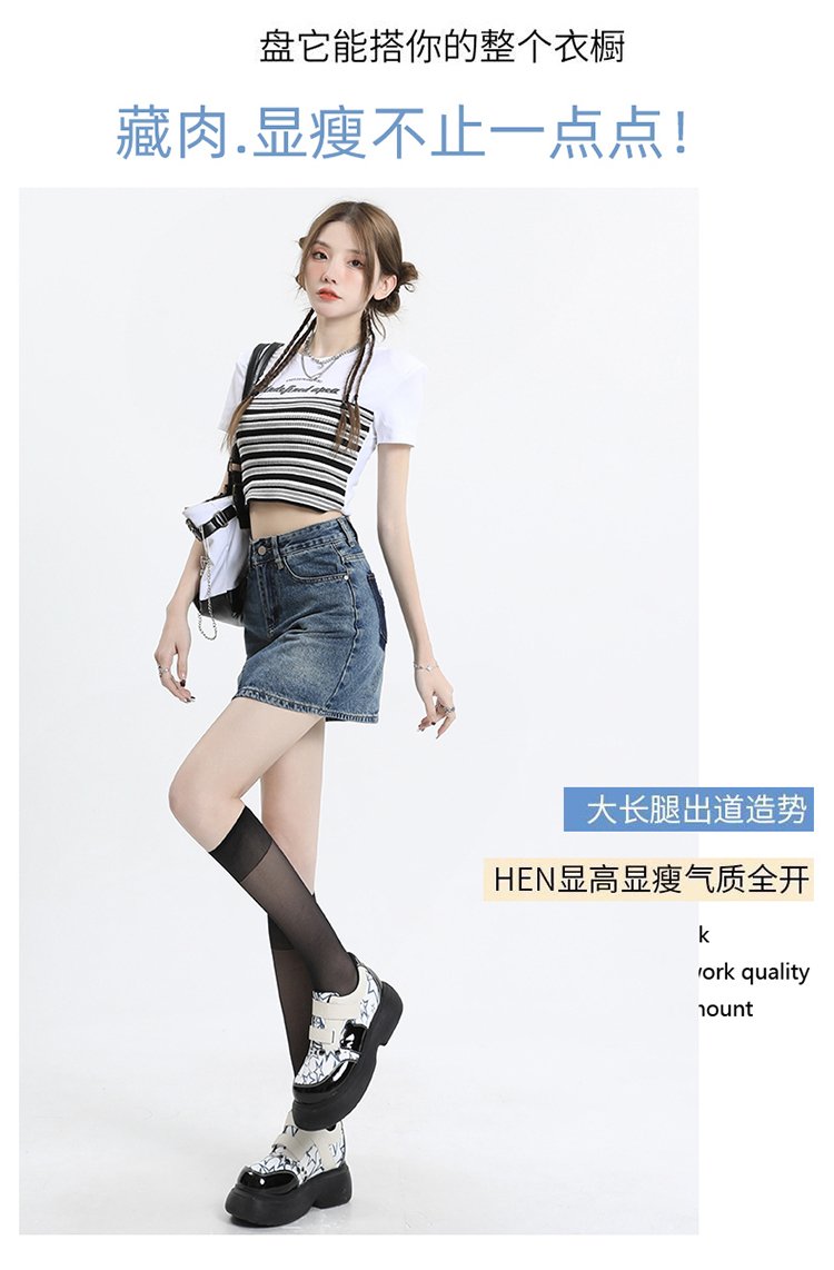 【HEY+JEANS】 季新款A字撞色 包臀短裙 305#
