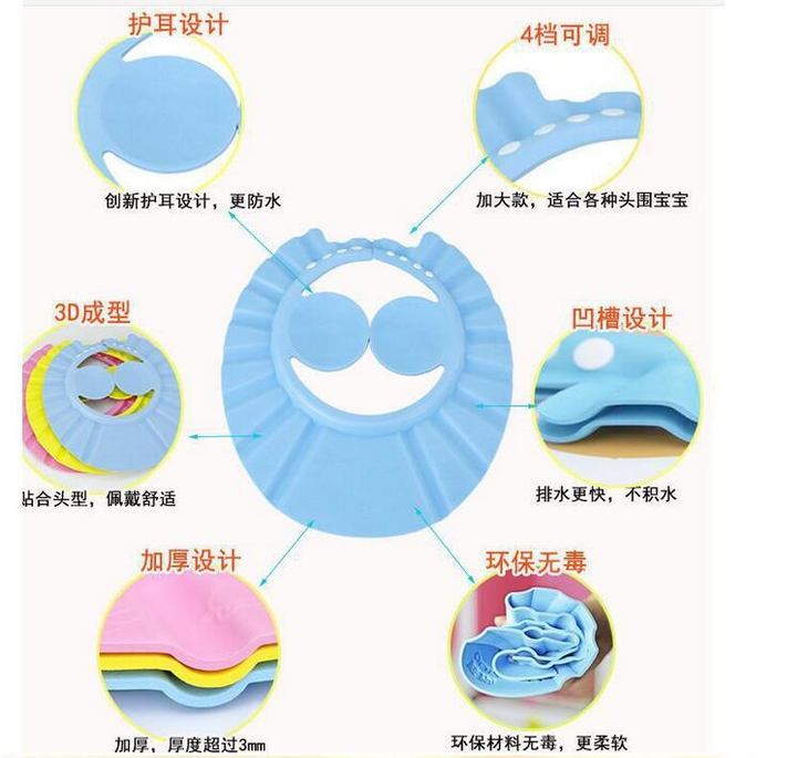 【买一送一 可调节儿童浴帽】宝宝洗头帽子带护耳款婴幼儿洗发帽可调节儿童理发洗澡加厚浴帽