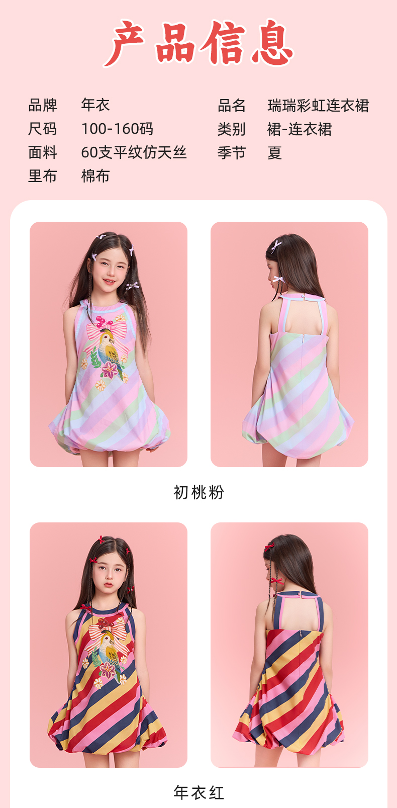 年衣无袖连衣裙25夏季新款甜美公主花苞裙瑞瑞彩虹连衣裙