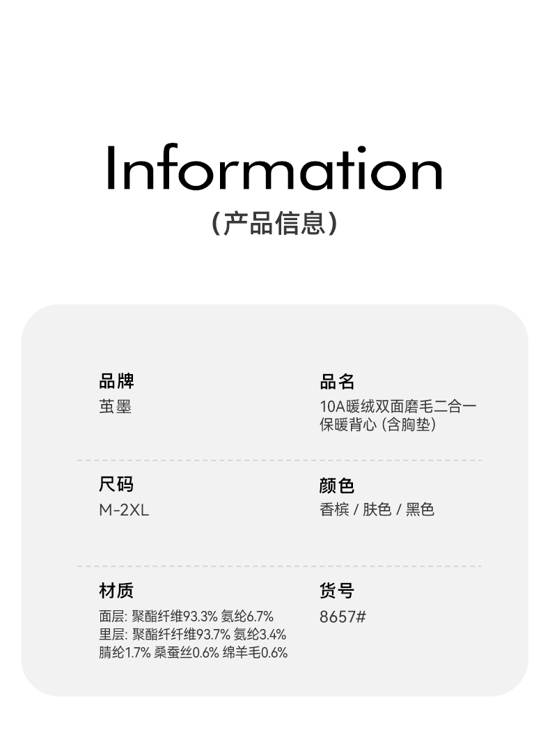茧墨 10A暖绒双面磨毛二合一保暖背心(含胸垫)