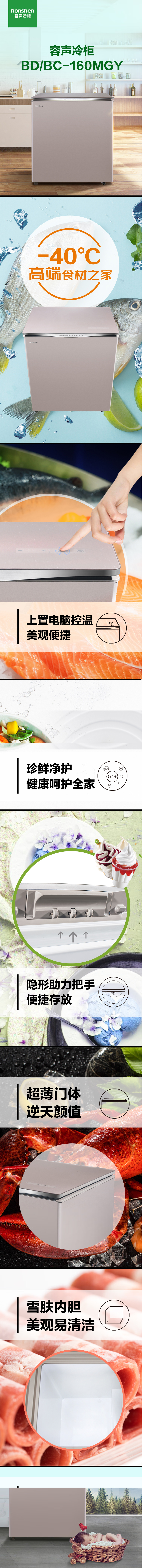 容声(Ronshen) (202404 )BD/BC-160MGY 160升 卧式 冰柜 珍鲜净护 钛空金