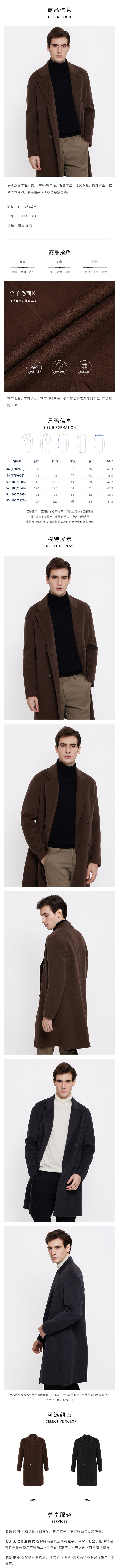 callisto咖色手工双面羊毛大衣 FSFEC118X