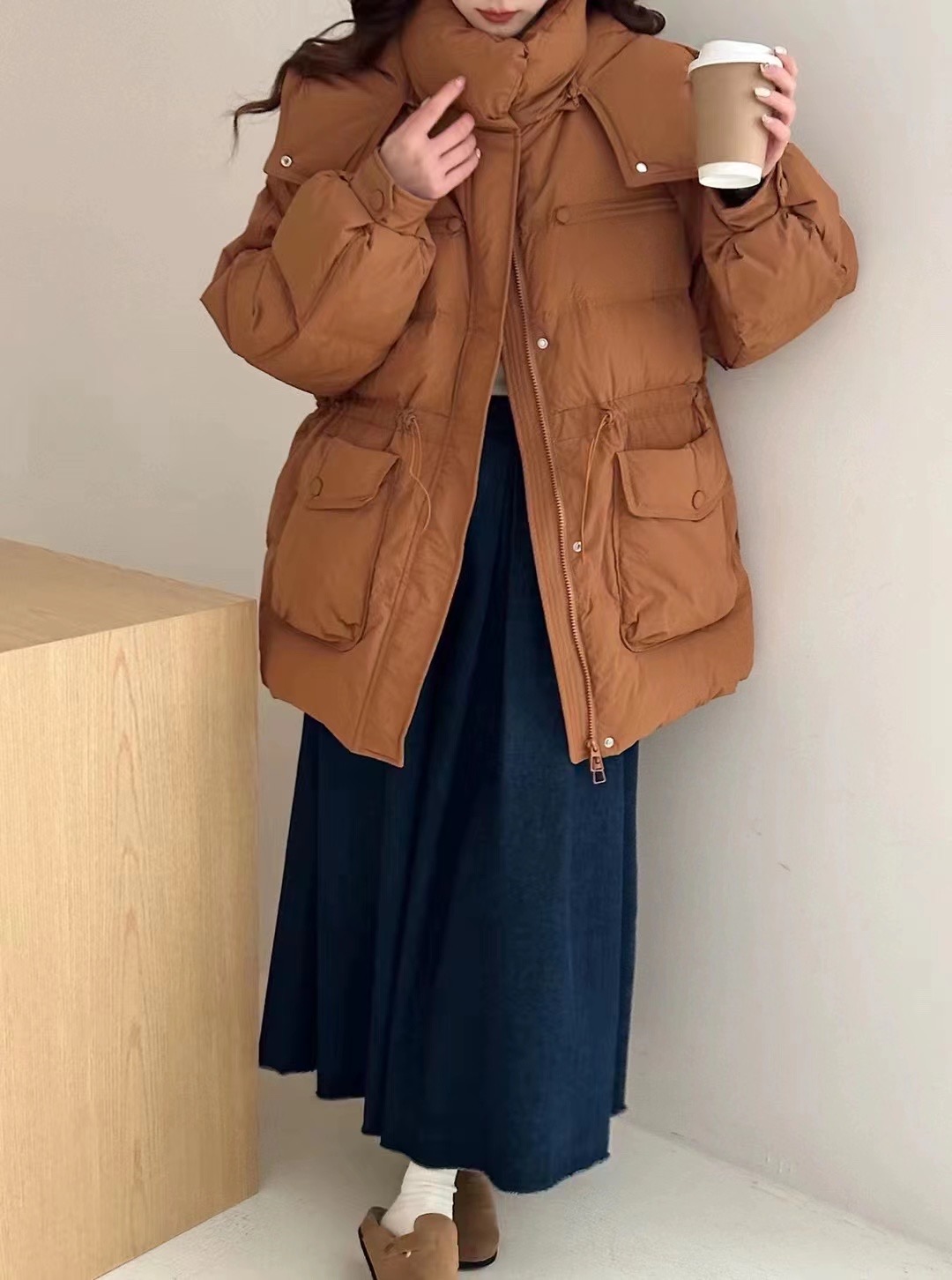 【YW】无忧购韩版收腰显瘦包扣休闲百搭羽绒服外套24028#