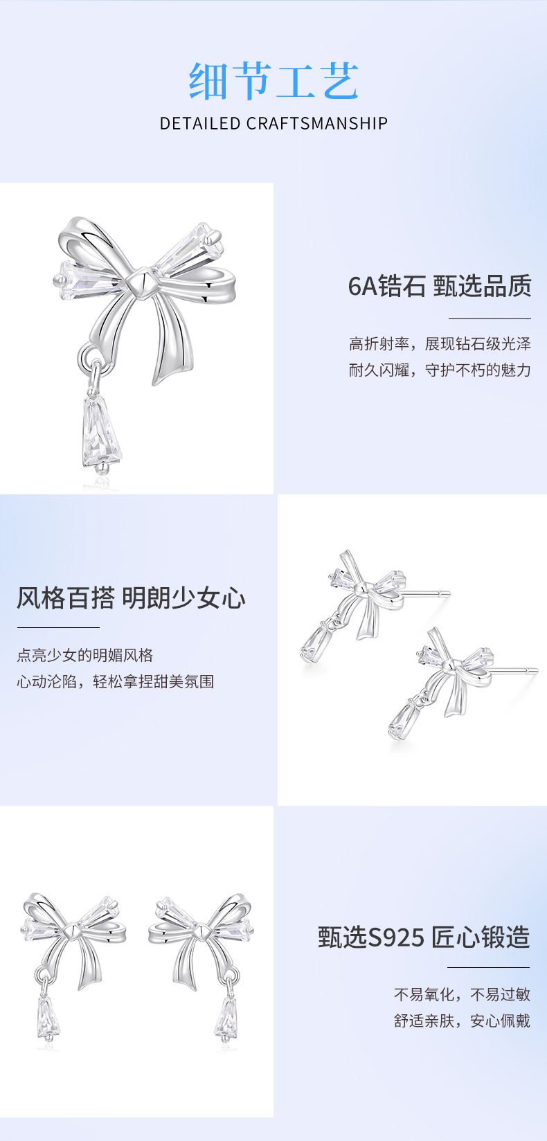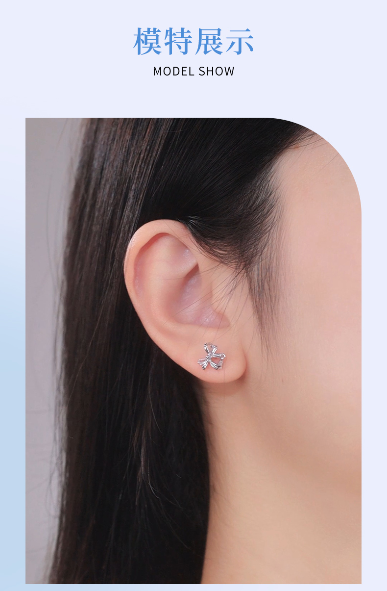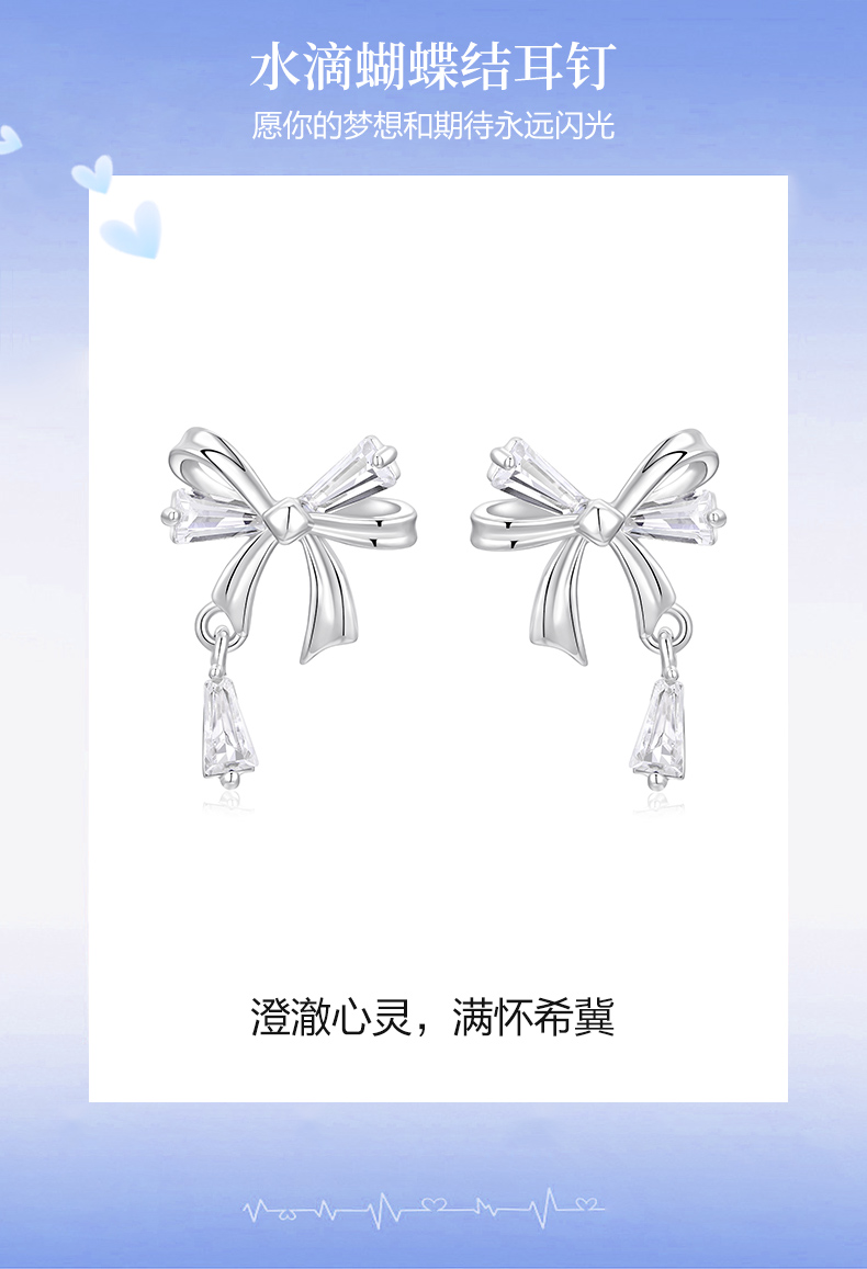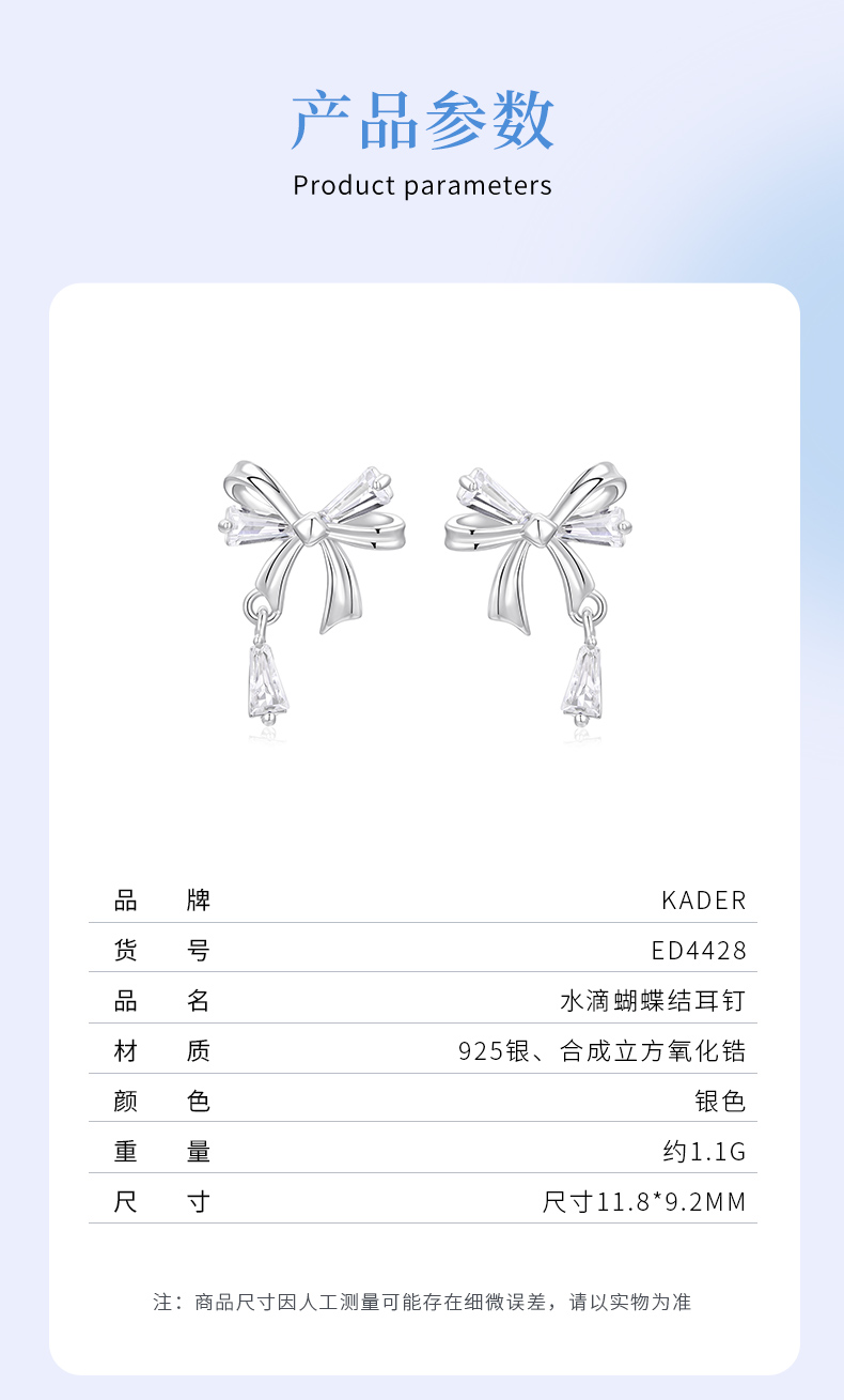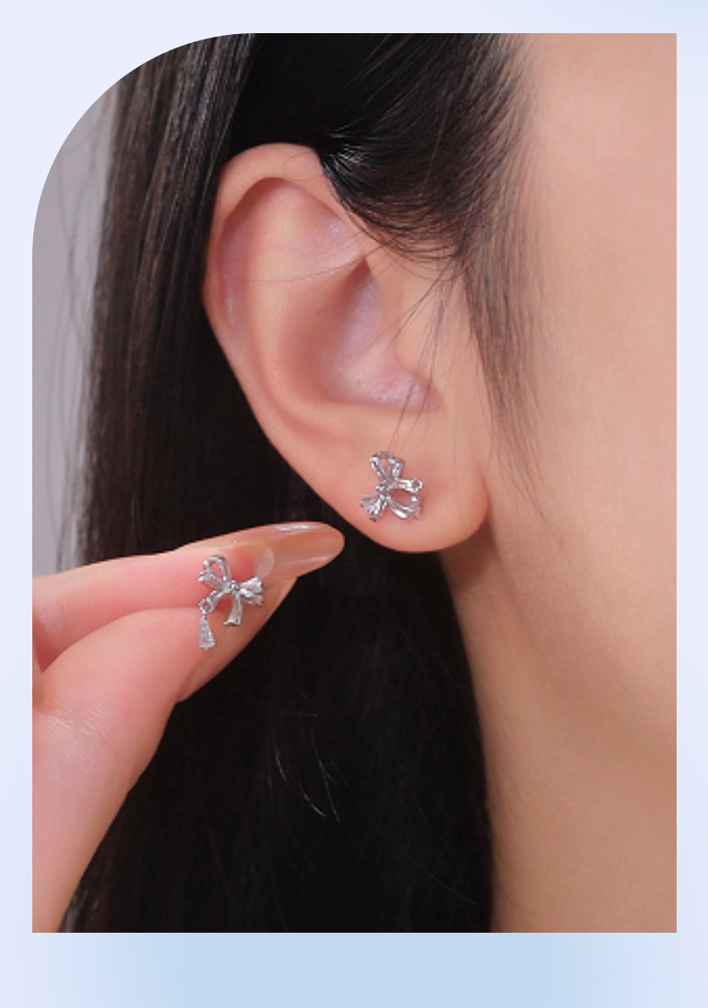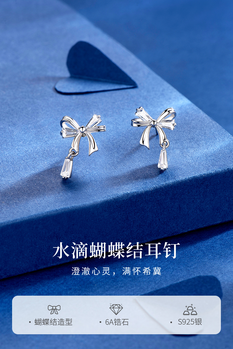 卡蒂罗/KADER 水滴蝴蝶结耳钉 灵动结系列 在逃公主丝带结设计甜美可爱纯银耳饰 满钻镶嵌流苏灵动吸睛养耳洞配饰