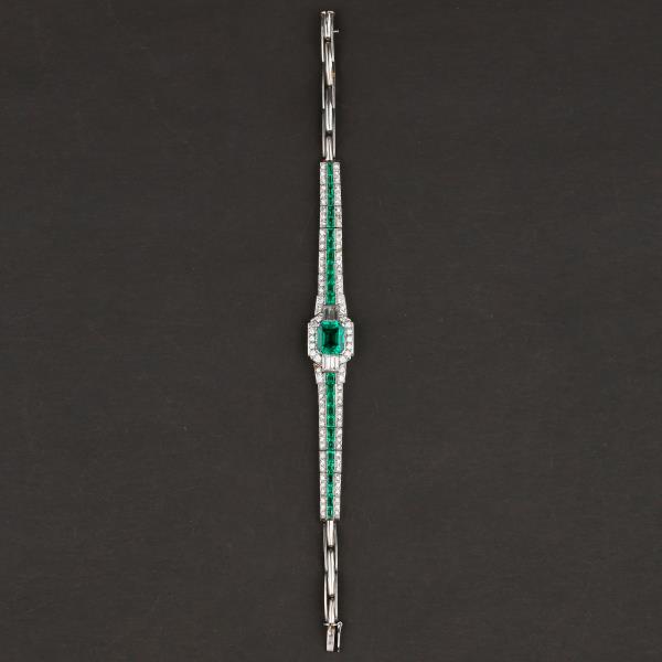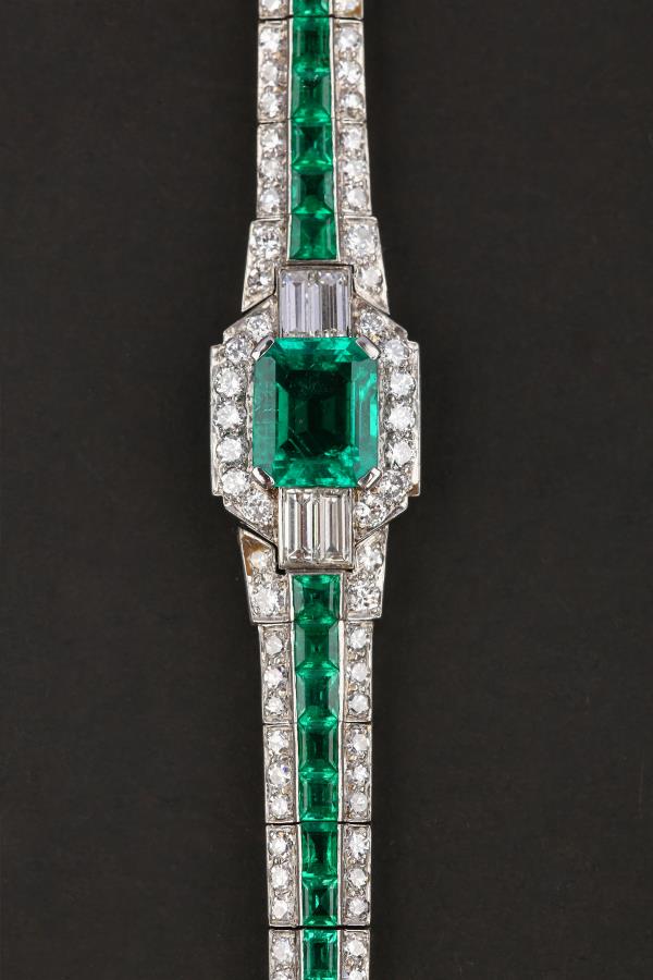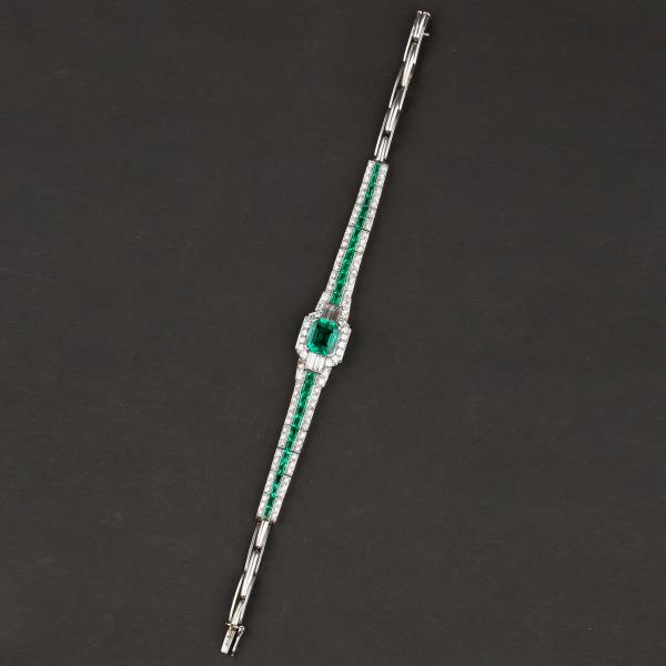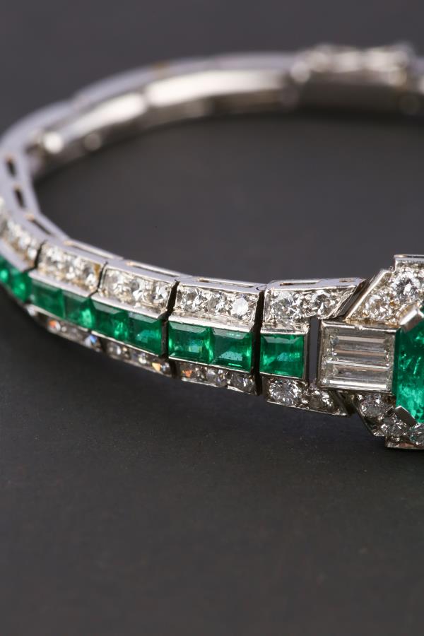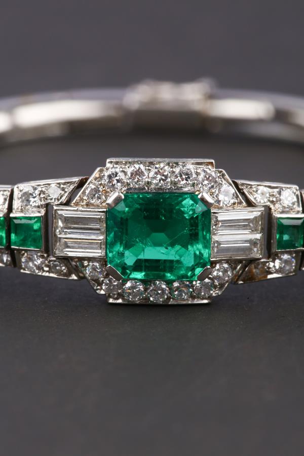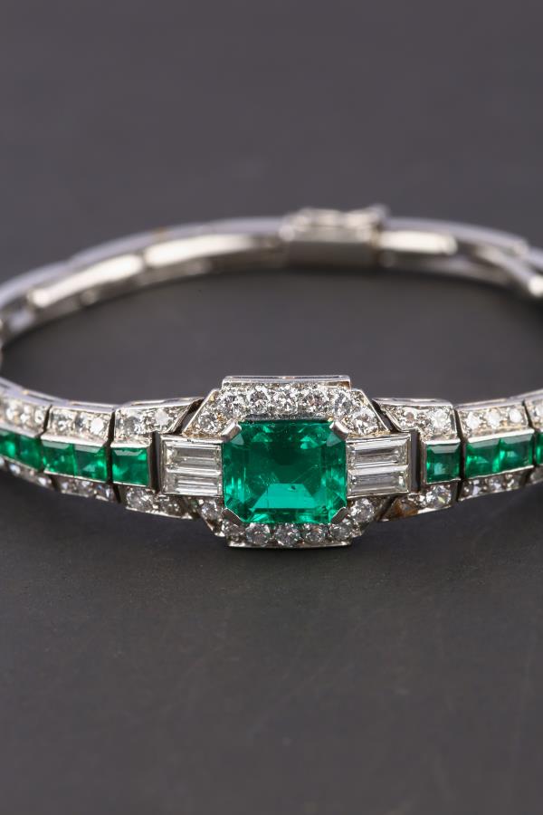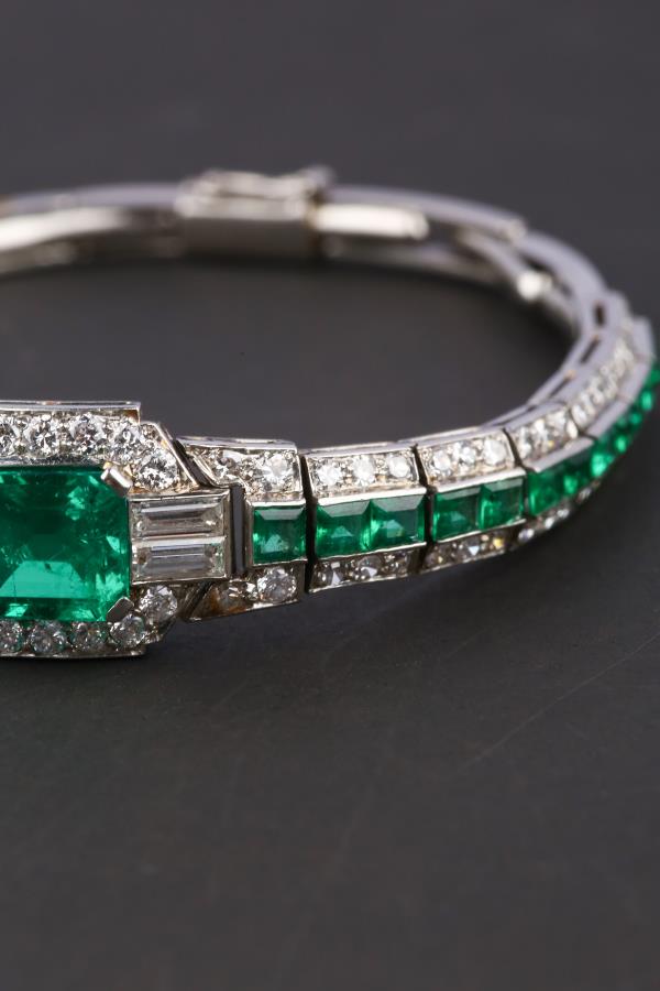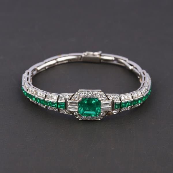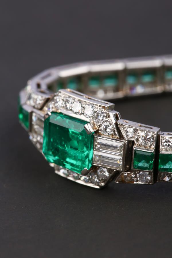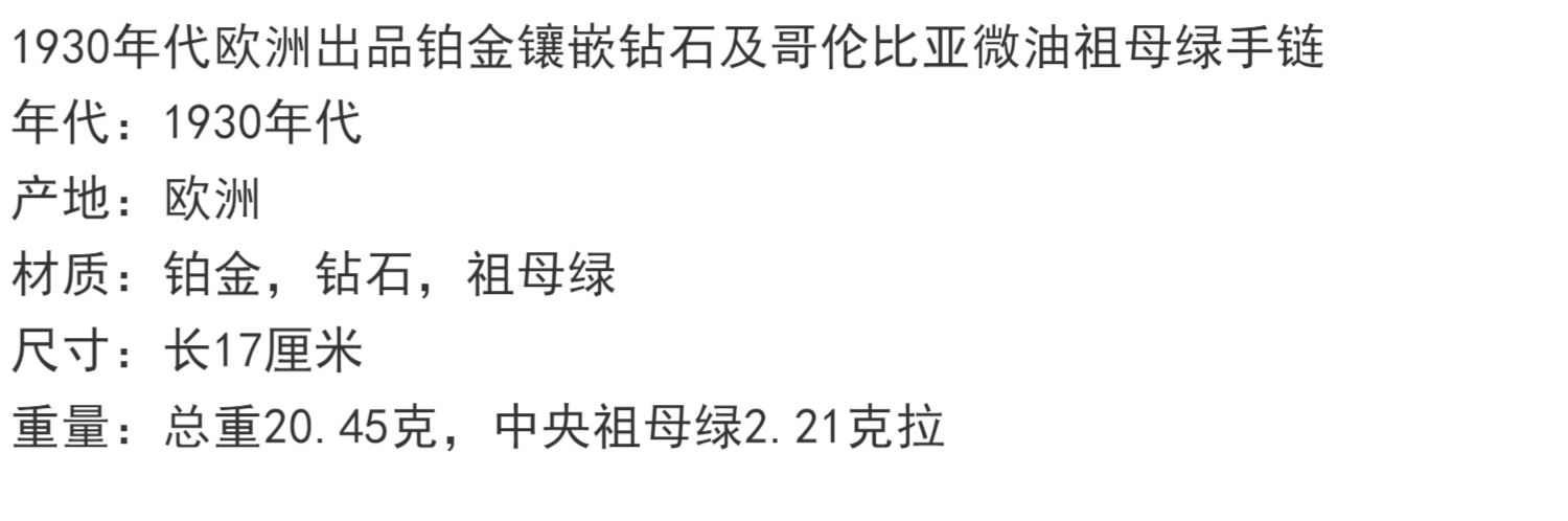 独角鹿西洋古董珠宝首饰欧洲铂金镶嵌钻石哥伦比亚祖母绿手链手镯