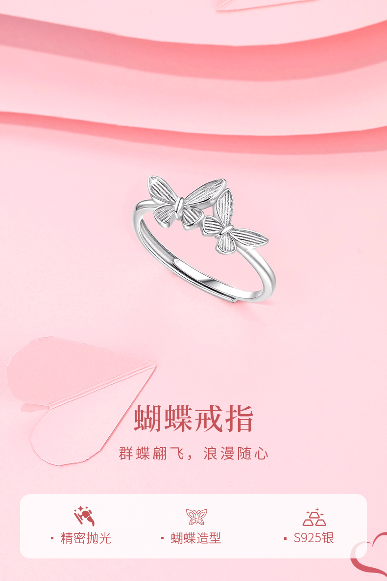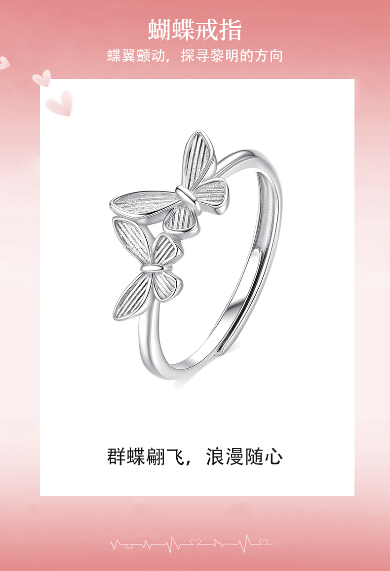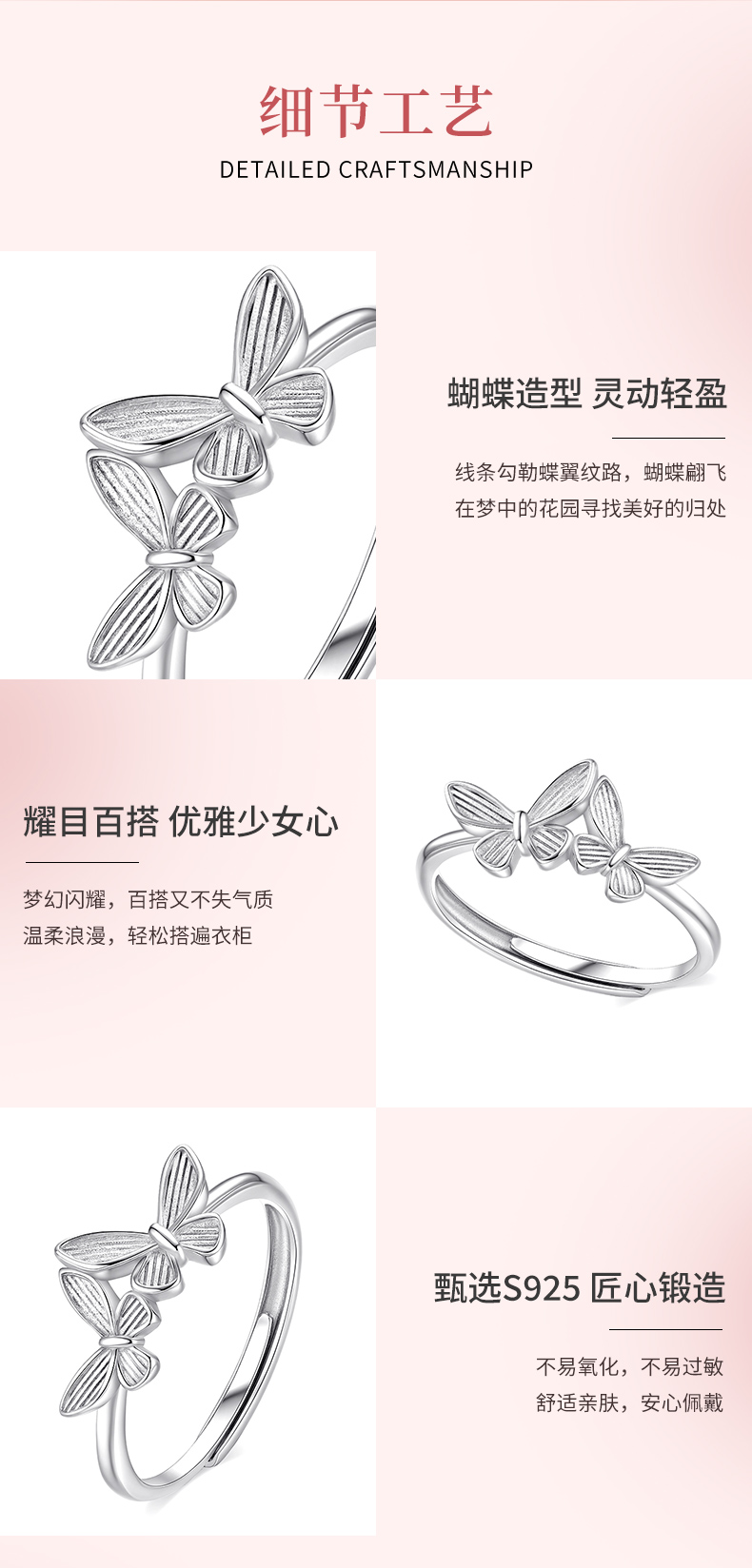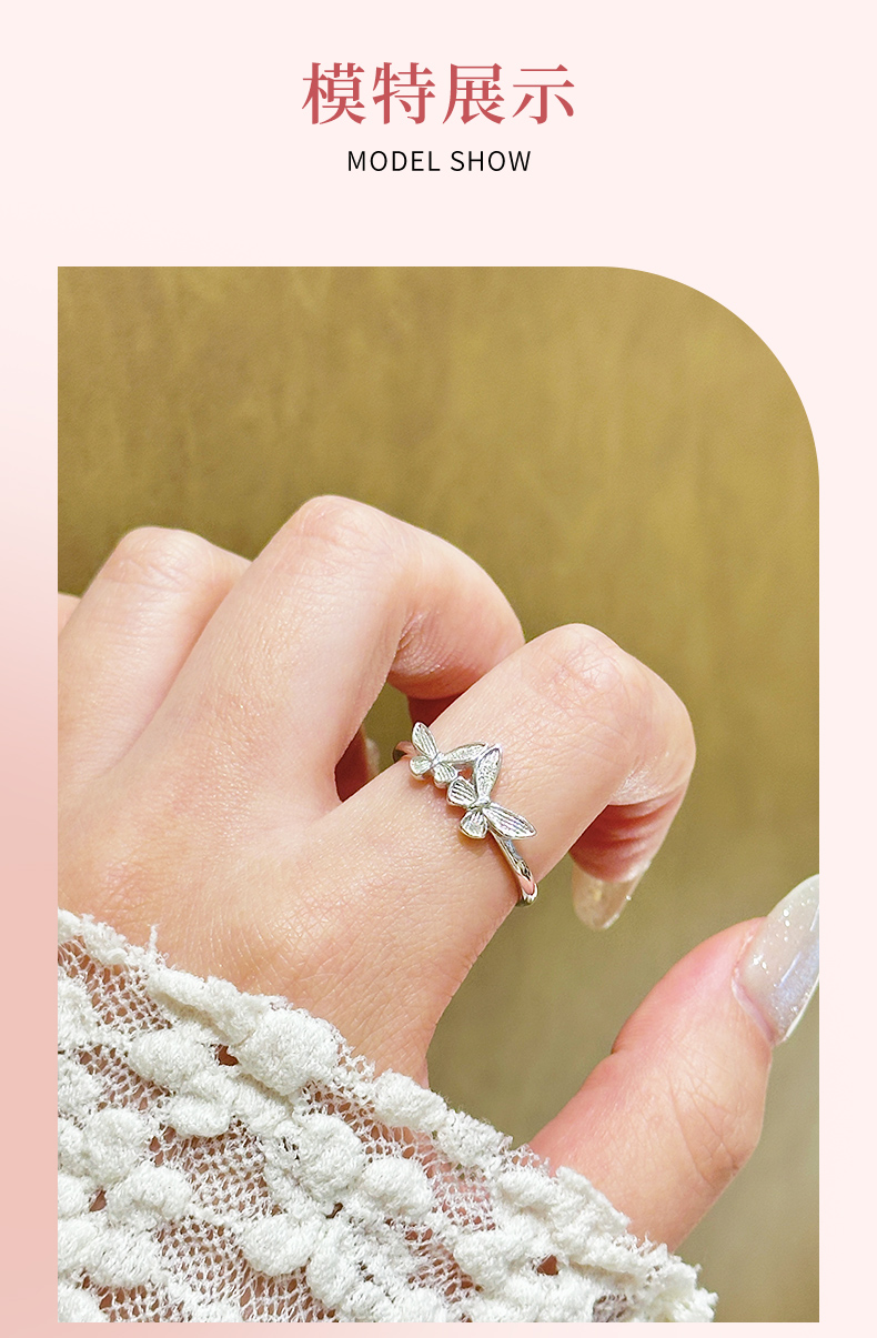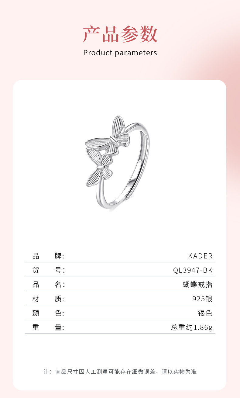 卡蒂罗KADER 蝴蝶女戒 925银立体双蝶轻奢精致优雅时尚森系高级设计感小众百搭戒 恋爱告白女生闺蜜款