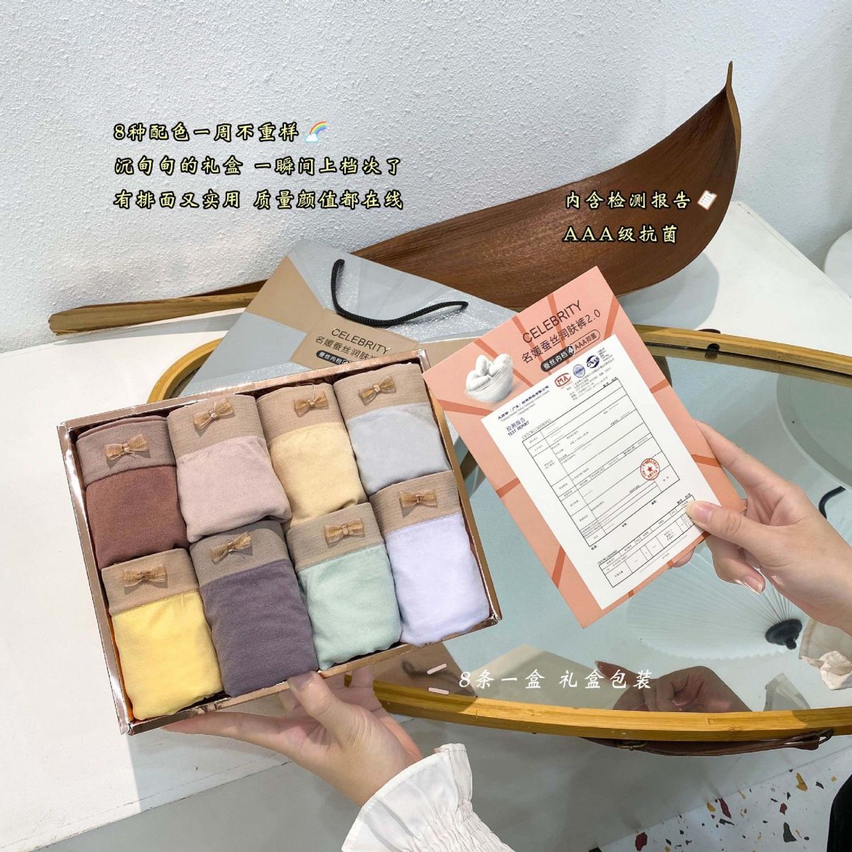 【呵护女性健康】【8条礼盒装】名媛内裤2.0蚕丝内裤女网红中腰蕾丝裤抗jun透气无痕三角裤内裤内衣