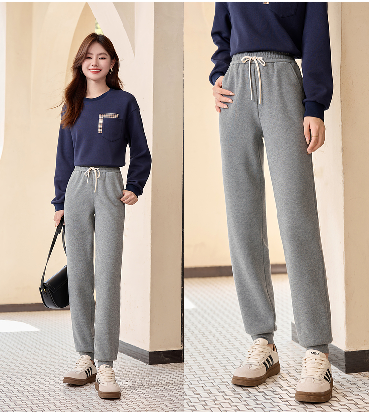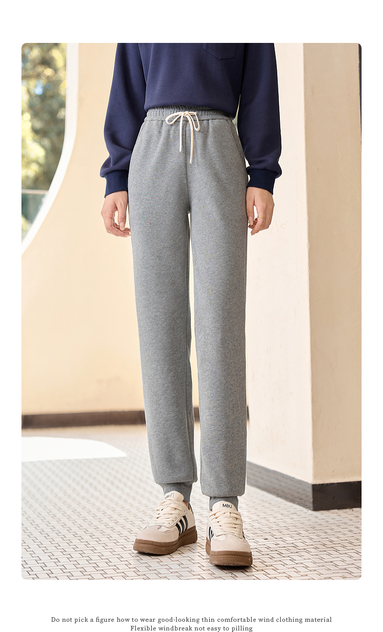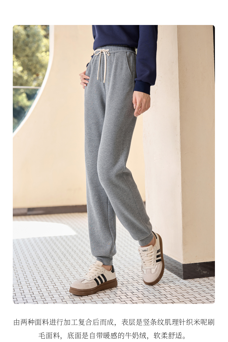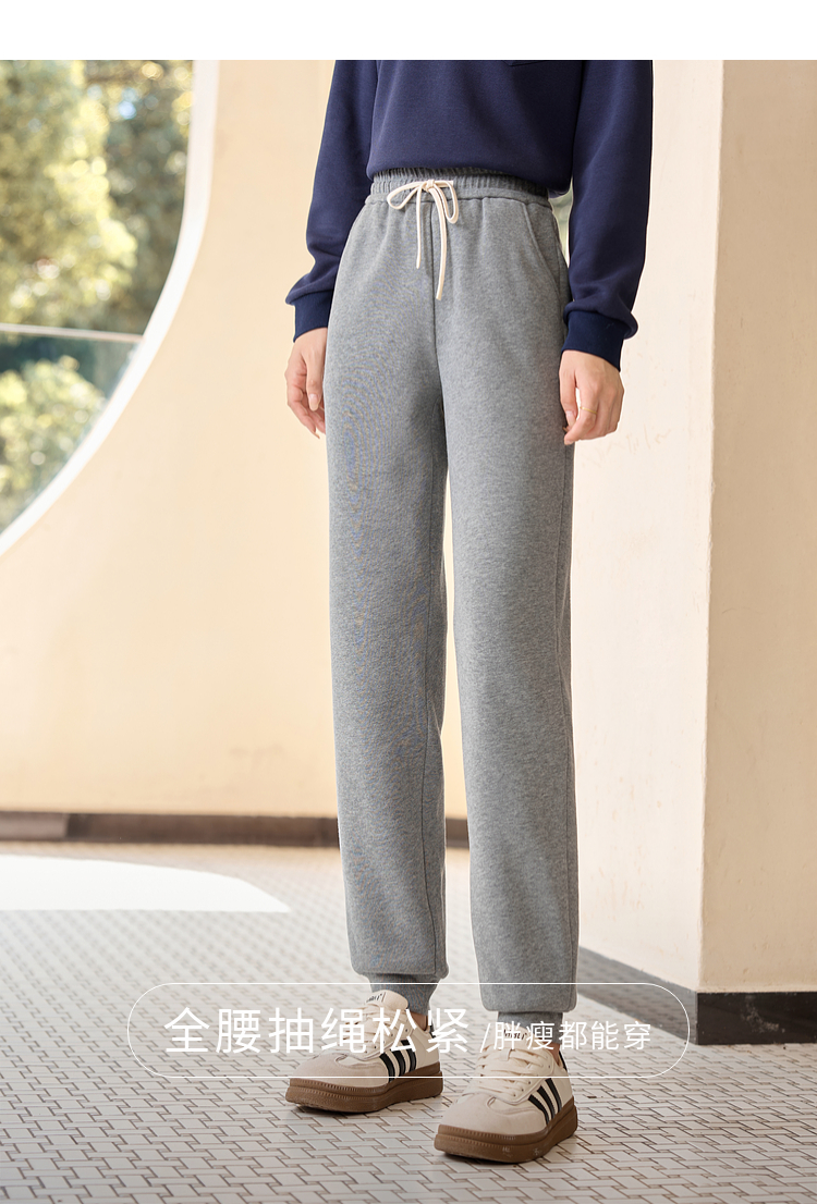 【年终特卖】熙世界灰色束脚运动裤加绒加厚2025秋冬新款小个子宽松休闲卫裤