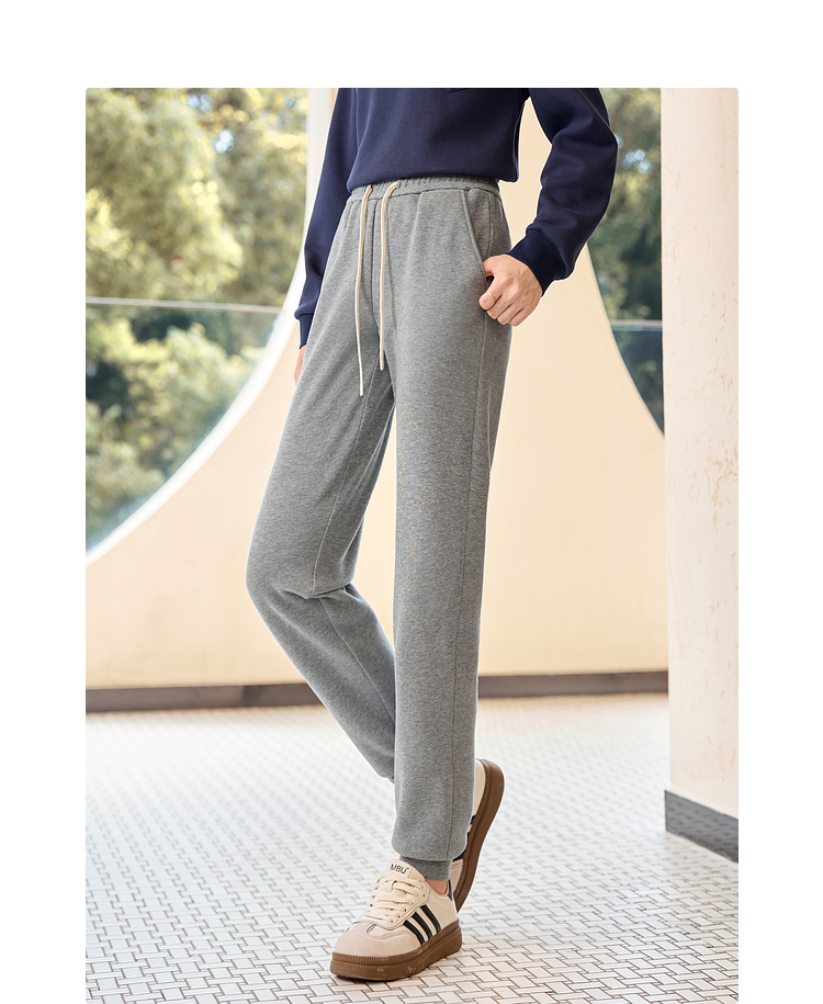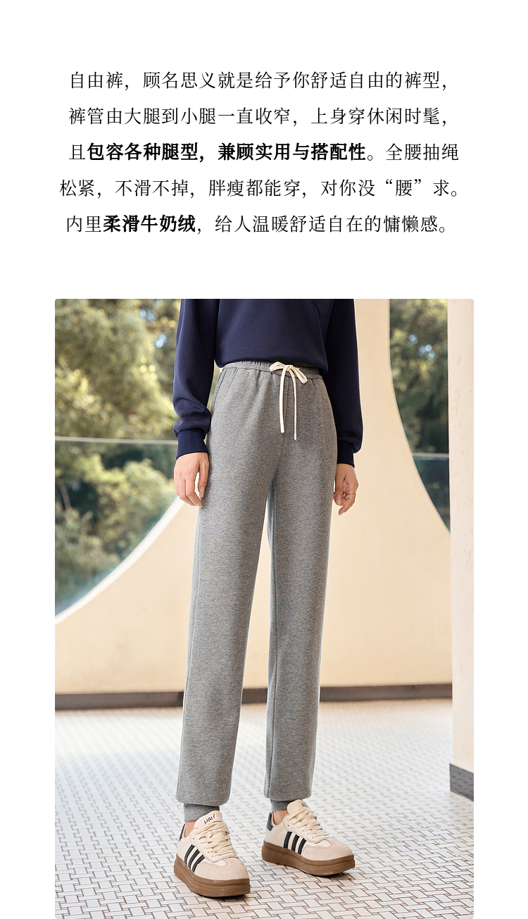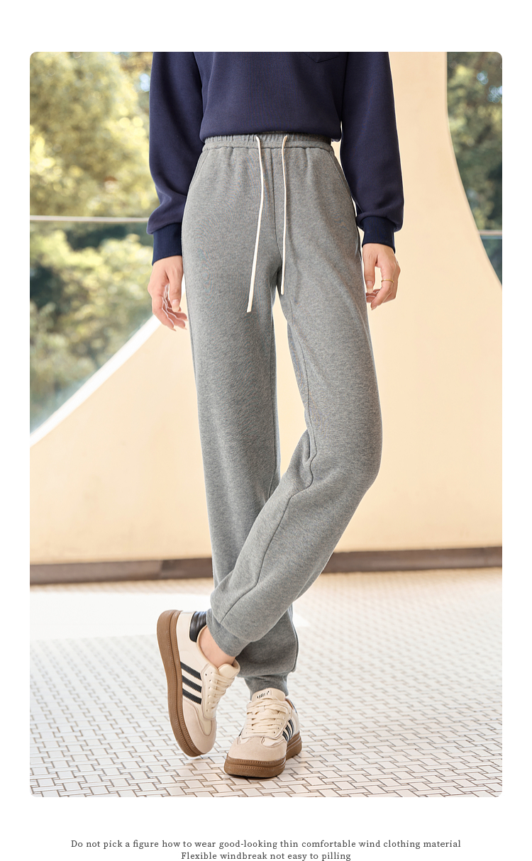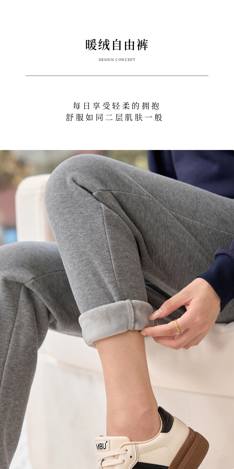 【年终特卖】熙世界灰色束脚运动裤加绒加厚2025秋冬新款小个子宽松休闲卫裤