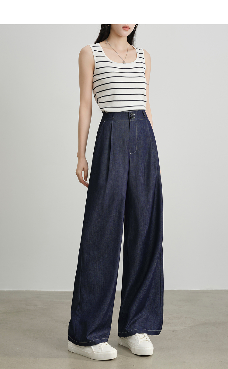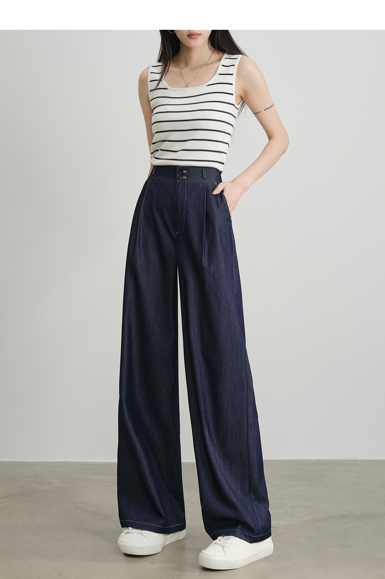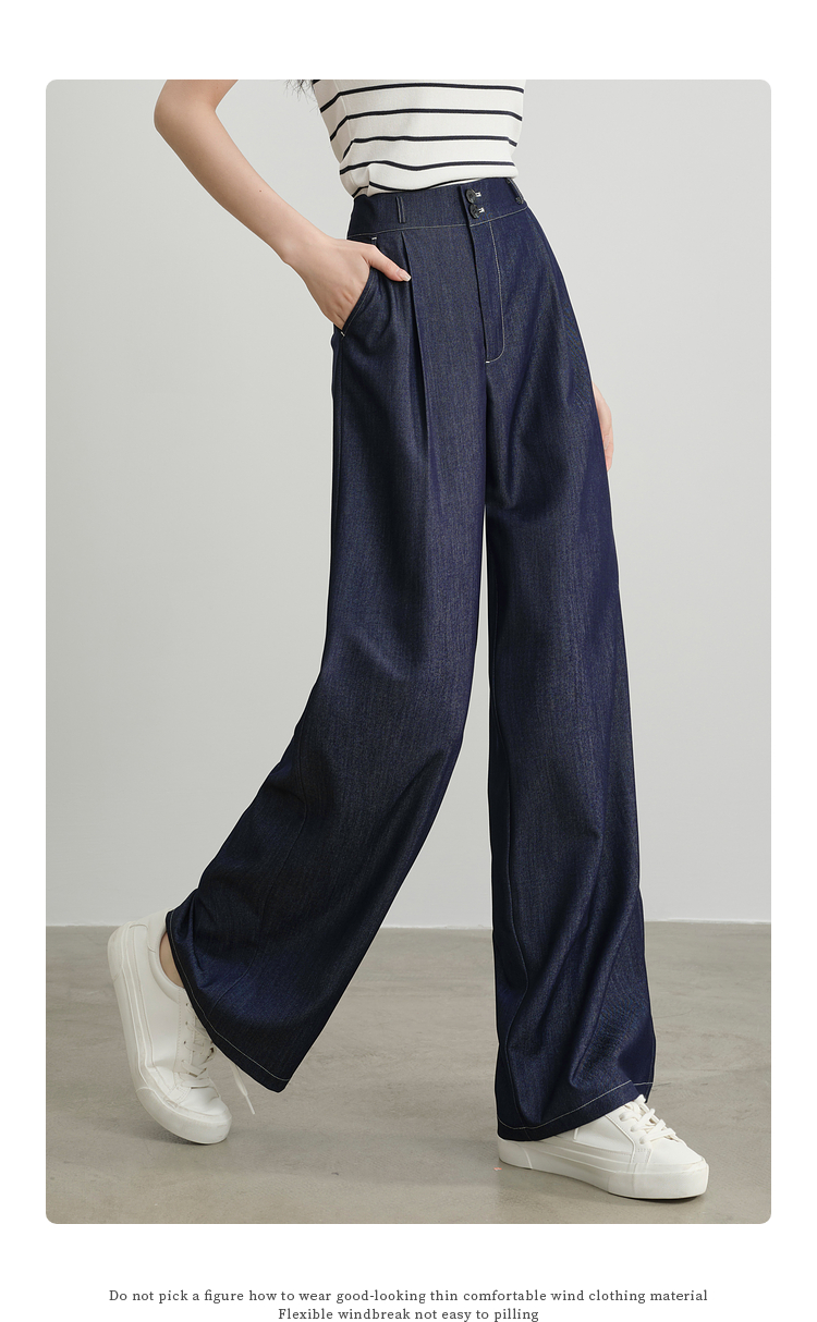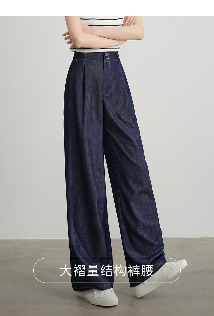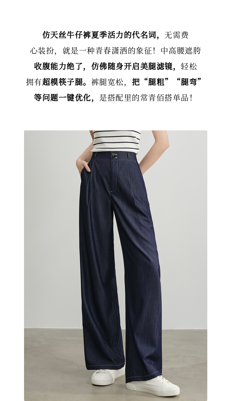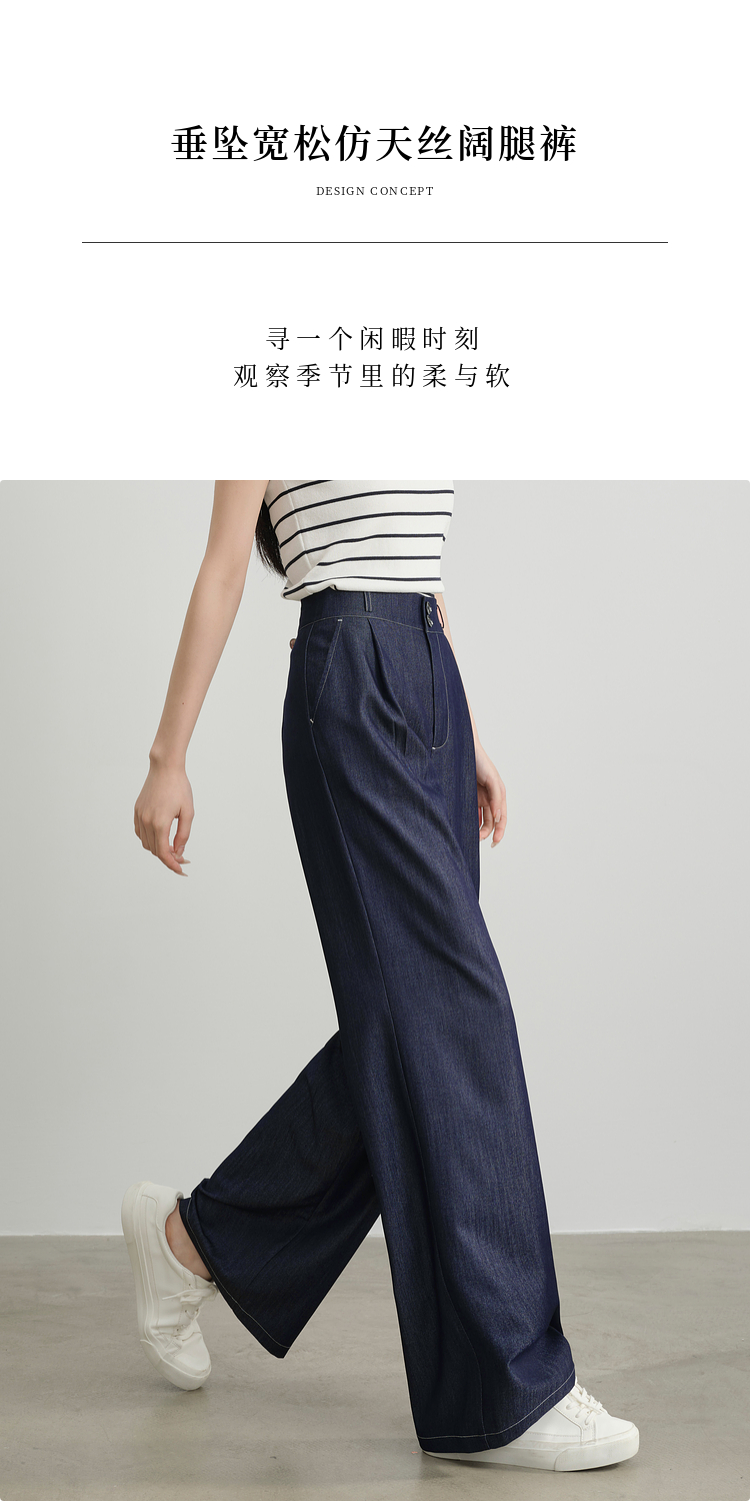 【专属特价】熙世界宽松直筒阔腿裤女夏季薄款2025新款高腰垂感仿天丝软牛仔裤