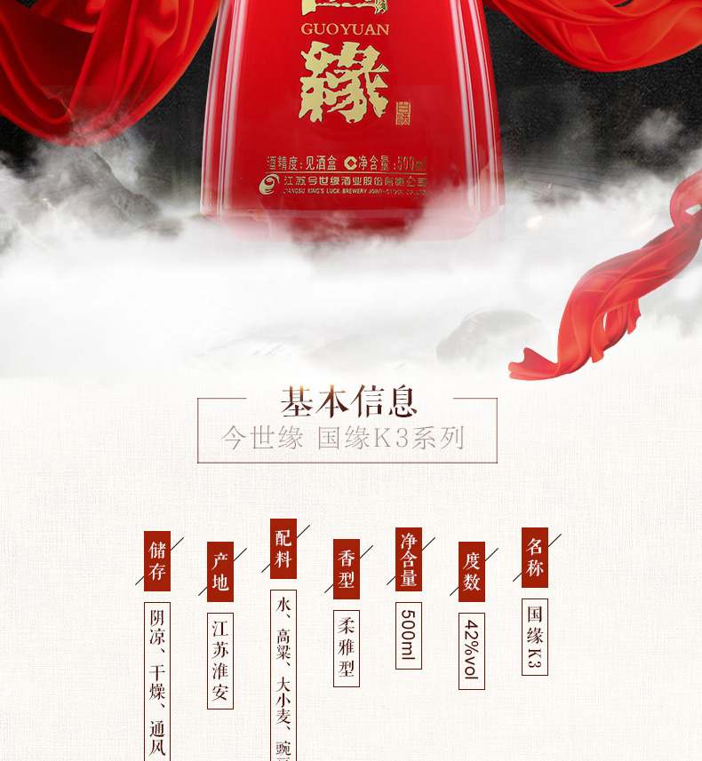 【实体商超版非电商版】今世缘 国缘V3(40.9% 500ml) /国缘K3(42% 500ml) / 国缘K5 (42% 500ml)