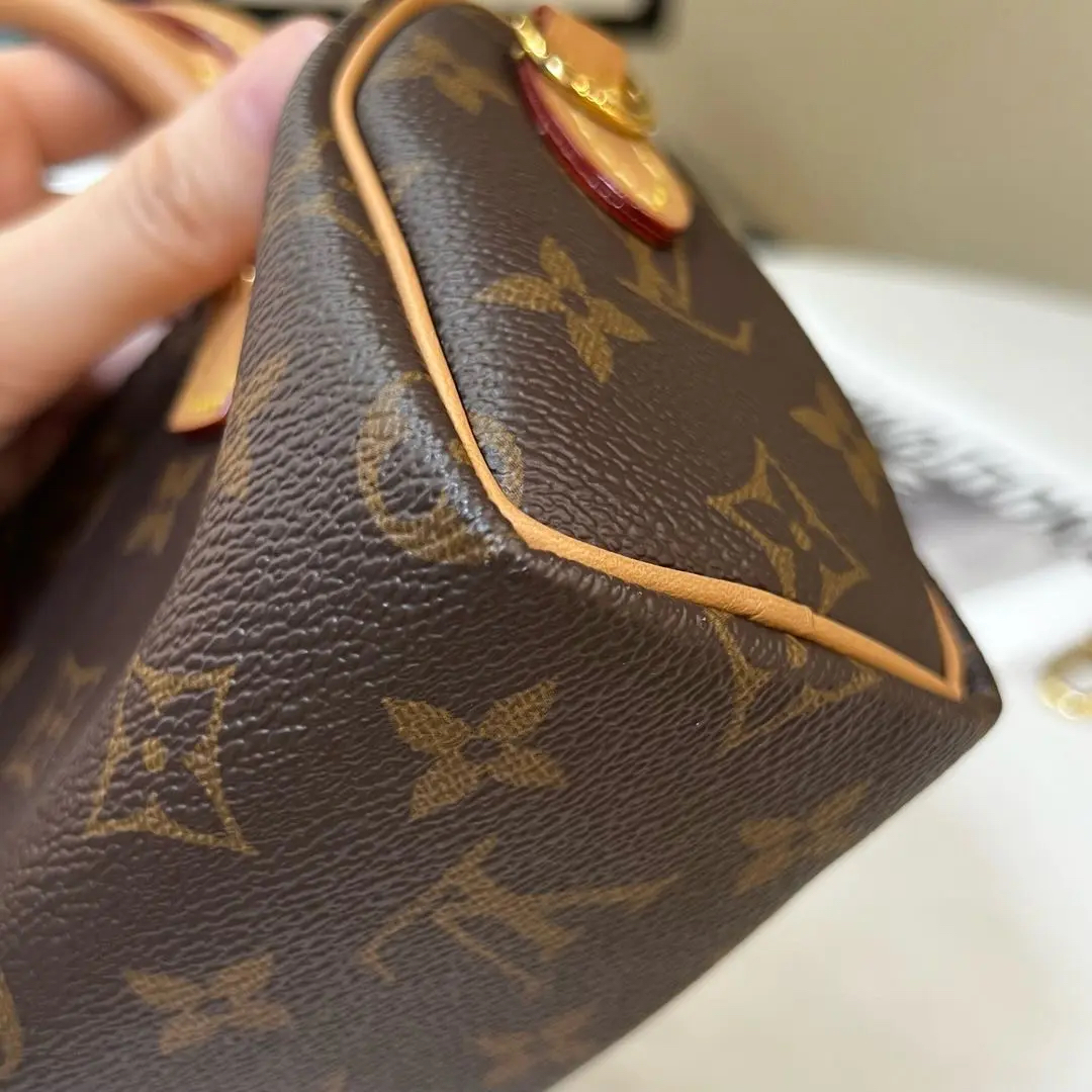 【商品详情】正品二手LV speedy nano 老花 斜挎包👜 97新 16*10 配件:肩带。金刚款式之一 保值可爱