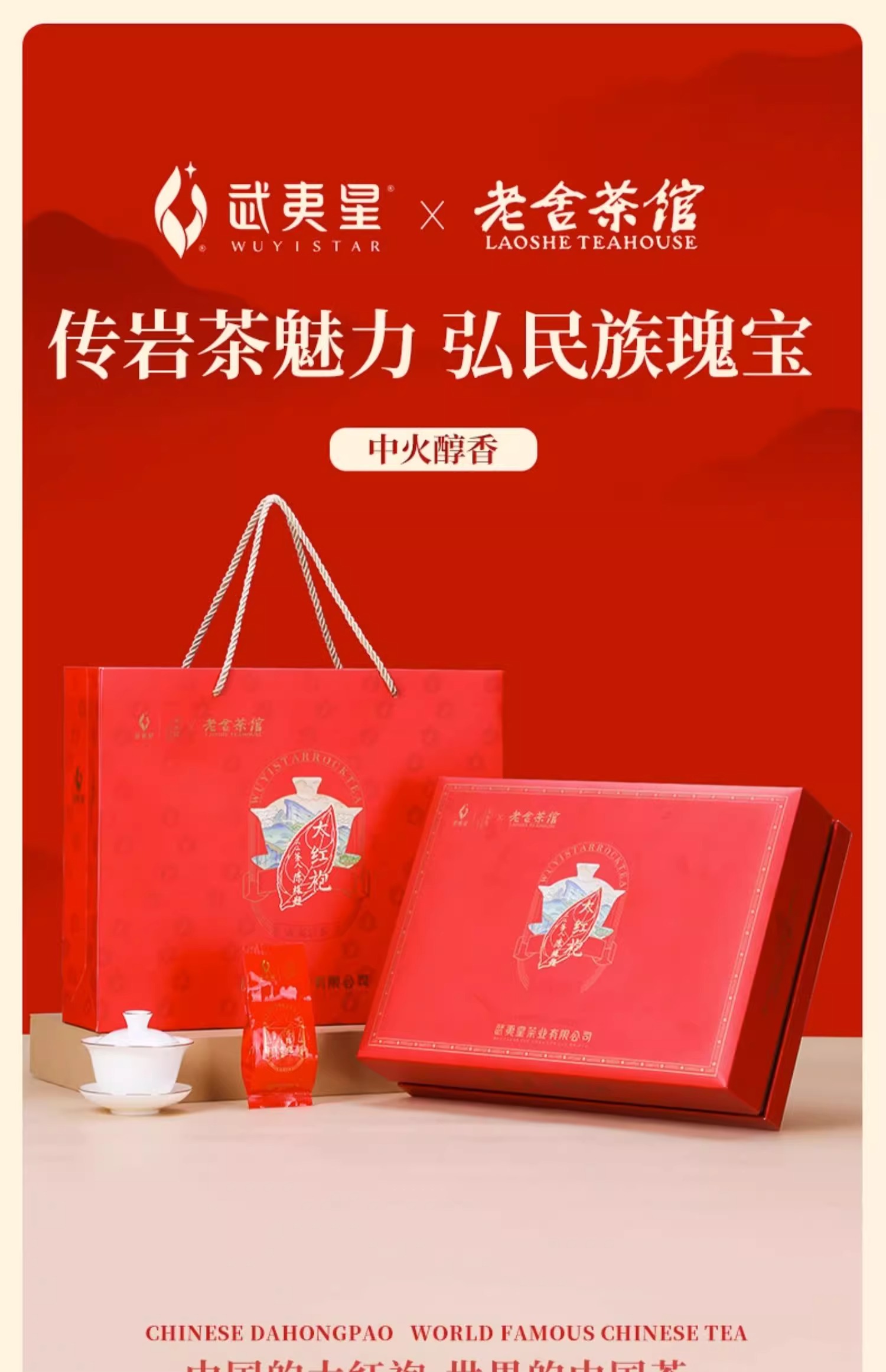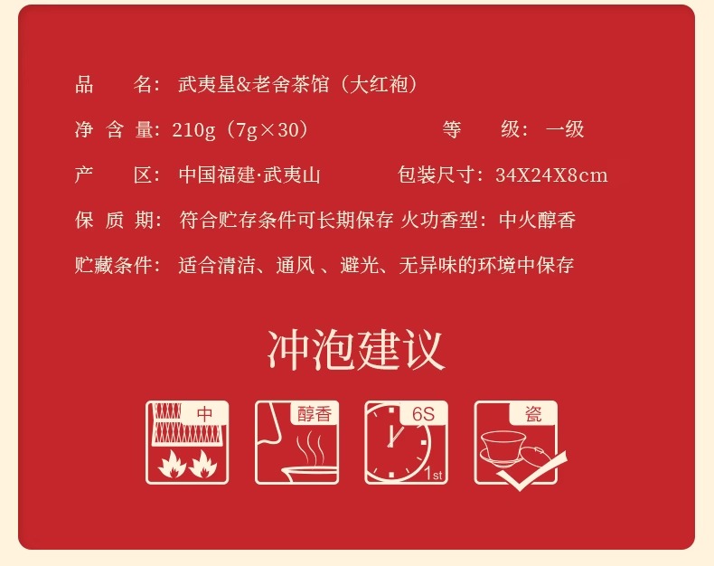 武夷星老舍茶馆联名大红袍礼盒装武夷山岩茶乌龙茶茶礼210g