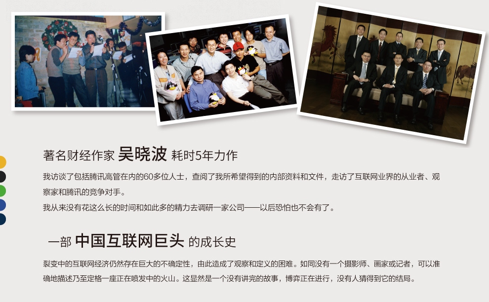 本书由腾讯授权,著名财经作家吴晓波亲身调研,访谈了包括马化腾、张志东、张小龙等腾讯高管在内的60多位人士,历时五年写成。