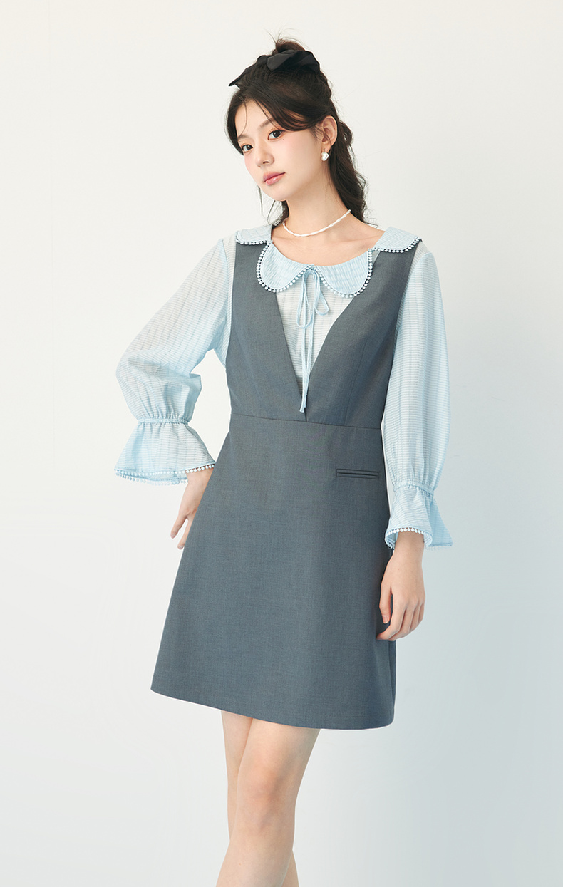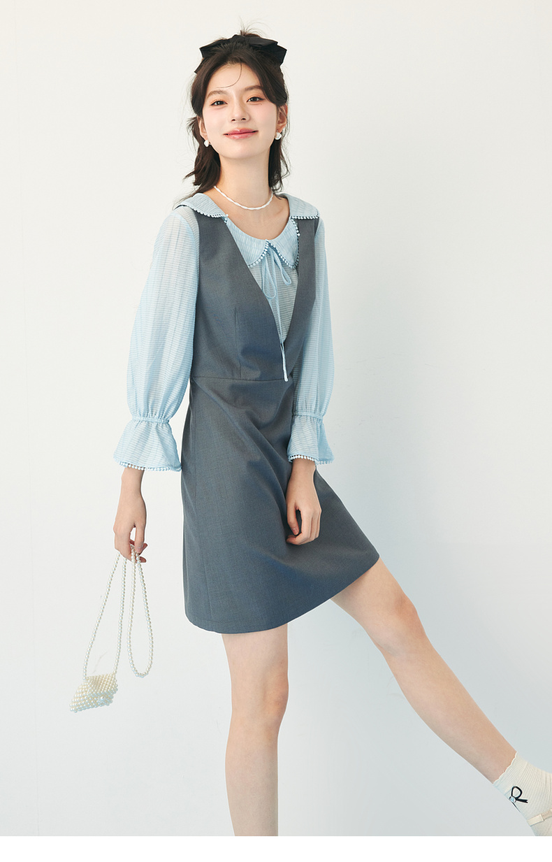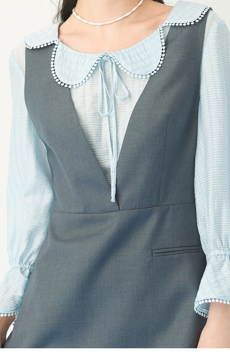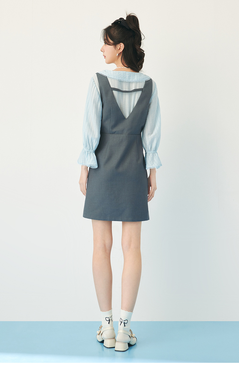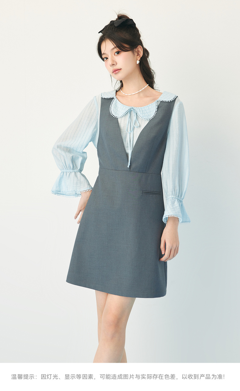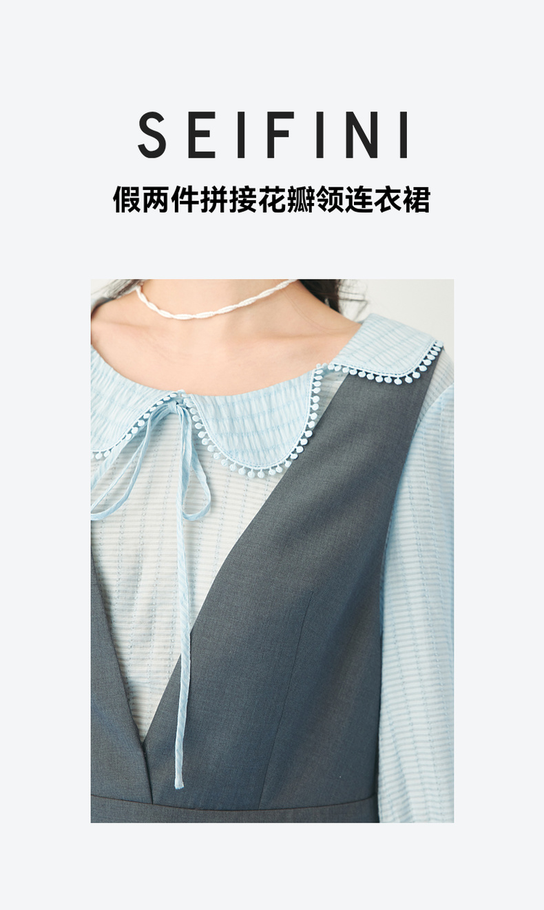 【严选】诗凡黎春假两件拼接设计花瓣领连衣裙SF3190201