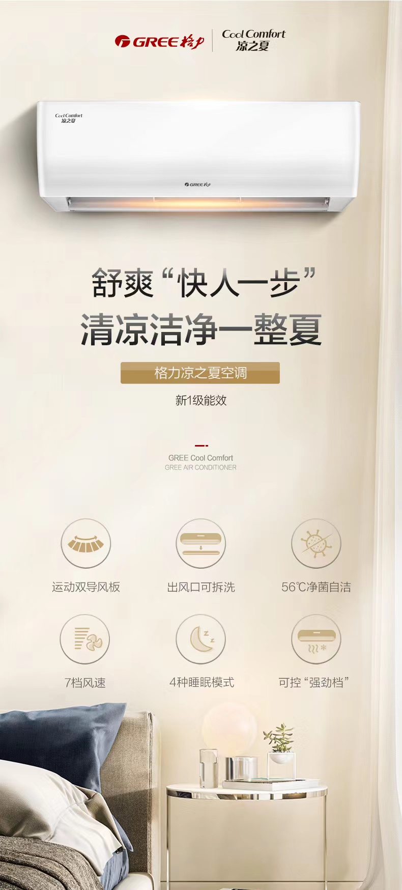 格力GREE 凉之夏 大一匹 1级变频冷暖 壁挂式空调挂机KFR-26GW/(26564)FNhAg-B1(含管)顶(皓雪白)(WIFI)