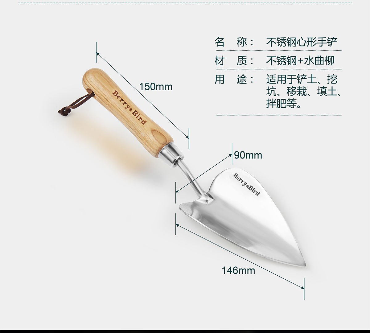 【云优选】Berry&Bird园艺森林园艺小铲子不锈钢家用盆栽种花工具户外挖松土