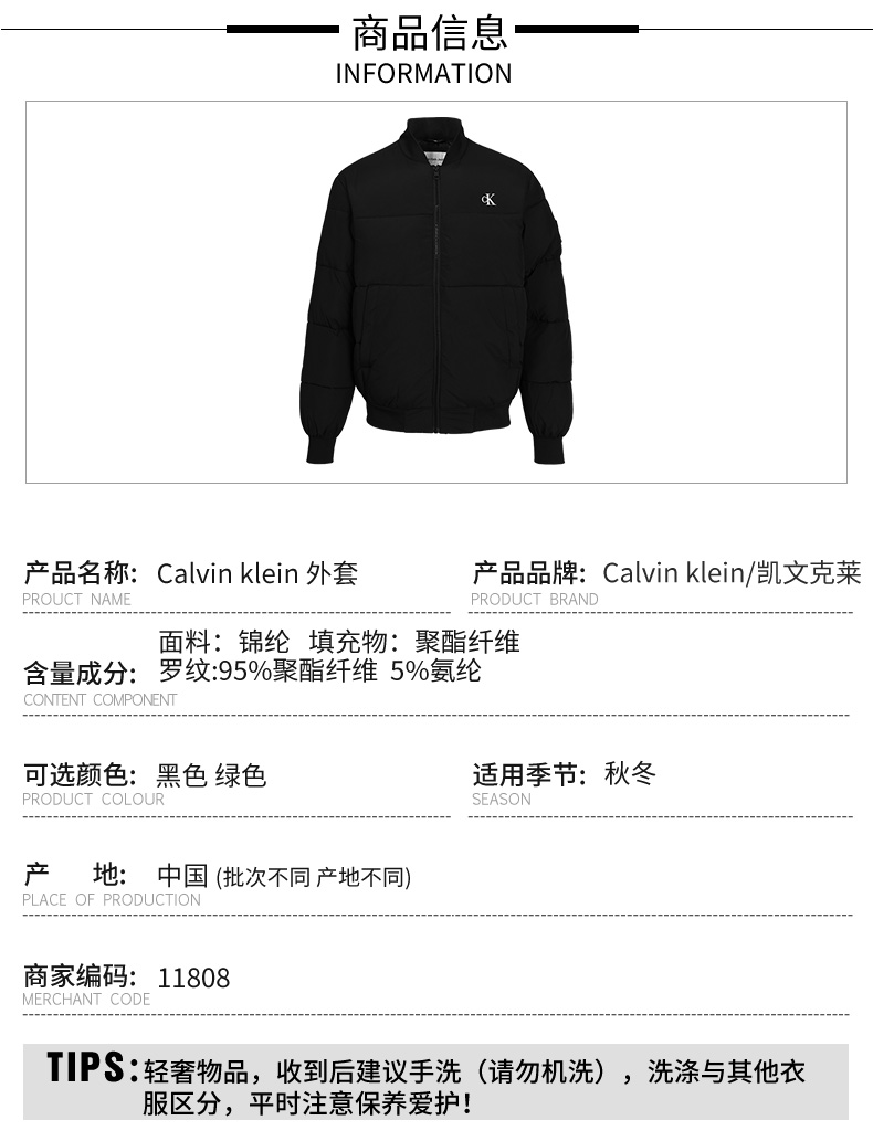 【超惠秒】Clavin Klein 卡尔文·克莱 男士防寒保暖丝棉外套11808