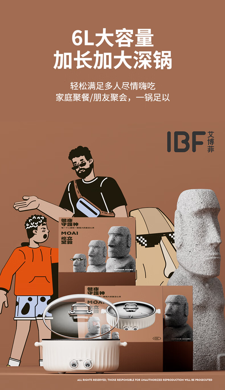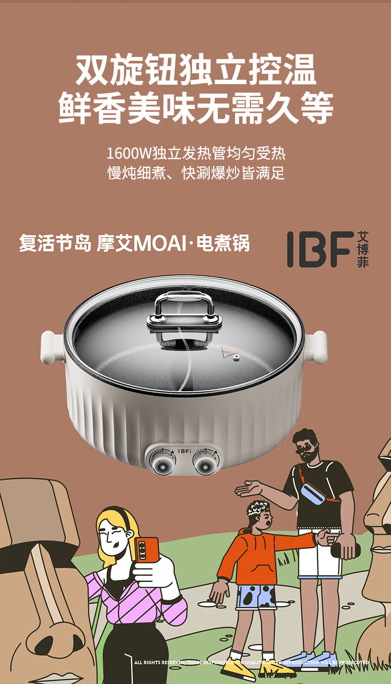 IBF艾博菲艾博菲·复活节岛摩艾·大容量电火锅【K】