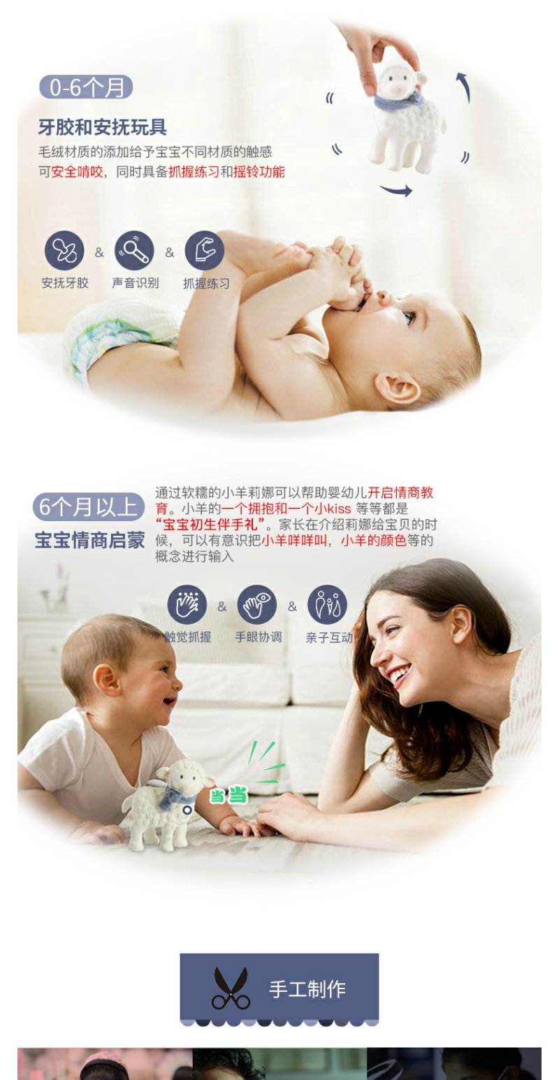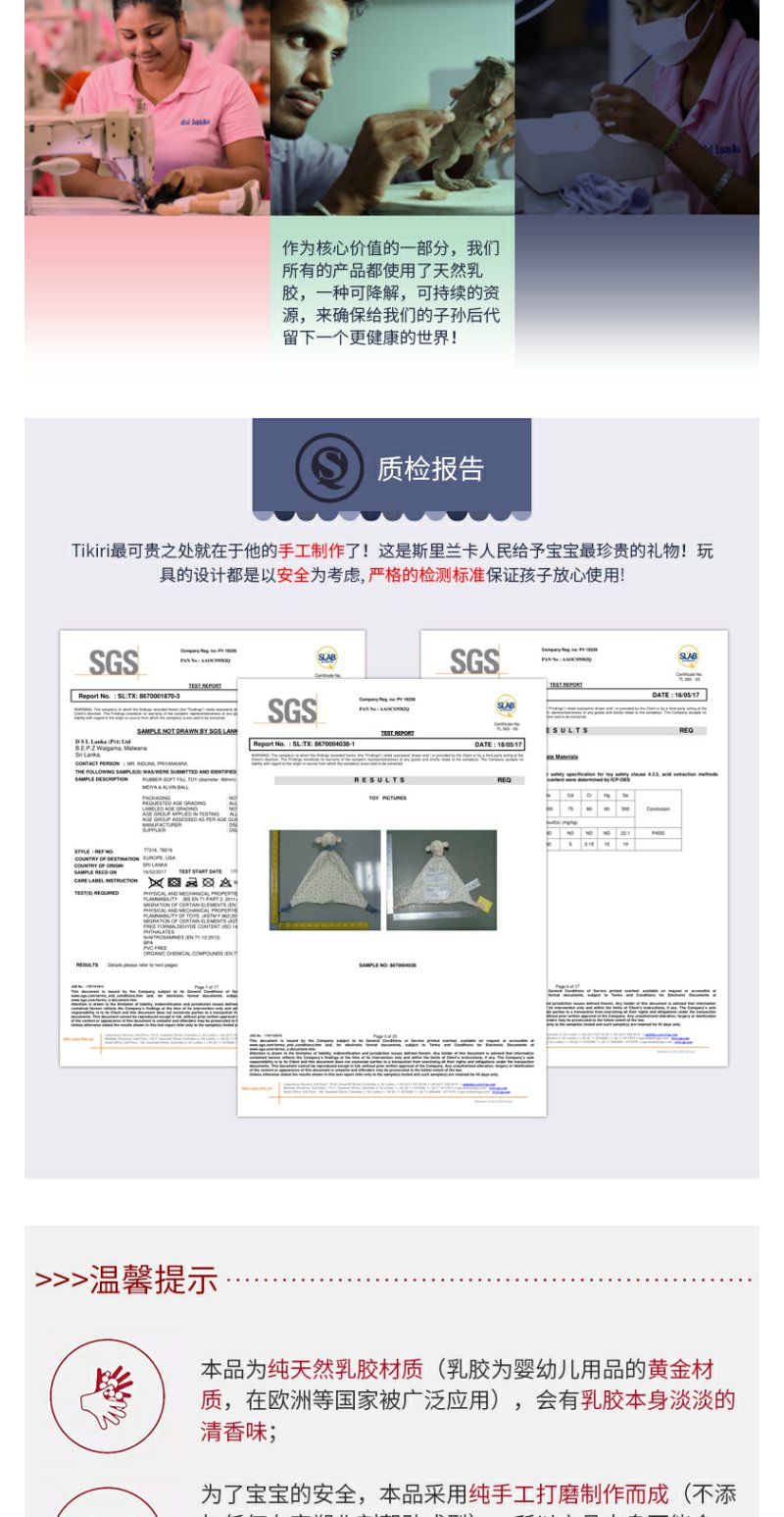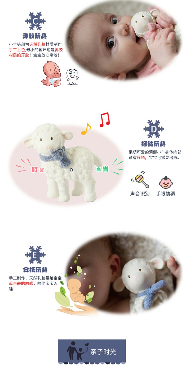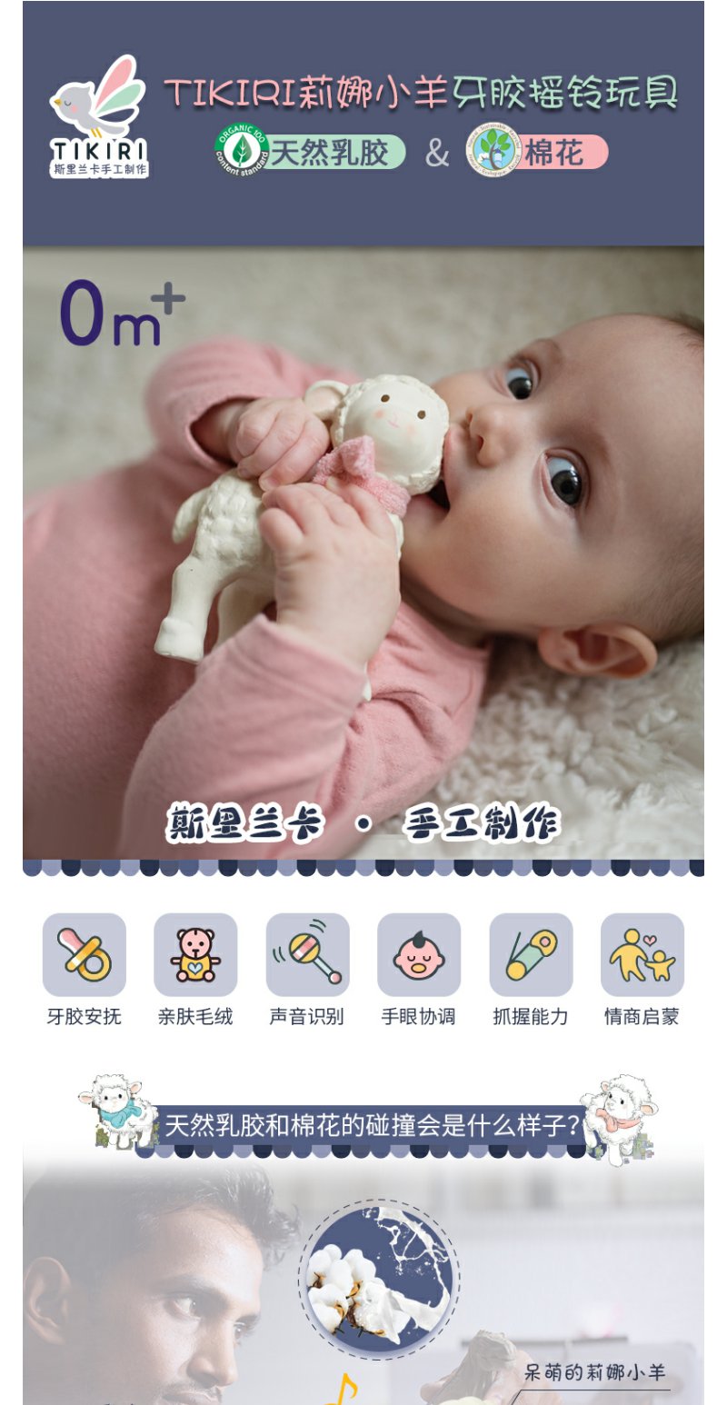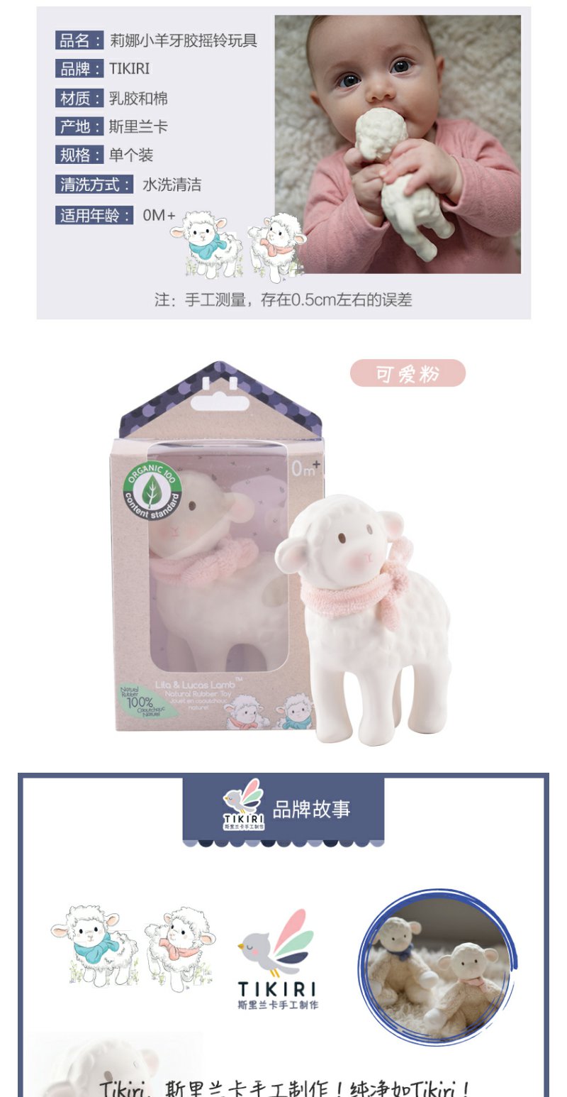 TIKIRI斯里兰卡婴儿莉娜小羊乳胶牙胶摇铃玩具