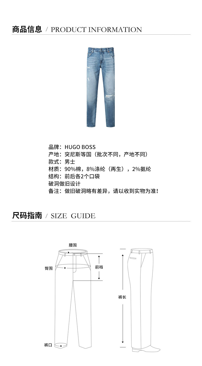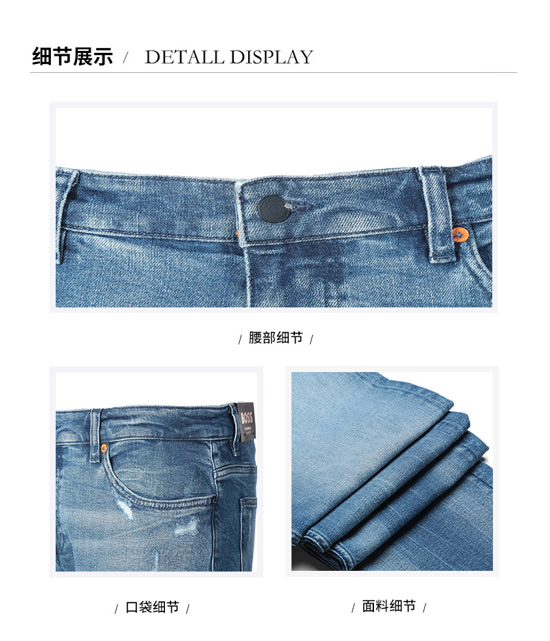 HUGO BOSS/雨果博斯【22春夏新款】男士棉质破洞牛仔裤长裤 50467813