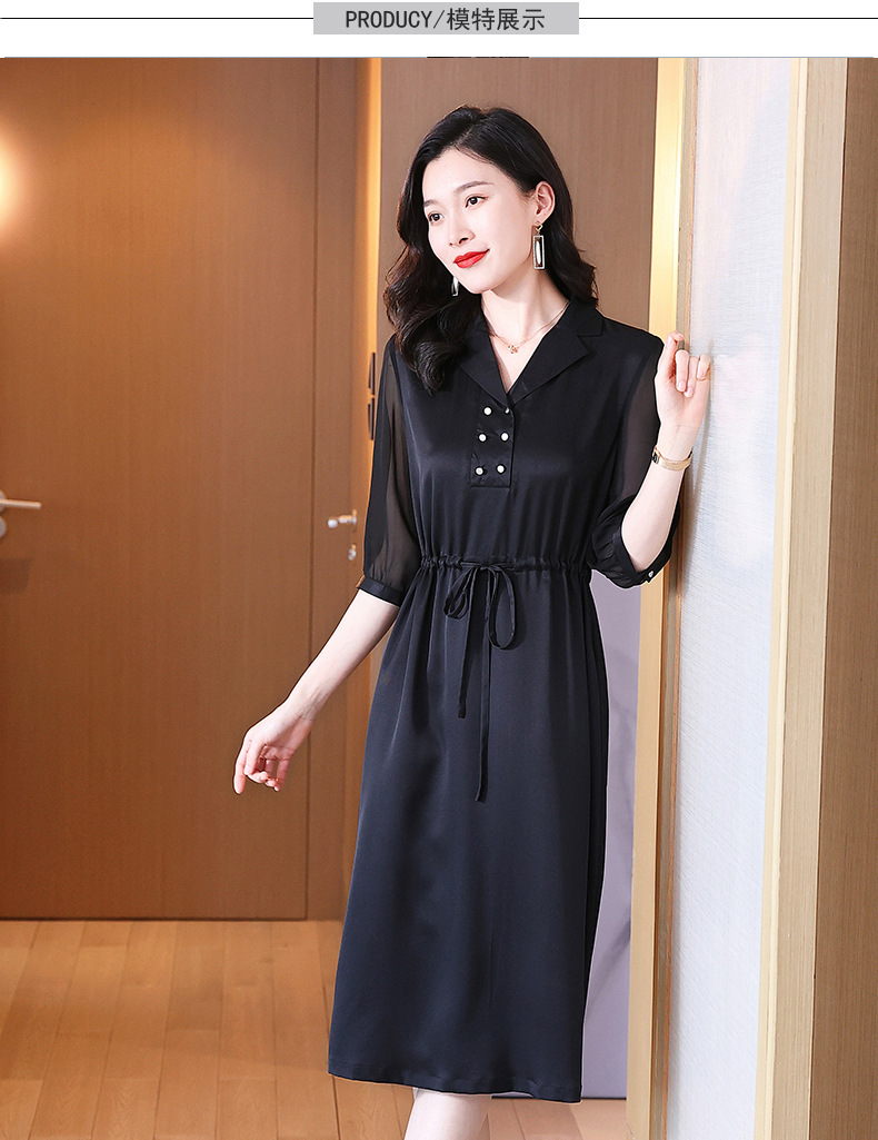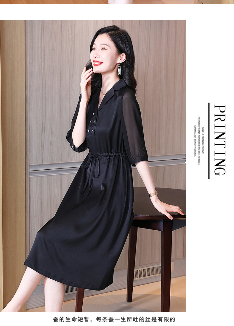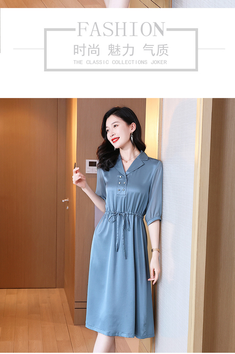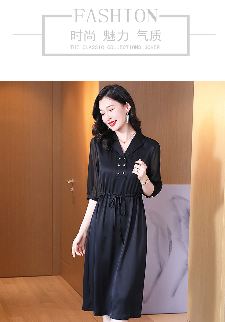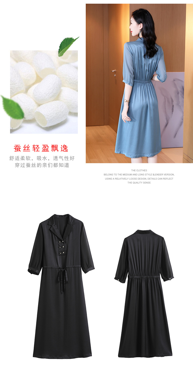 时尚品质,中袖西装领中长款显瘦气质桑蚕丝重磅真丝斜纹连衣裙KQN-242-15