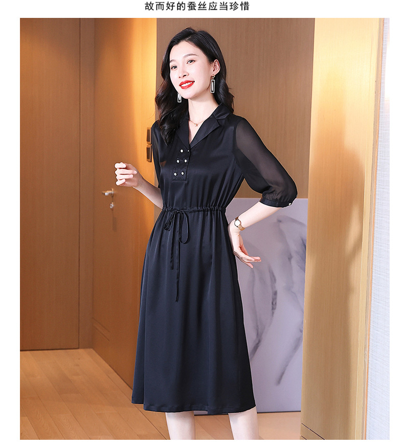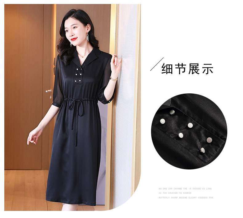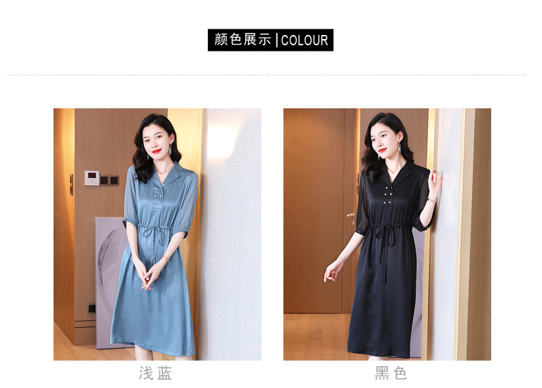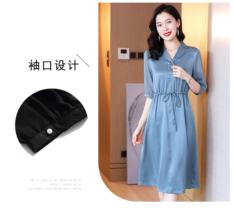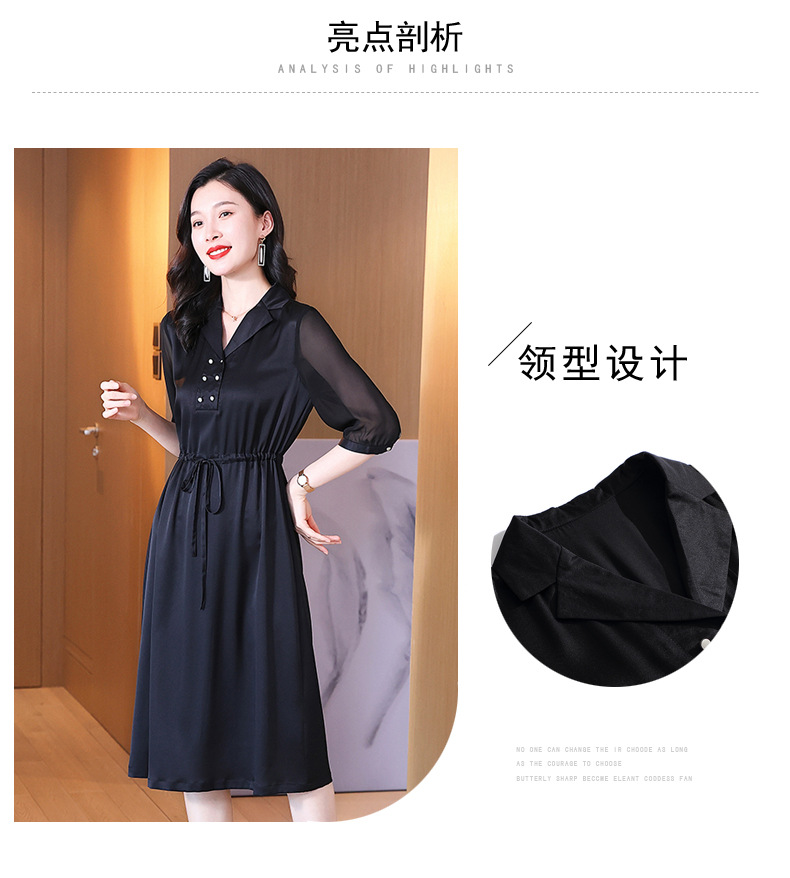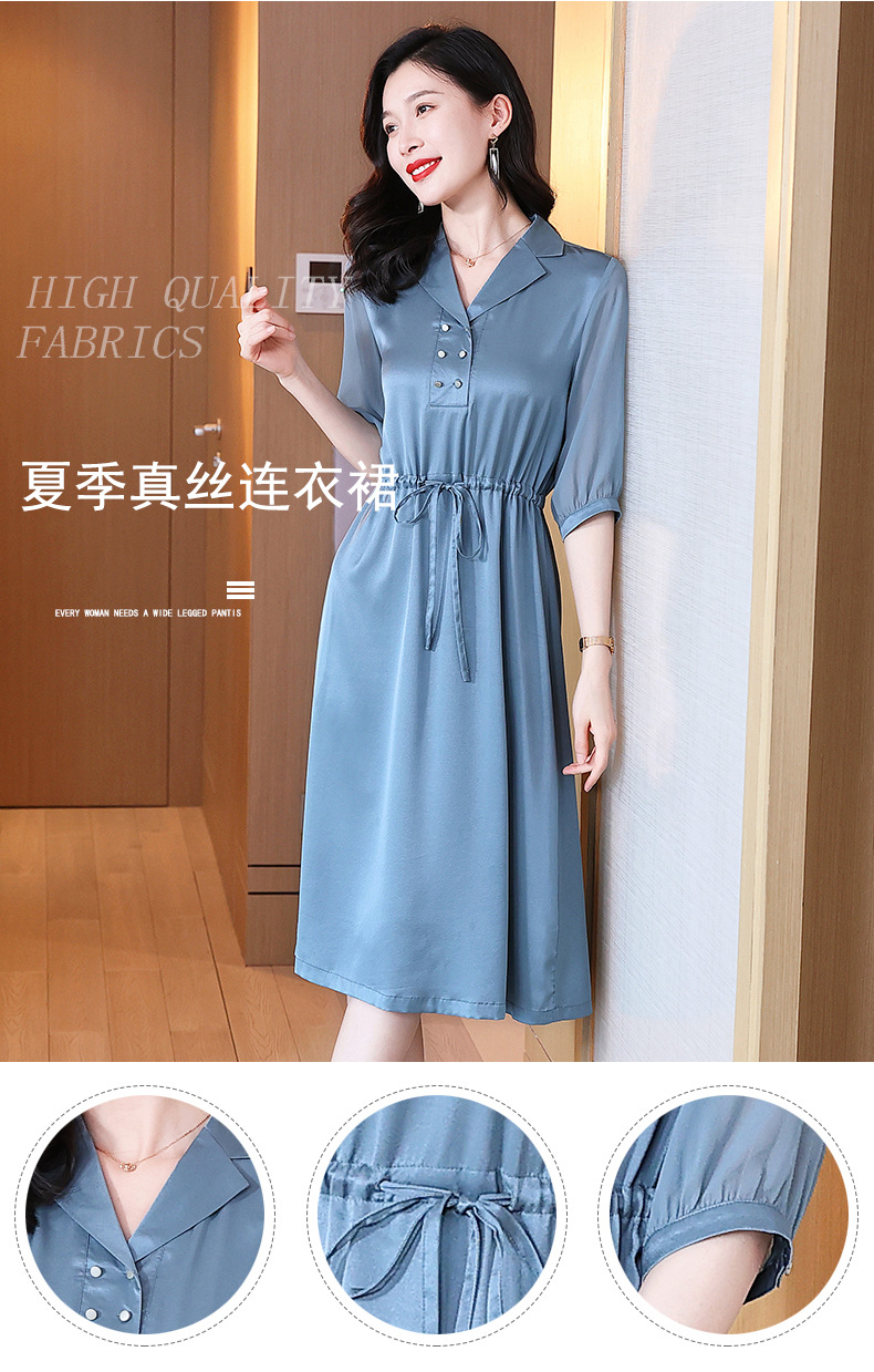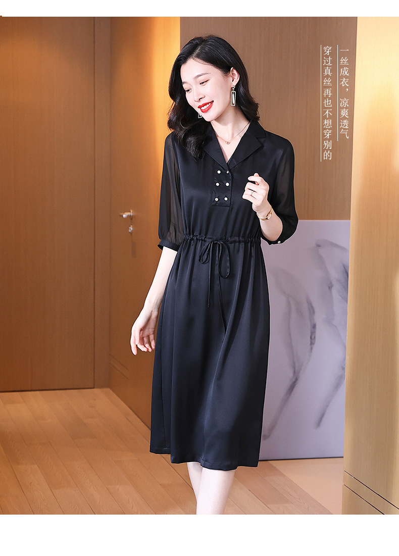 时尚品质,中袖西装领中长款显瘦气质桑蚕丝重磅真丝斜纹连衣裙KQN-242-15
