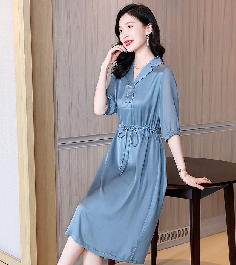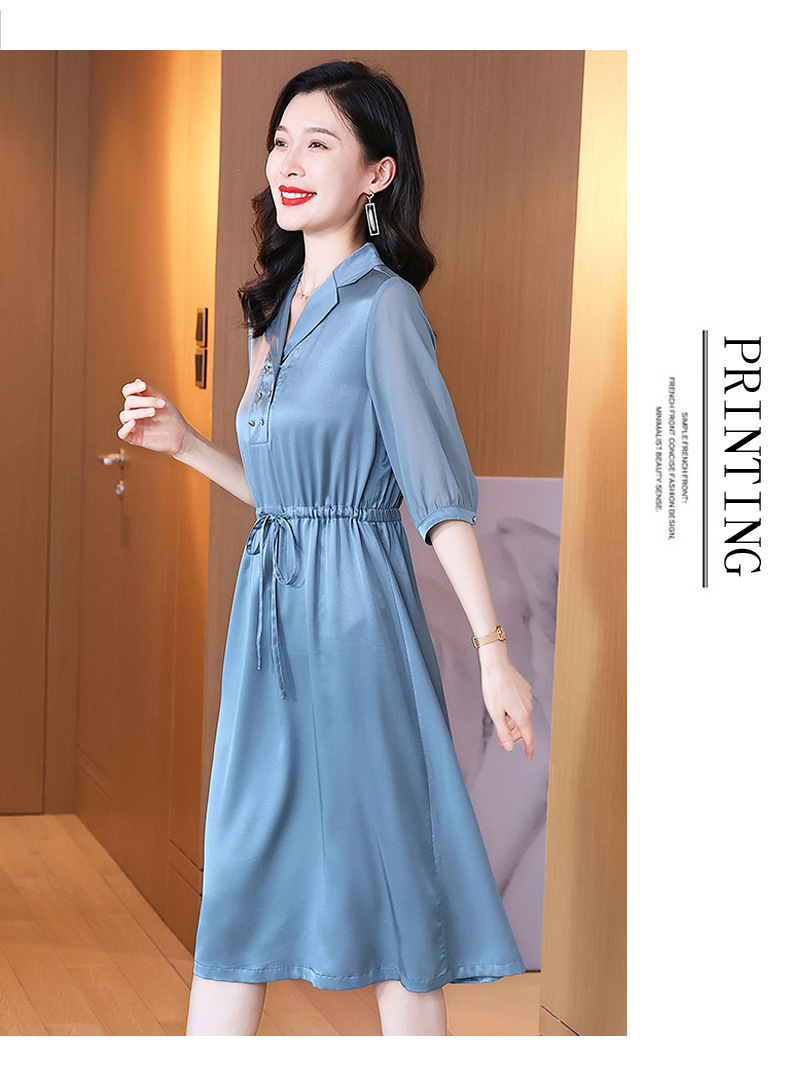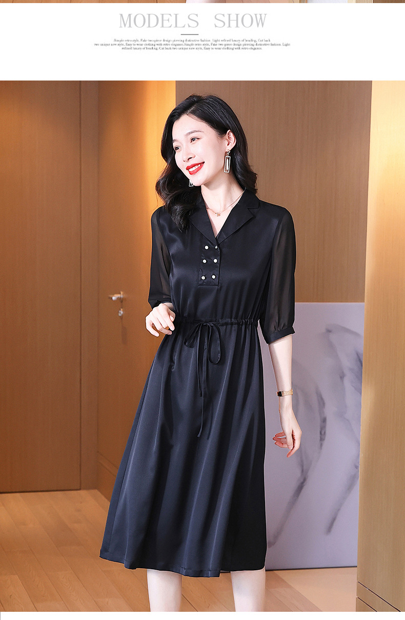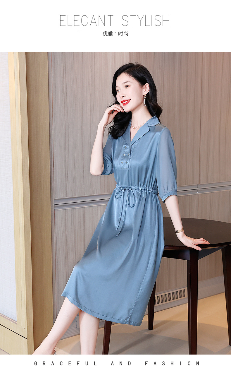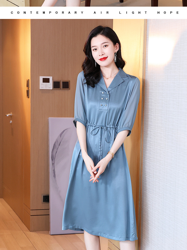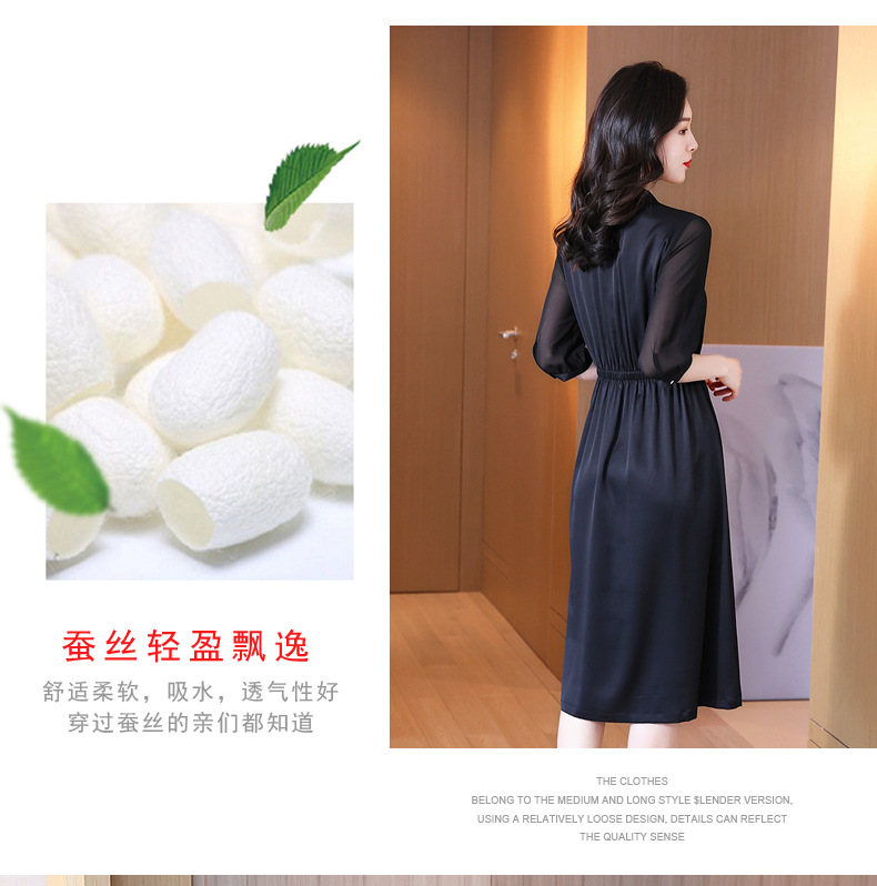 时尚品质,中袖西装领中长款显瘦气质桑蚕丝重磅真丝斜纹连衣裙KQN-242-15