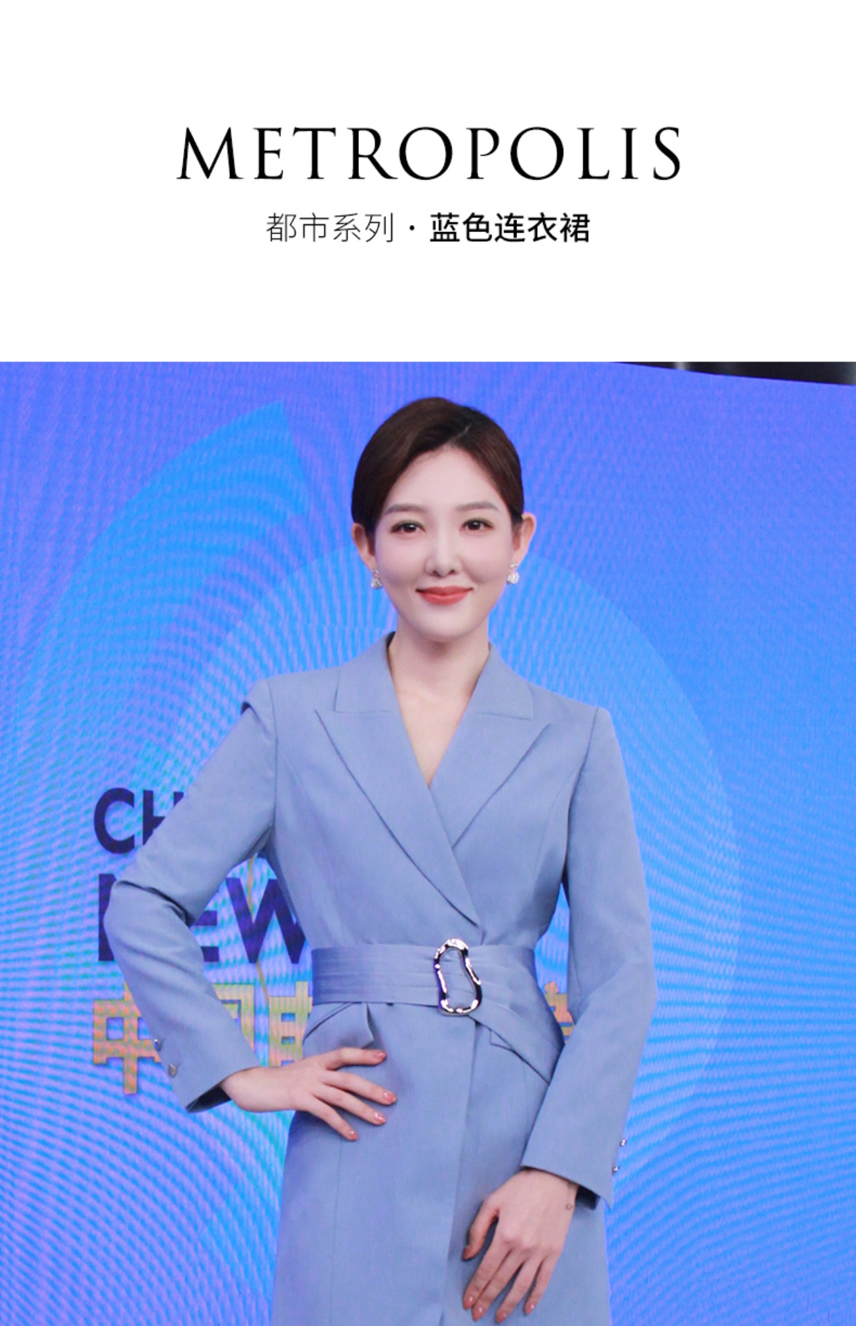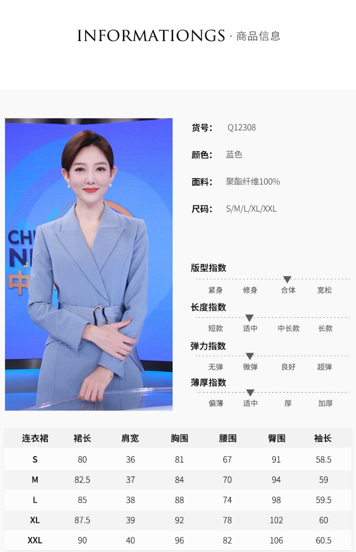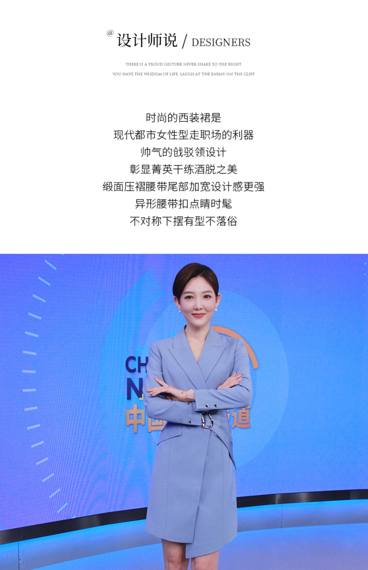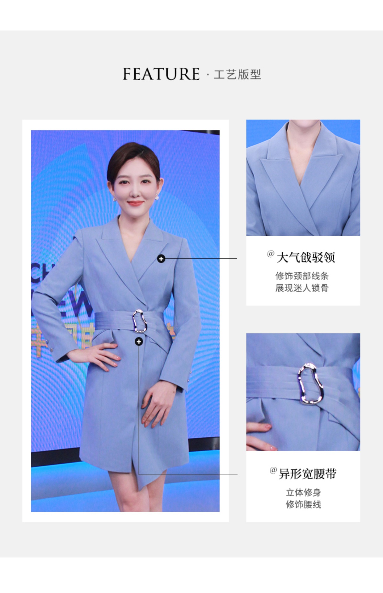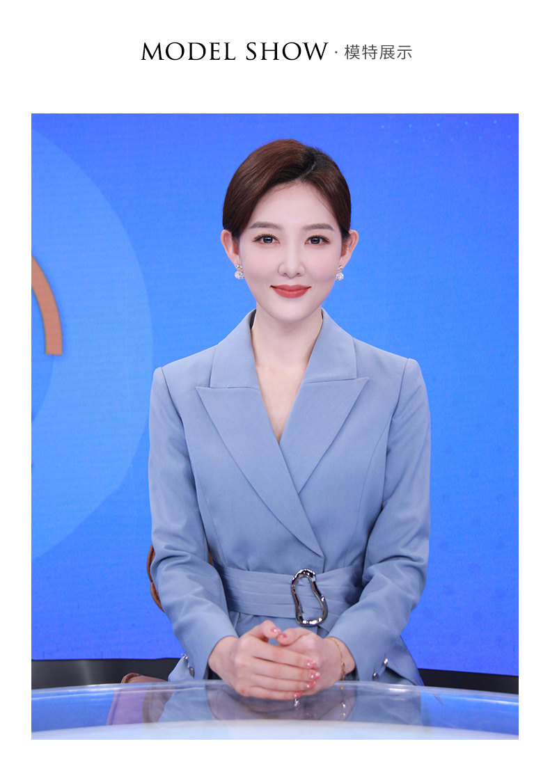 IWY/职业装灰蓝色西装连衣裙女显瘦声乐艺考播音主持人正装演讲礼服女Q12308-L