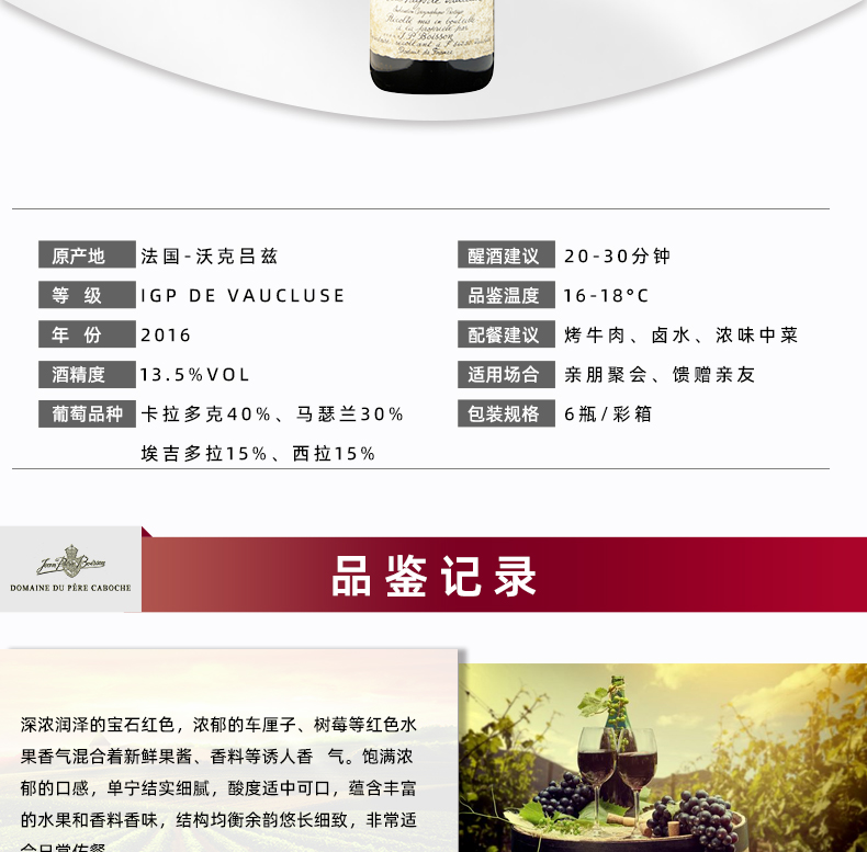 碧嘉宝仕庄园小嘉宝仕红葡萄酒 2016 750ml/瓶