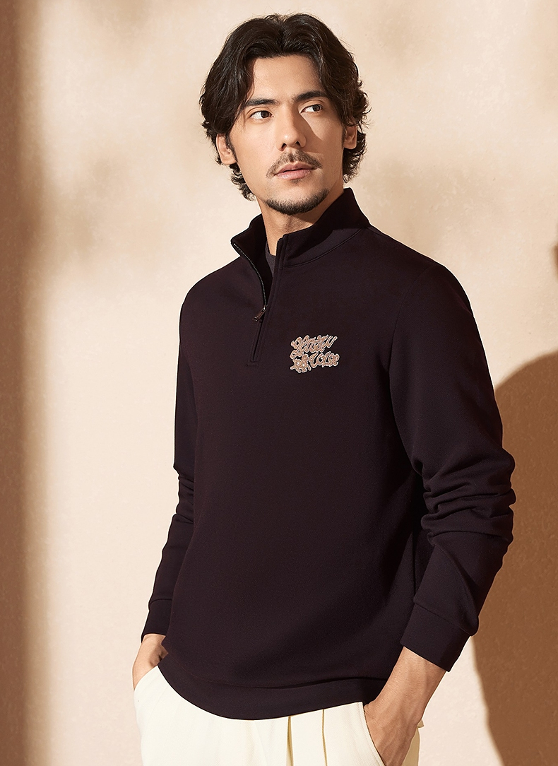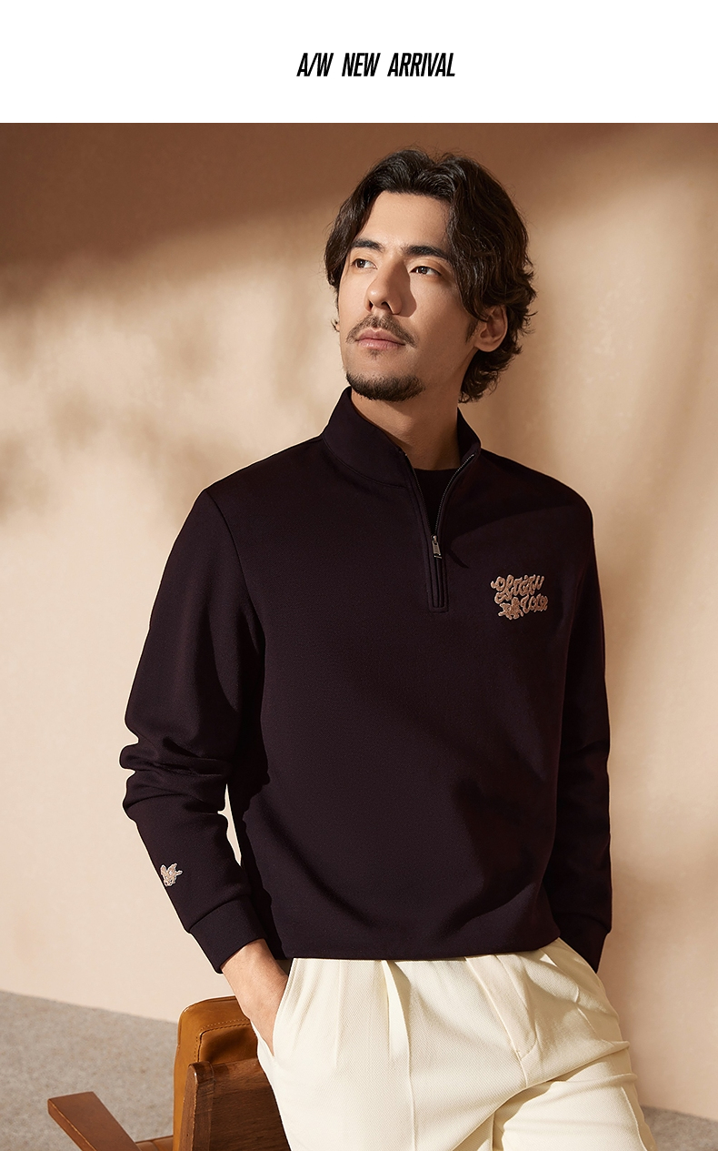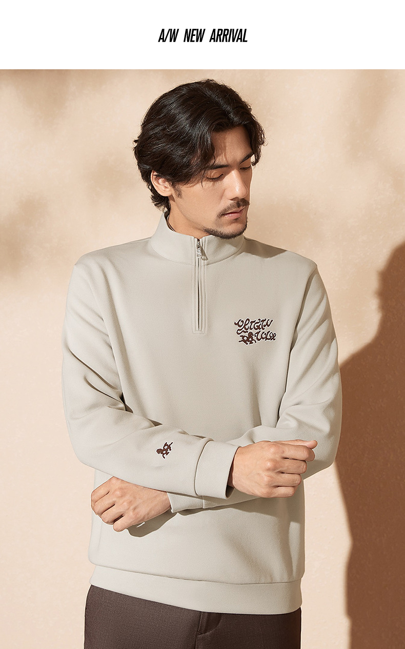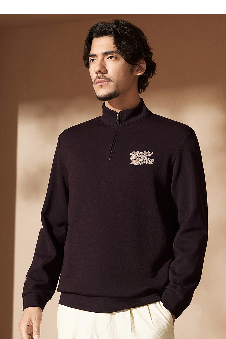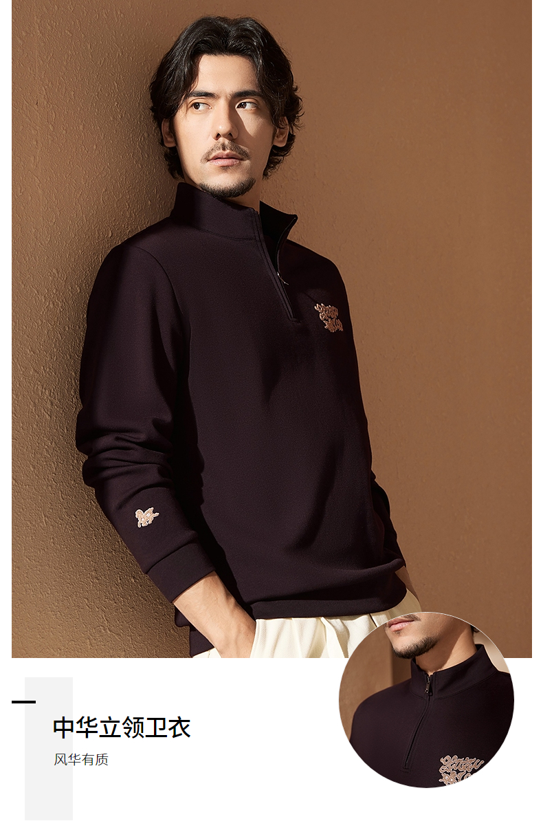 【中华立领】柒牌半拉链卫衣2024秋冬新款时尚字母毛巾绣休闲上衣 127W70920