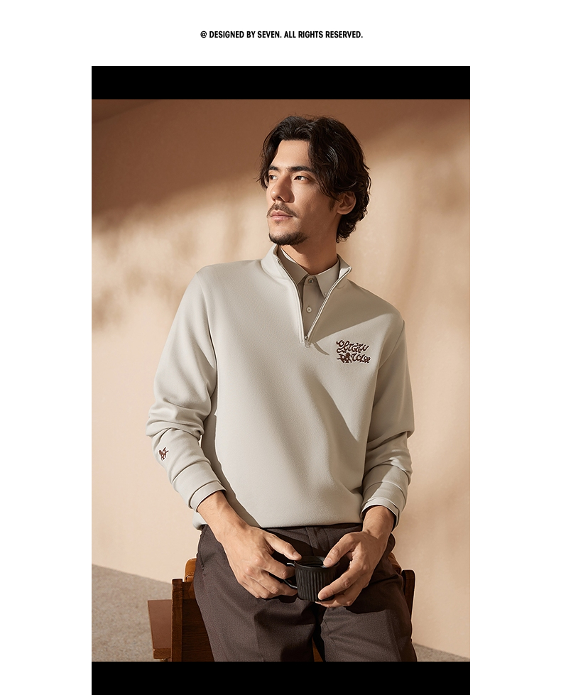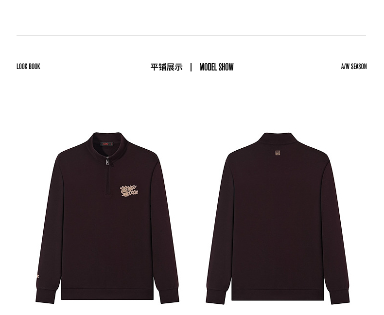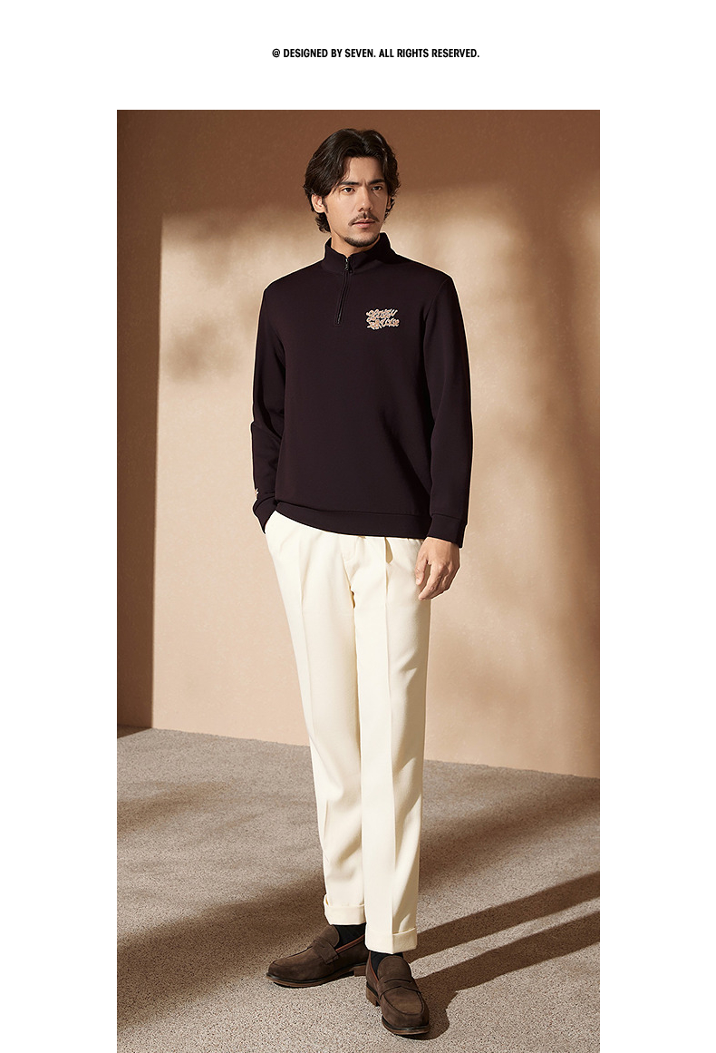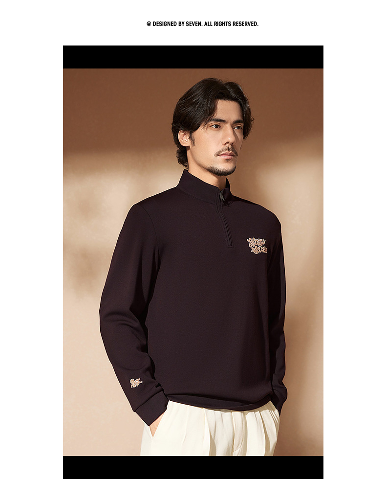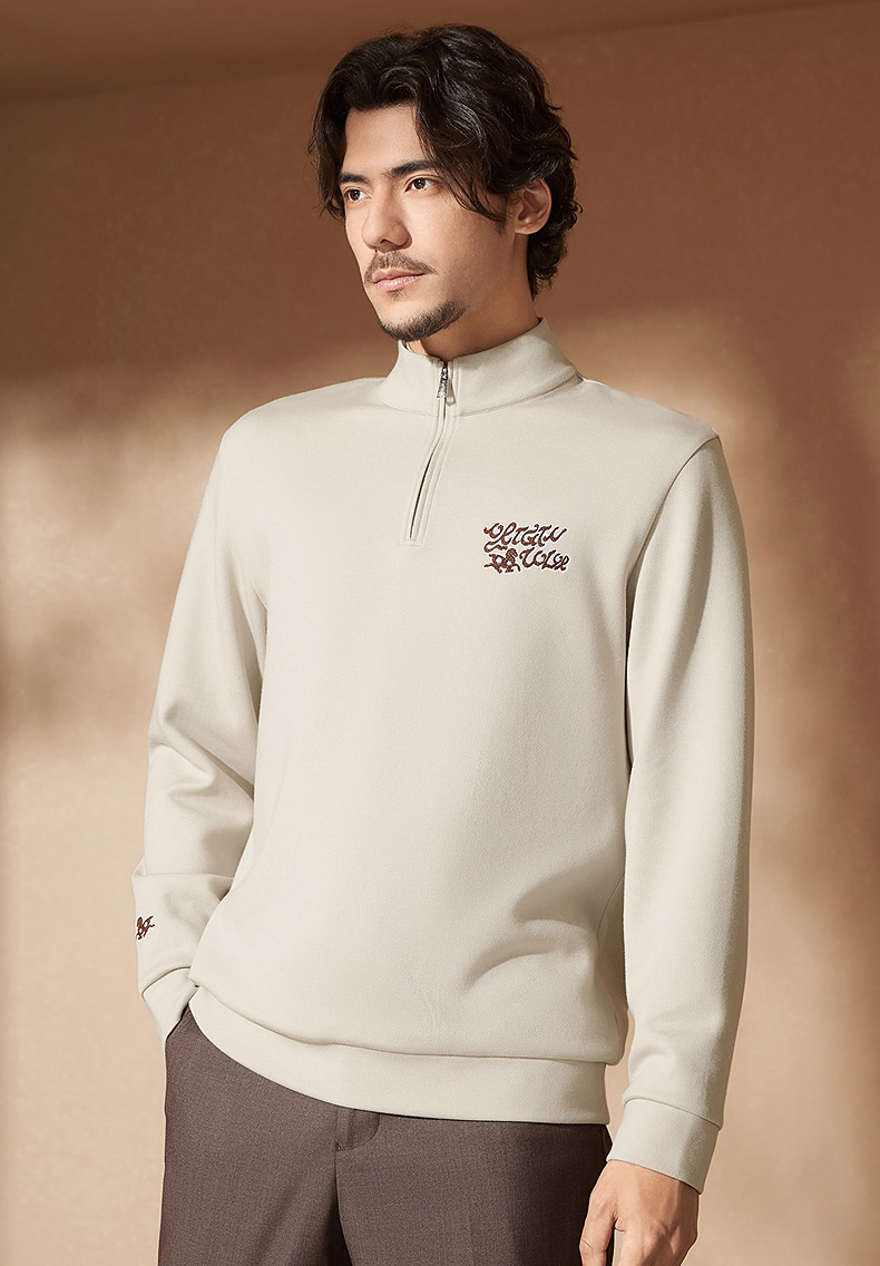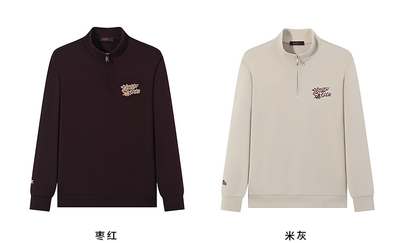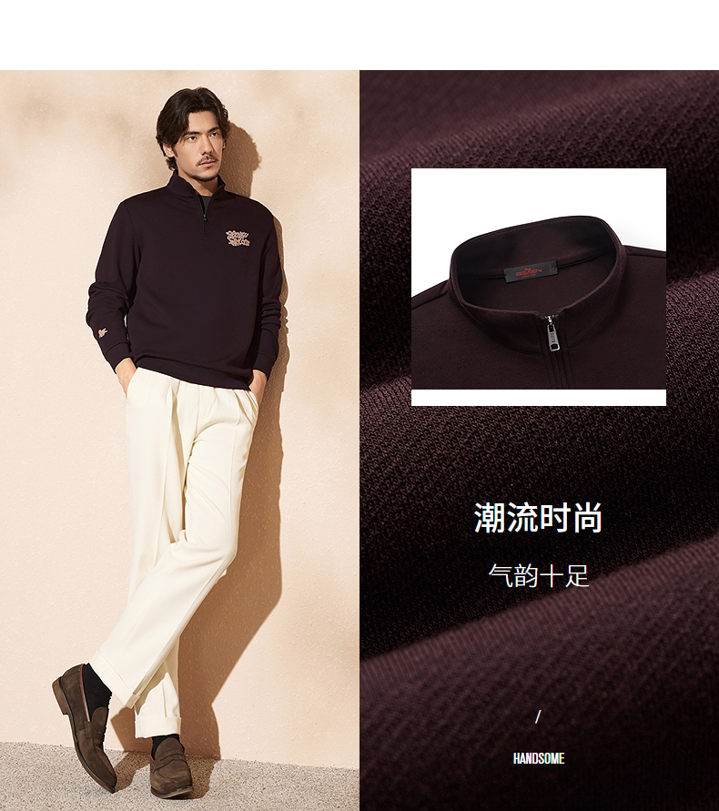 【中华立领】柒牌半拉链卫衣2024秋冬新款时尚字母毛巾绣休闲上衣 127W70920