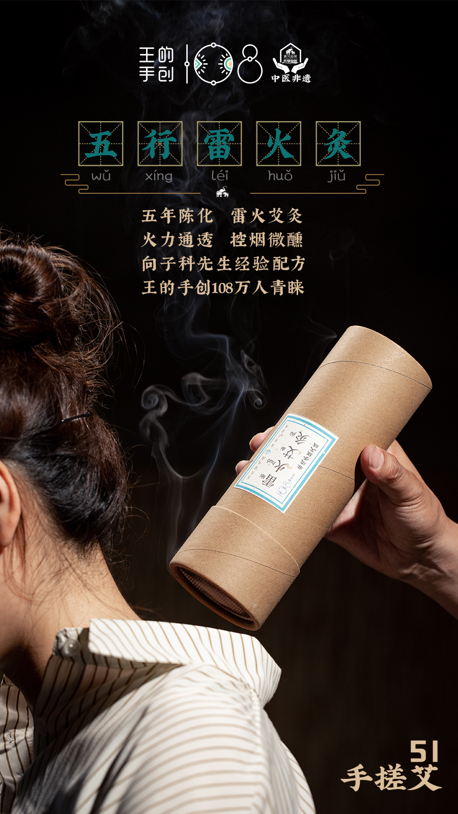 【象艾益家】51手搓艾条 古法艾灸 五行雷火灸(木肝/火心/土脾/金肺/水肾)五年陈艾绒+中药五行配方 王的首创108万人青睐
