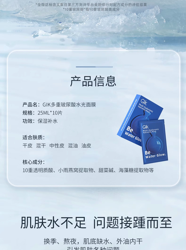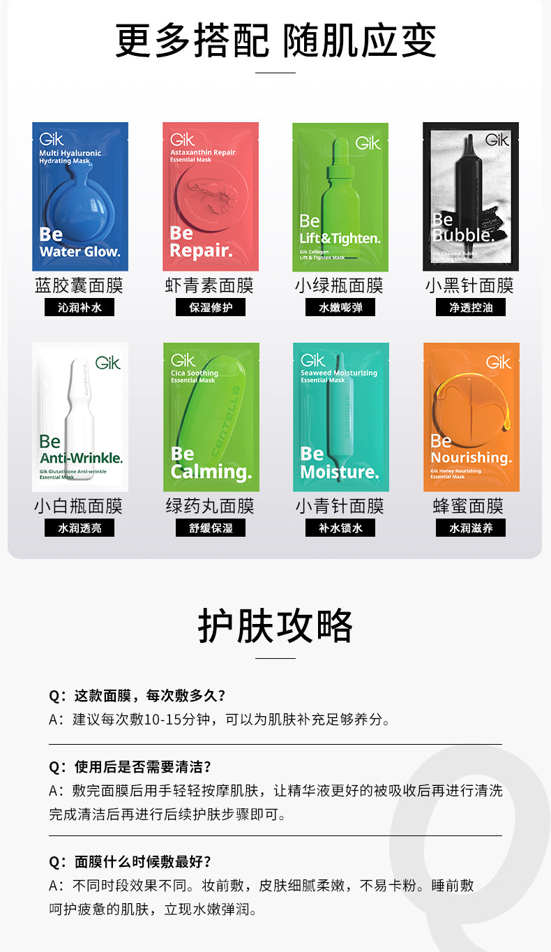 韩国GIK绿药丸面膜积雪草舒缓精华面膜gik多重玻尿酸水光面膜 积雪草换季修复补水保湿紧致 蓝胶囊玻尿酸精华补水保湿敏感肌水润Q弹