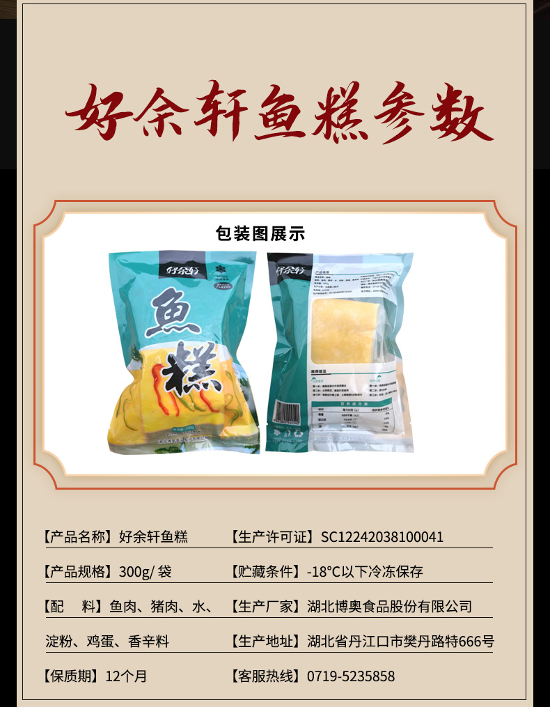 【鱼糕】 湖北荆州特产手工鱼饼火锅食材淡水肉糕300克/袋