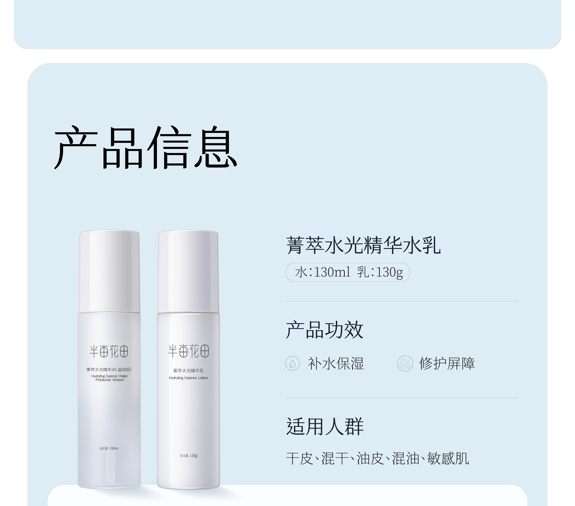 【敏感肌/保湿补水必入】【双旦|年终会员日】【入会享优惠】半亩花田敏感肌菁萃水光水乳套装化妆护肤品补水保湿控油修护面部男女学生
