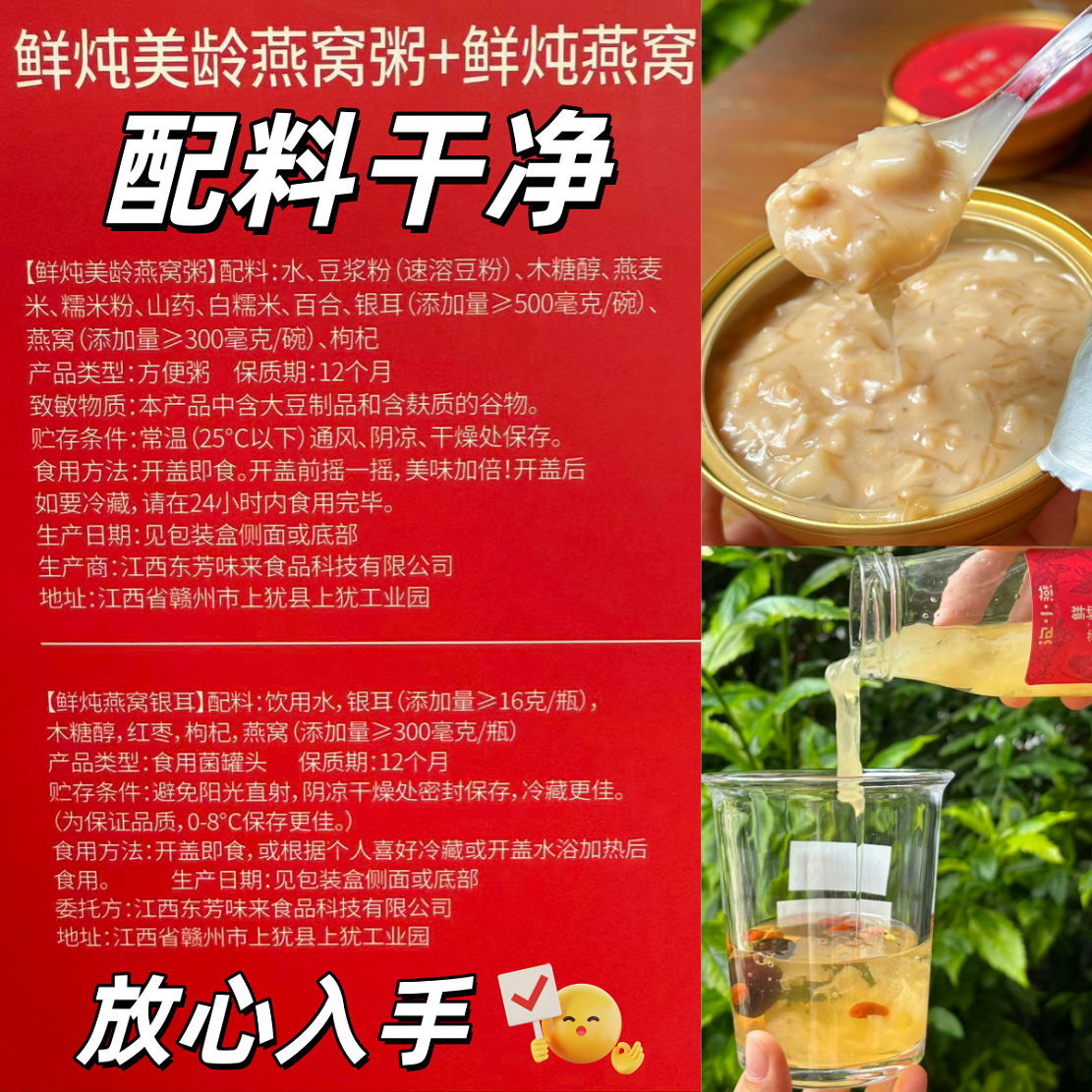 【规格】鲜炖美龄燕窝粥2碗+鲜炖燕窝银耳4瓶