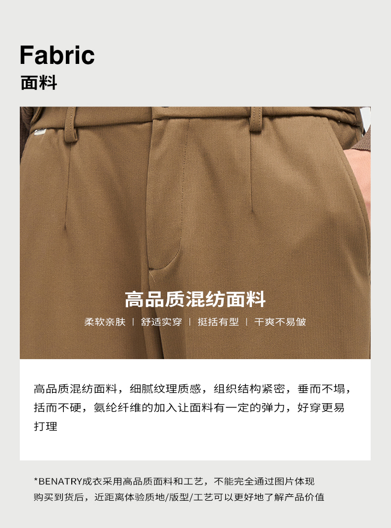 - 贝纳川男装致力于为不盲目追随潮流,坚持自己风格,注重细节与配饰搭配的而立之年轻熟男打造时髦、简约、轻松、真实的着衣风格。
