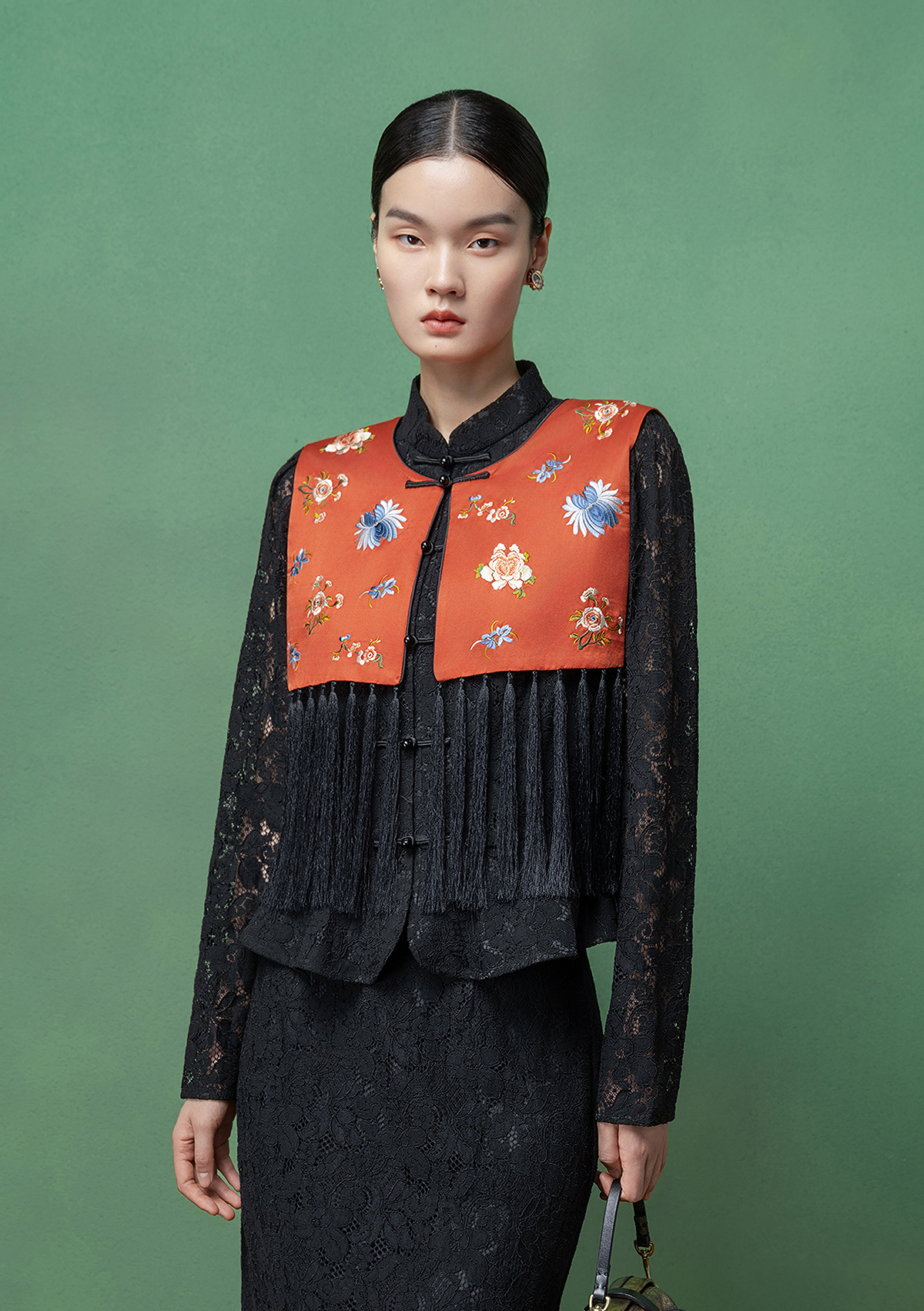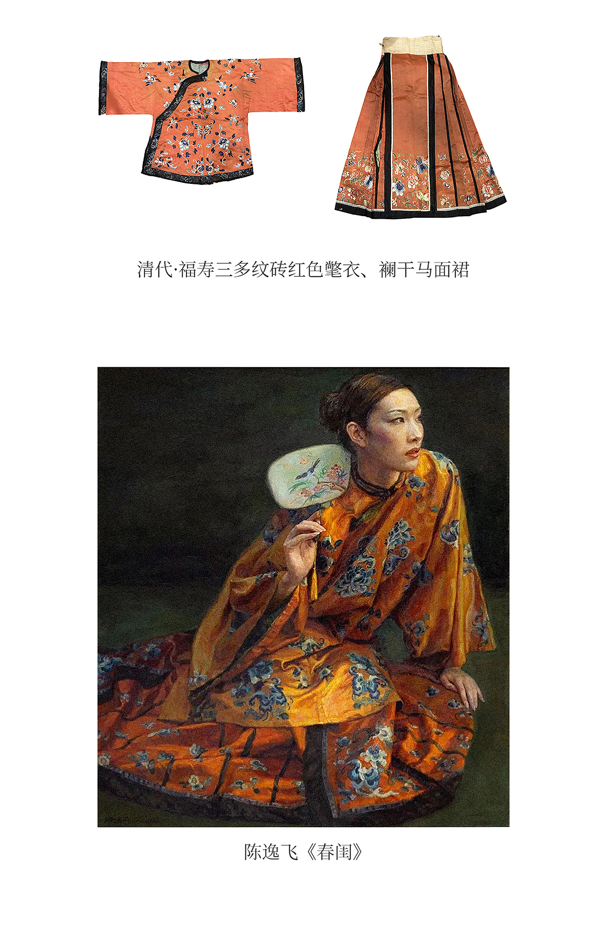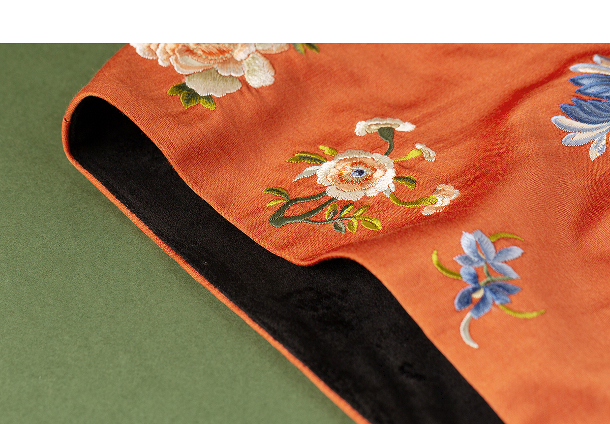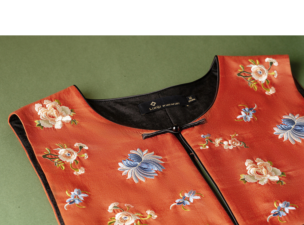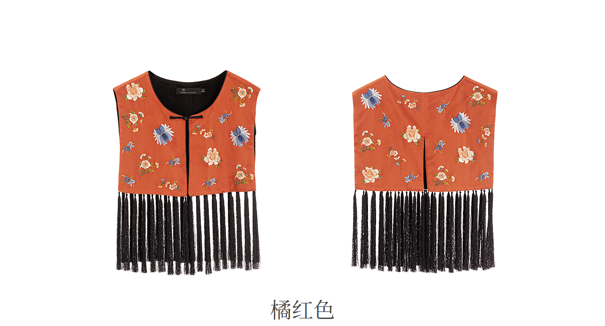 【林栖设计小店】拍行古董陌上花开|丝棉缎绣花橘红色云肩2026春新款马面裙马甲1961223